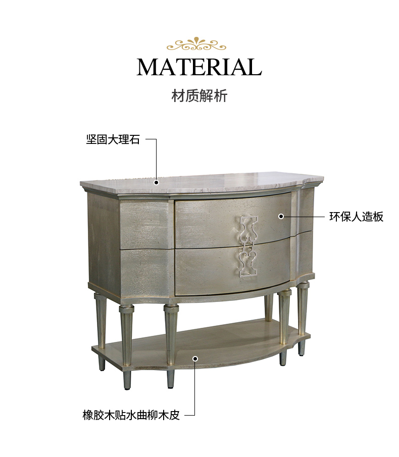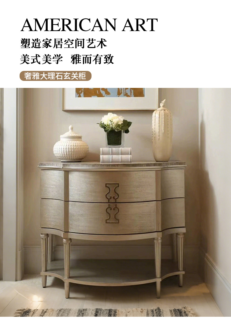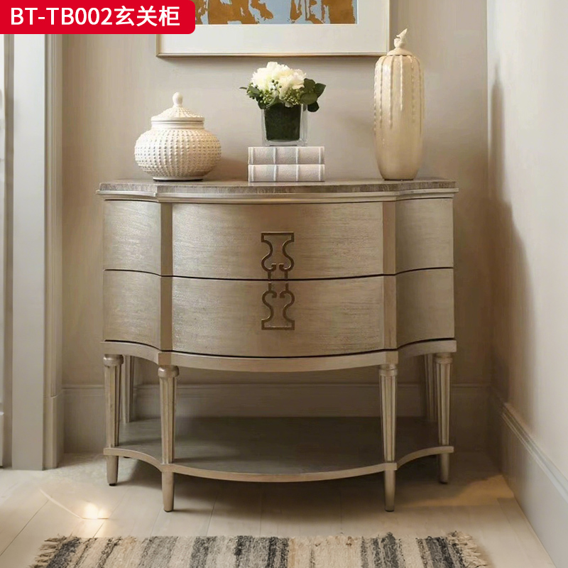 【精品】千匠一品 美式风格 橡胶木贴水曲柳木皮+环保人造板+大理石 时尚大气玄关柜BT-TB002-J