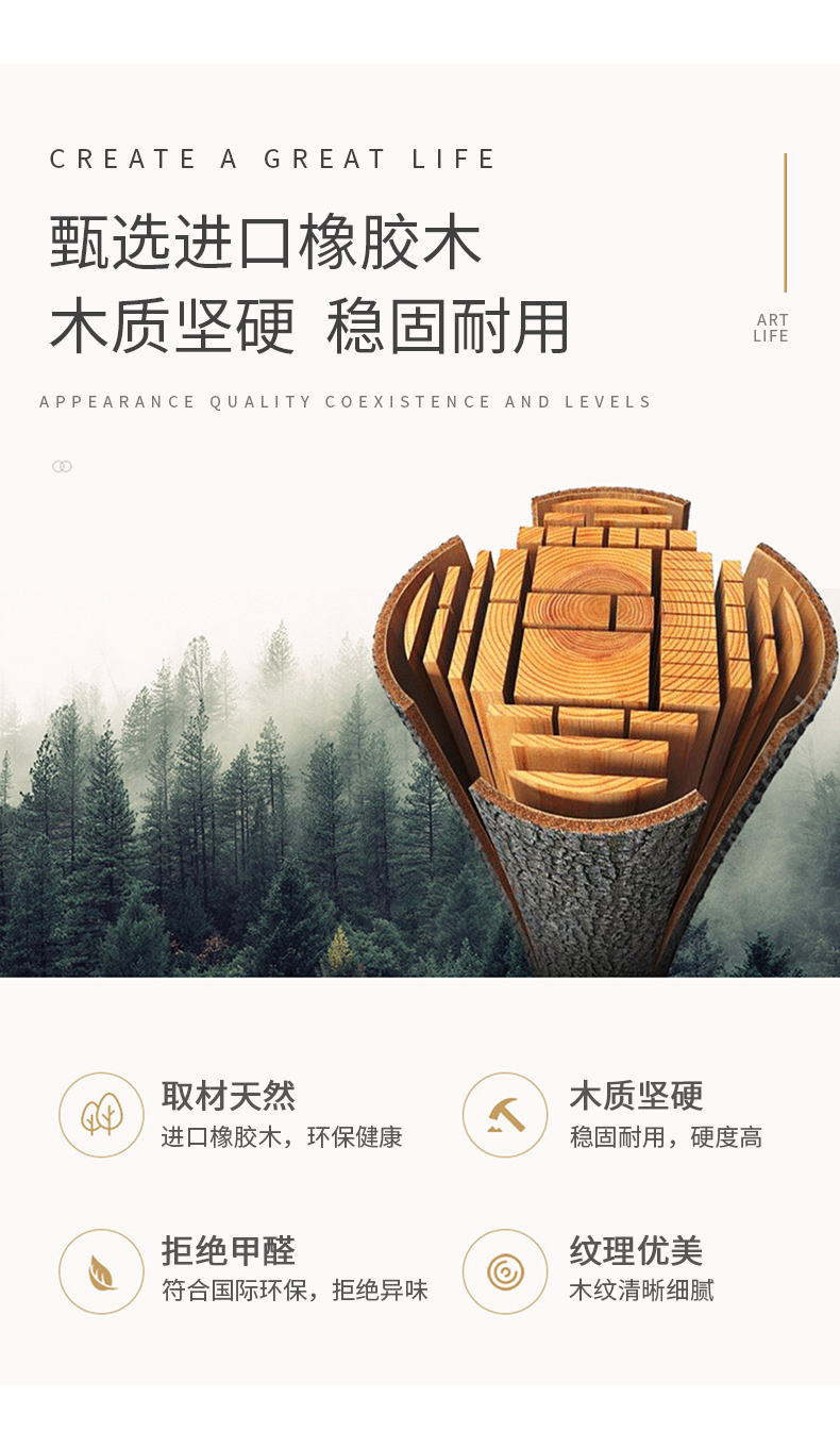 【精品】千匠一品 美式轻奢风格 主材桃花芯木+辅材进口橡胶木 时尚大气骑士床头柜M-NT603 床头柜 M-NT609-J