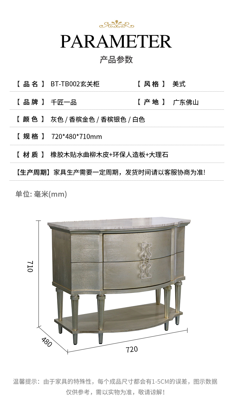 商品名称:【精品】千匠一品 美式风格 橡胶木贴水曲柳木皮+环保人造板+大理石 时尚大气玄关柜BT-TB002-J