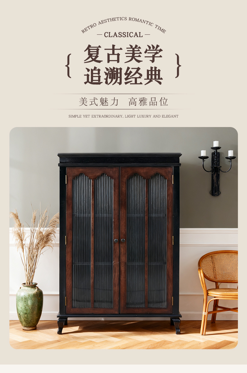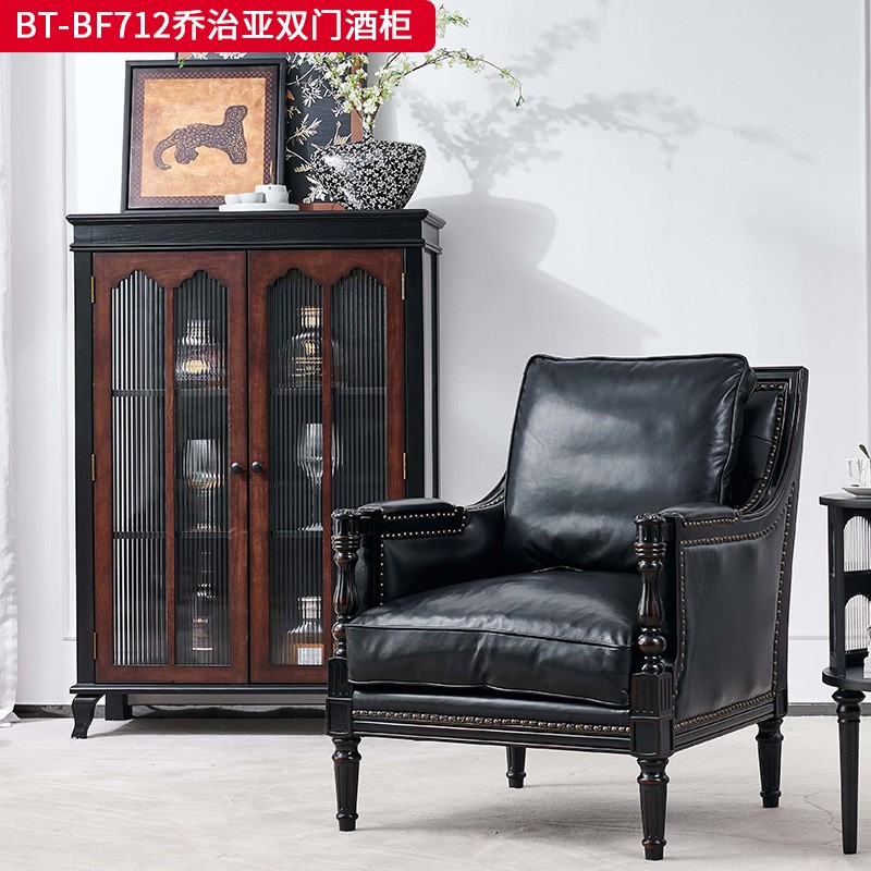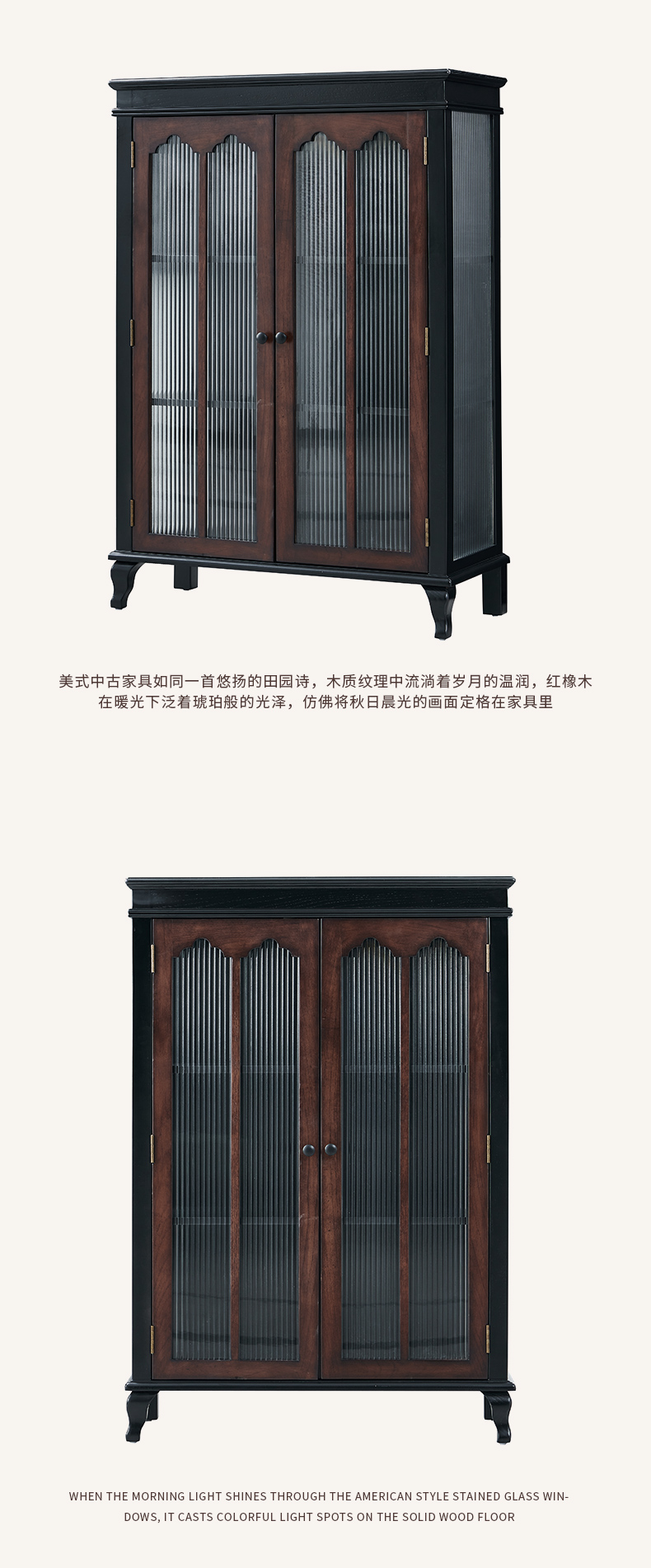 【精品】千匠一品 美式中古风格 主材红橡木+辅材实木板拼花+长虹玻璃 时尚大气乔治亚双门酒柜BT-BF712-L
