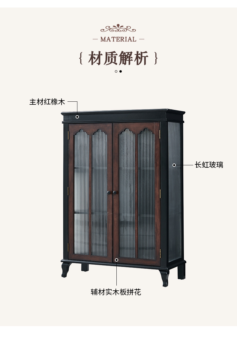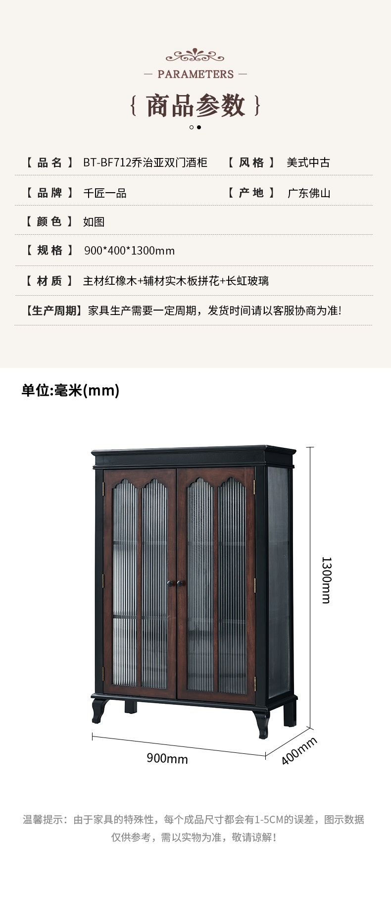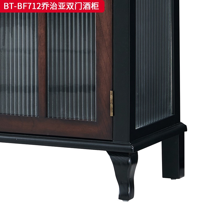商品名称:【精品】千匠一品 美式中古风格 主材红橡木+辅材实木板拼花+长虹玻璃 时尚大气乔治亚双门酒柜BT-BF712-L