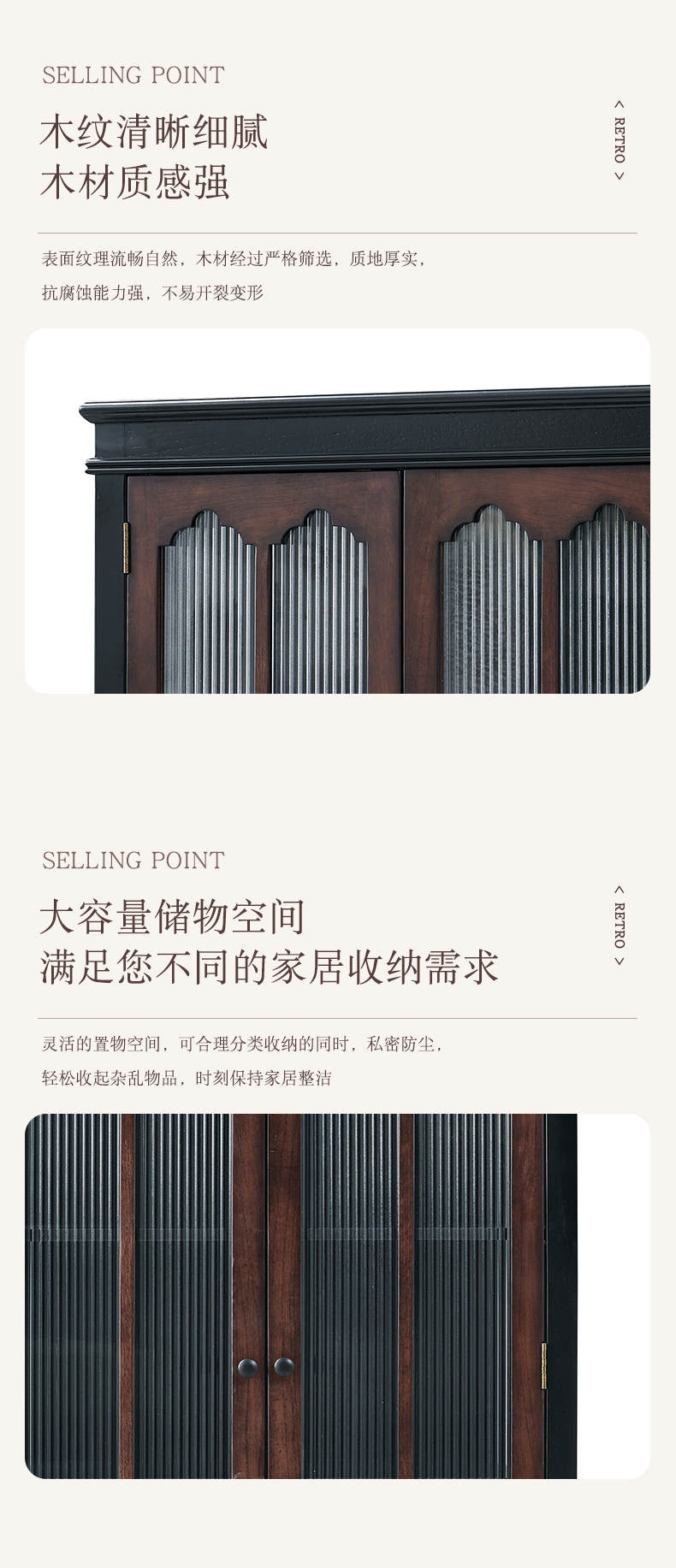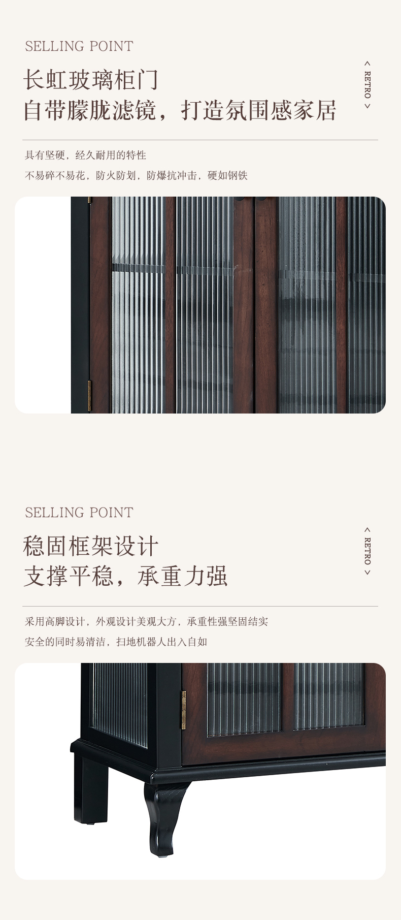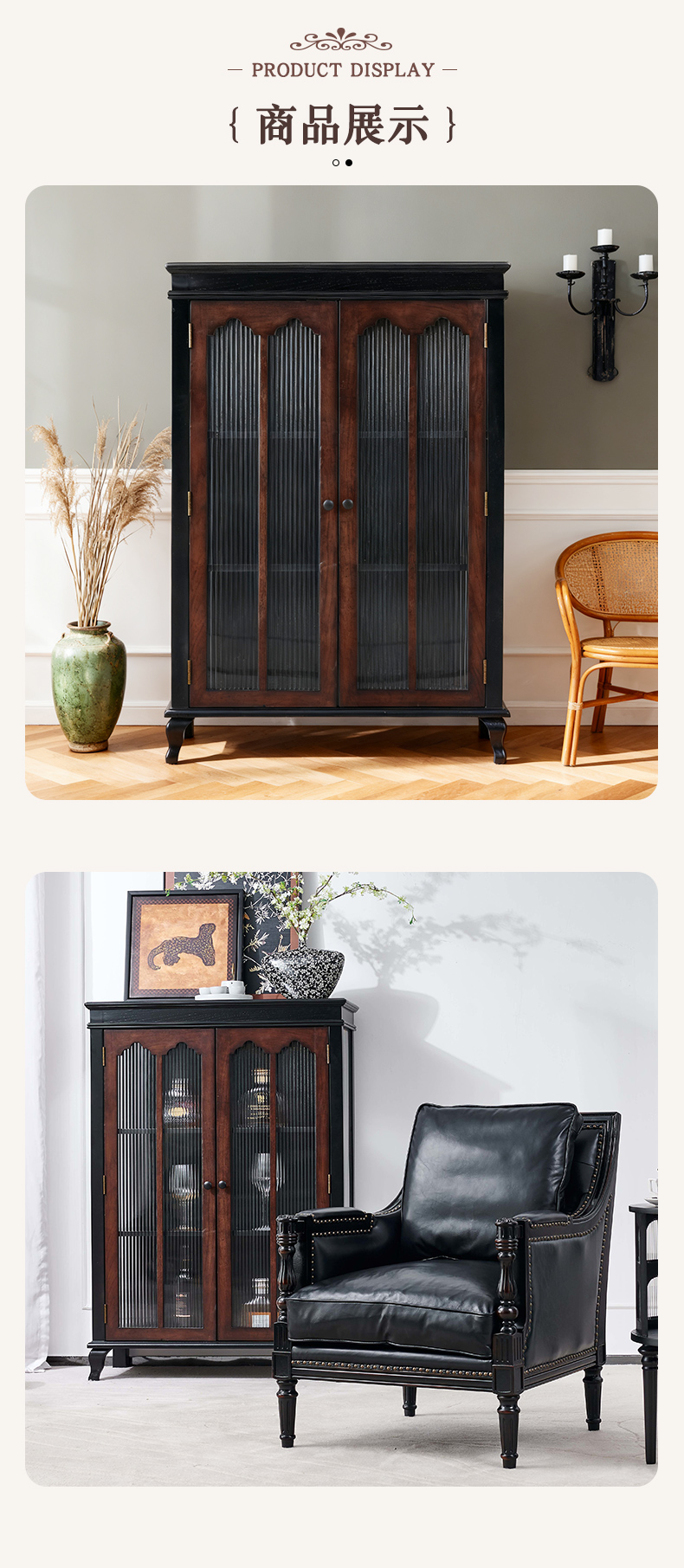 商品名称:【精品】千匠一品 美式中古风格 主材红橡木+辅材实木板拼花+长虹玻璃 时尚大气乔治亚双门酒柜BT-BF712-L