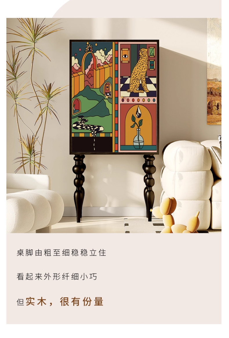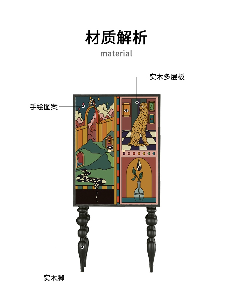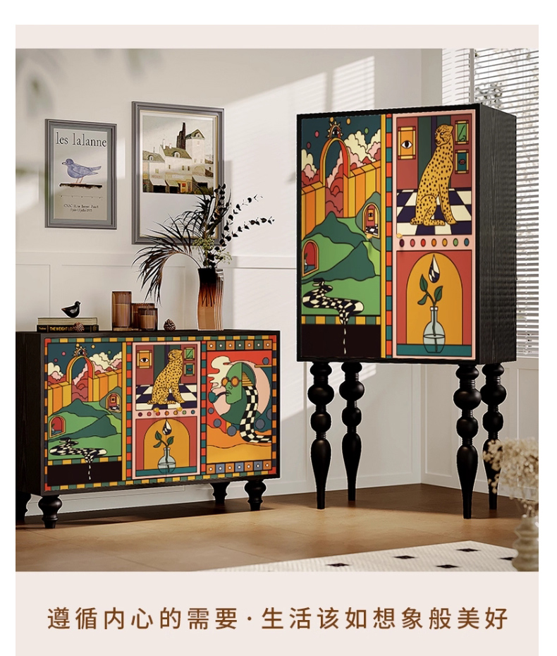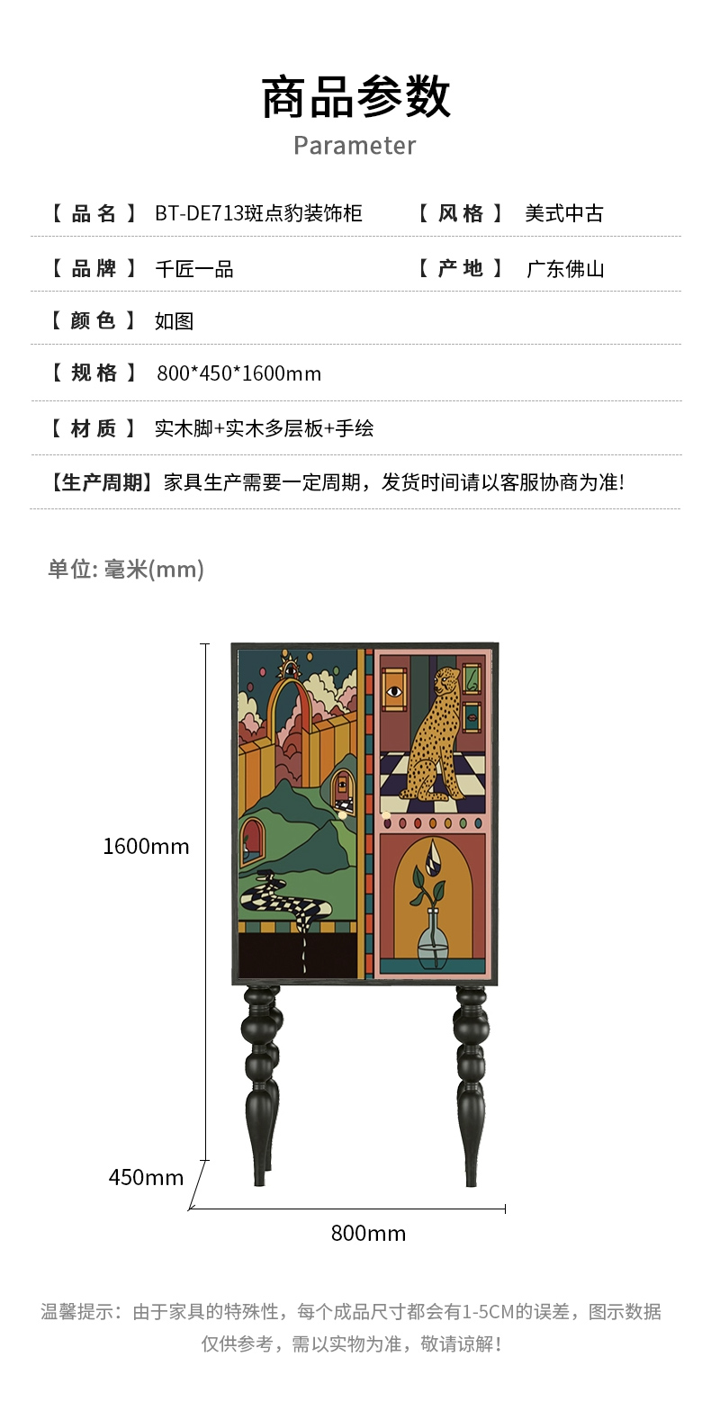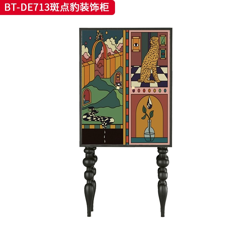 商品名称:【精品】千匠一品 美式中古风格 实木脚+实木多层板+手绘 时尚大气斑点豹装饰柜BT-DE713-L