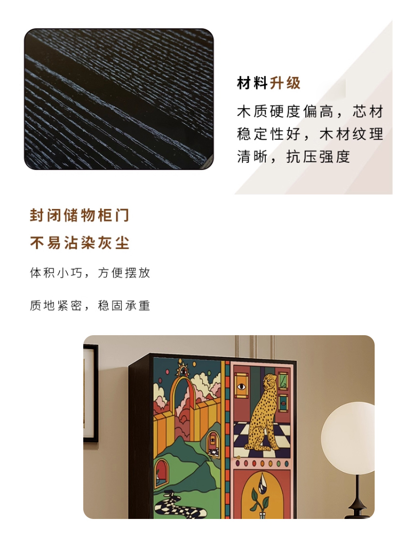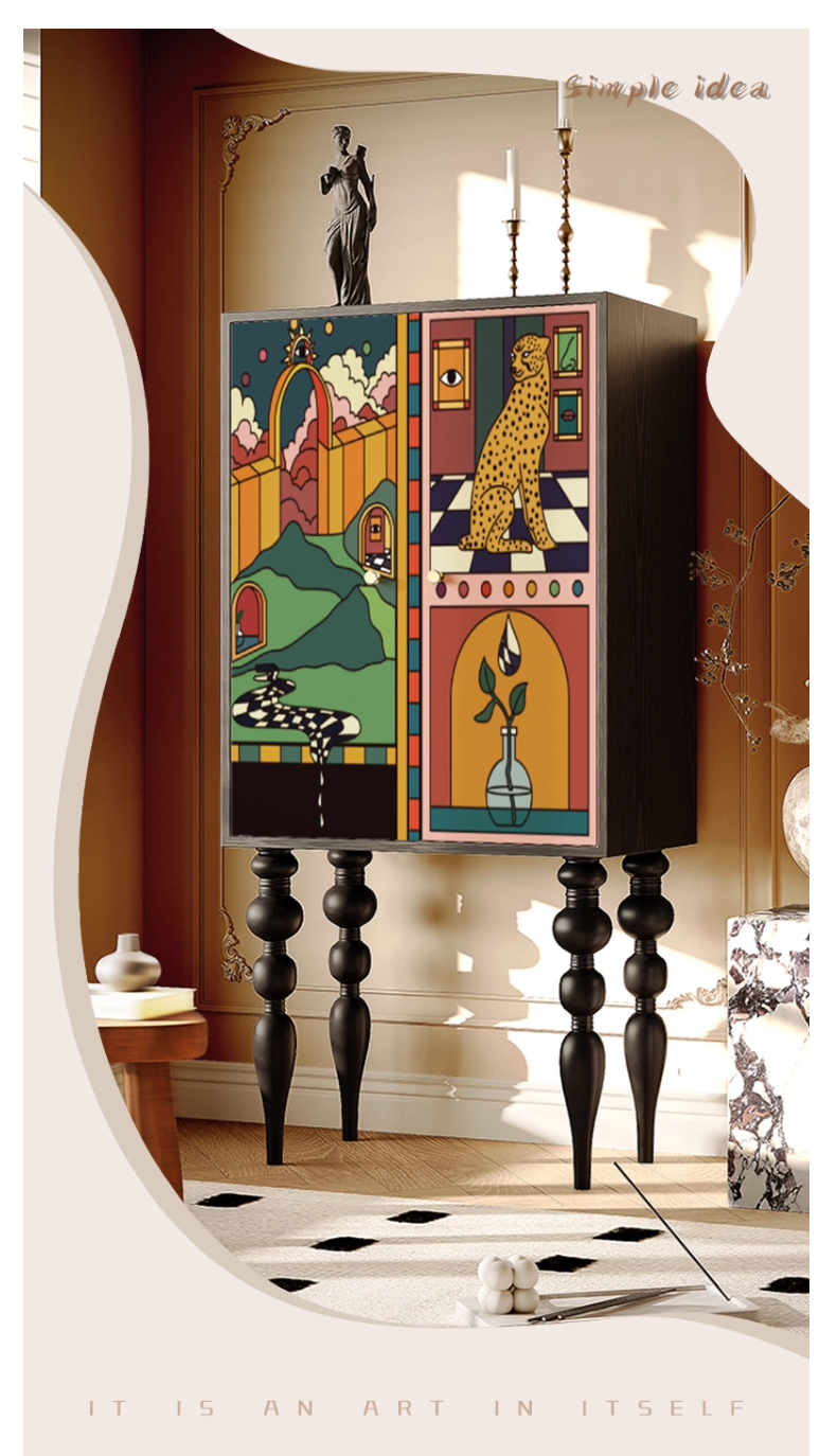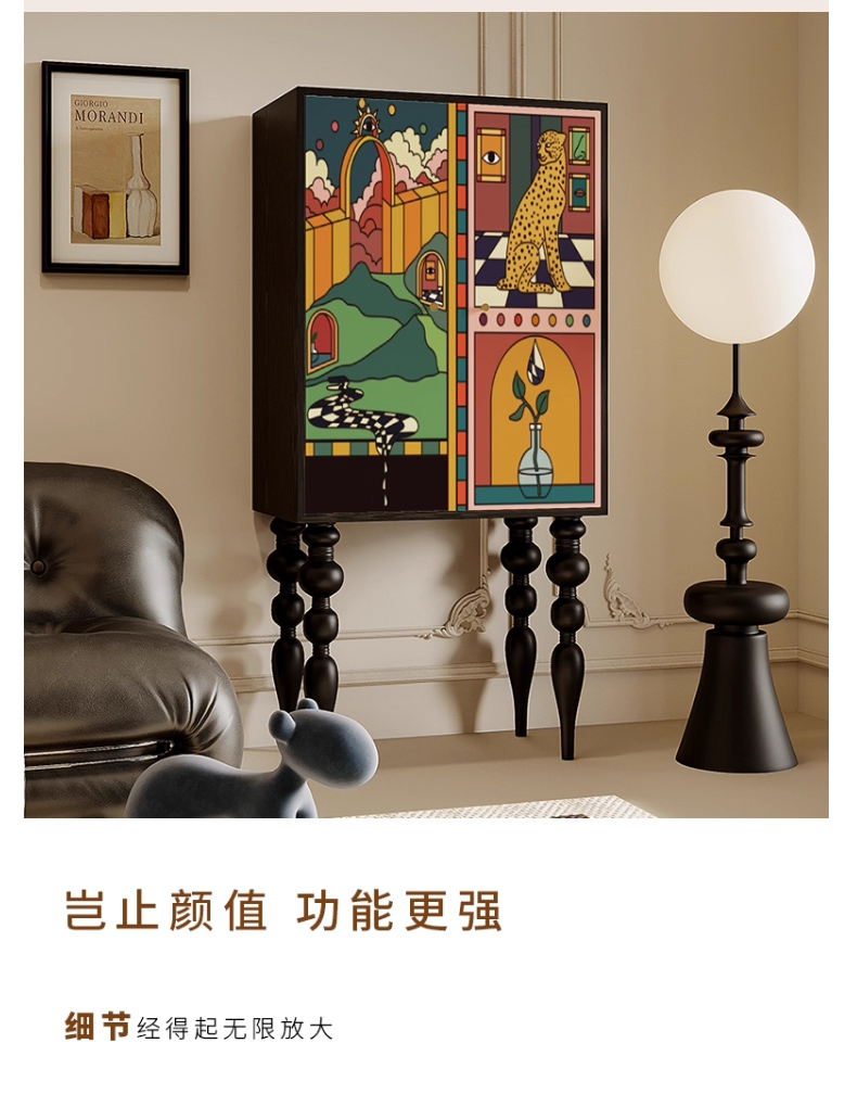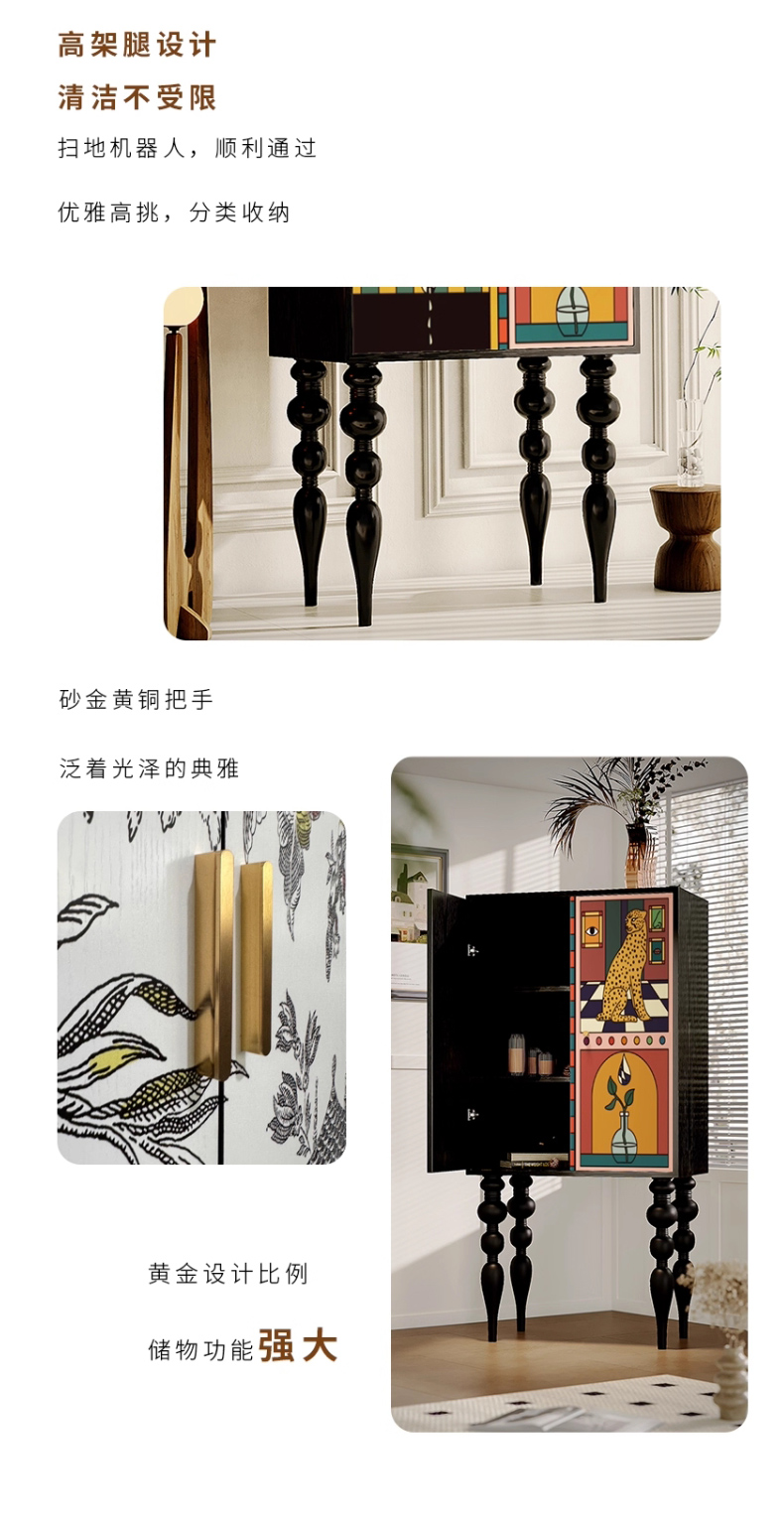 商品名称:【精品】千匠一品 美式中古风格 实木脚+实木多层板+手绘 时尚大气斑点豹装饰柜BT-DE713-L