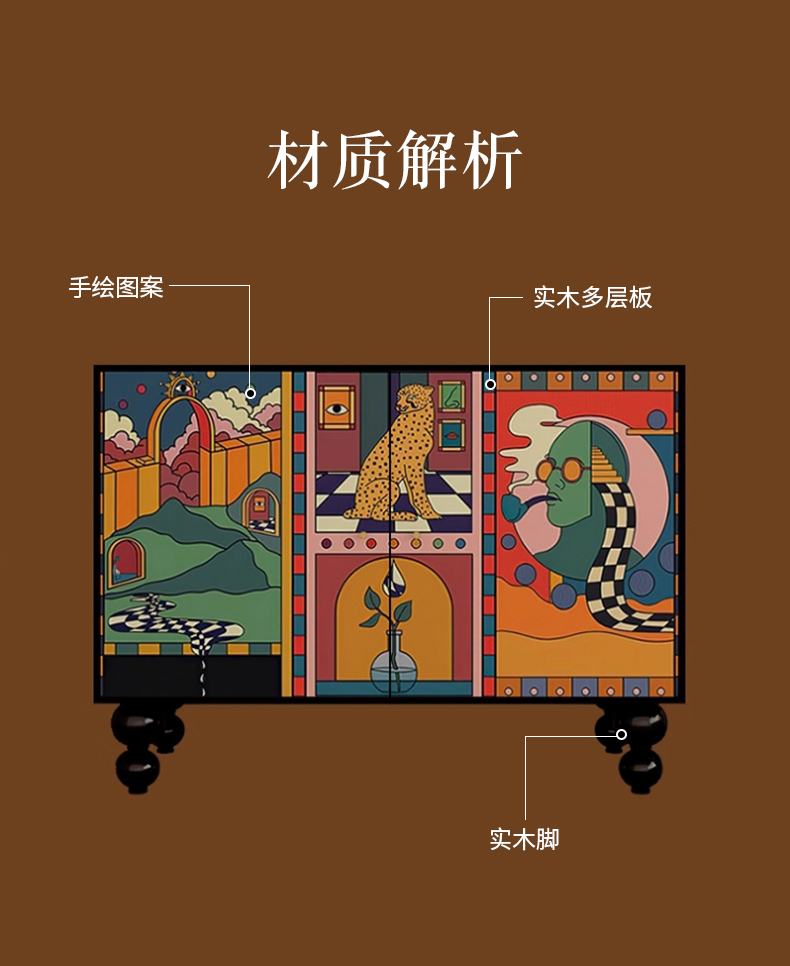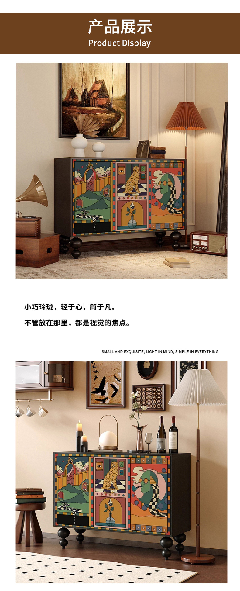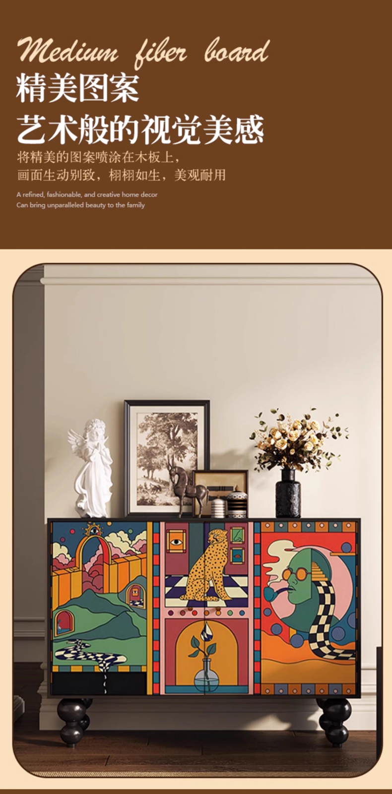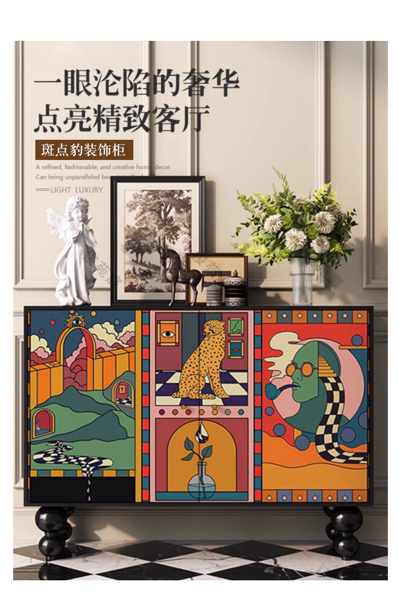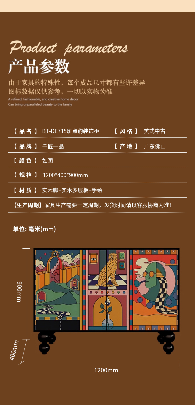商品名称:【精品】千匠一品 美式中古风格 实木脚+实木多层板+手绘 时尚大气斑点豹装饰柜BT-DE715-L