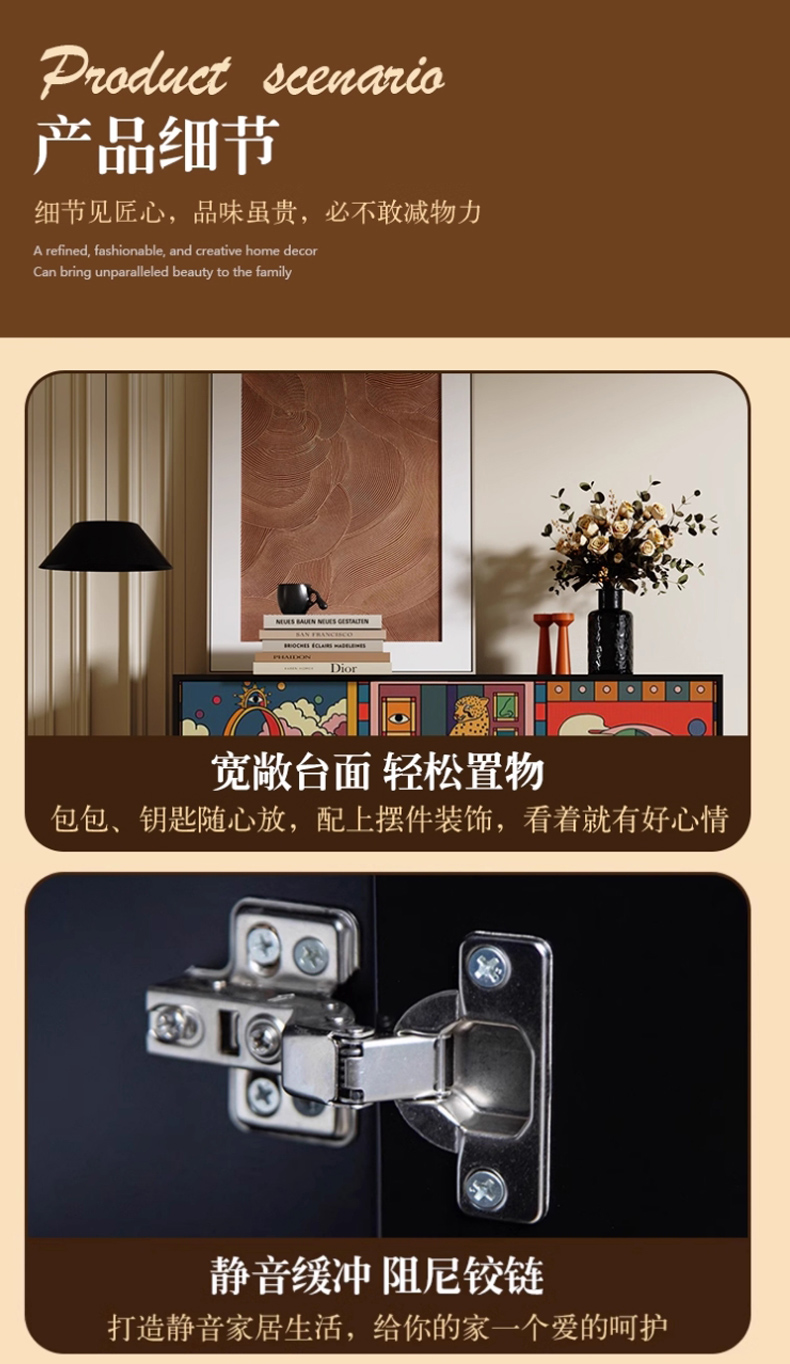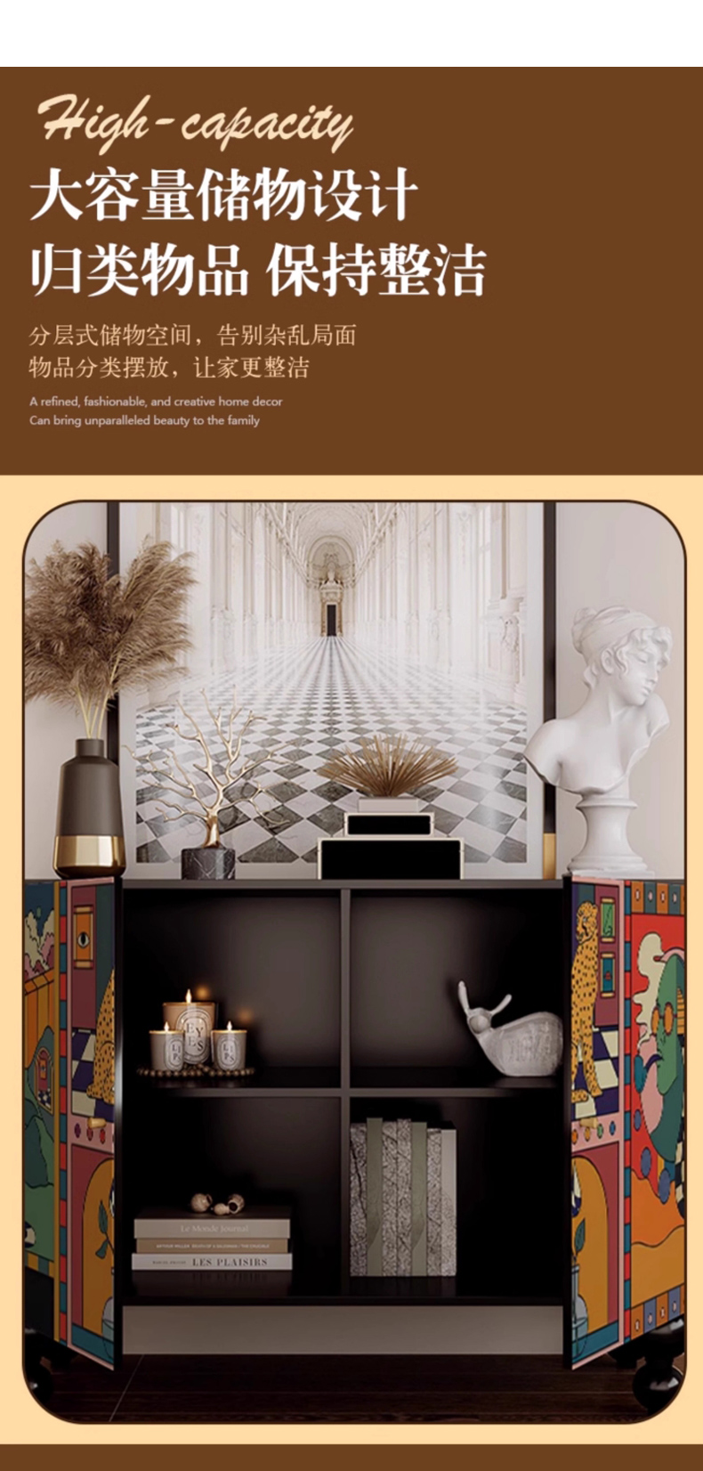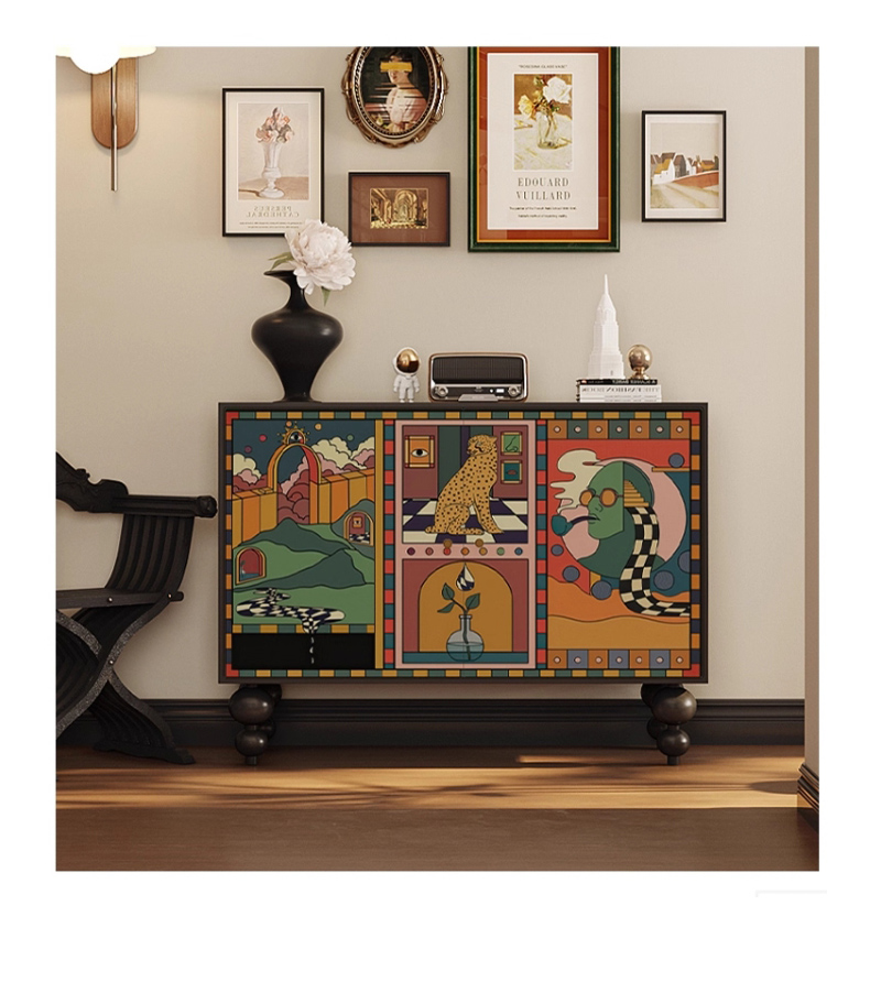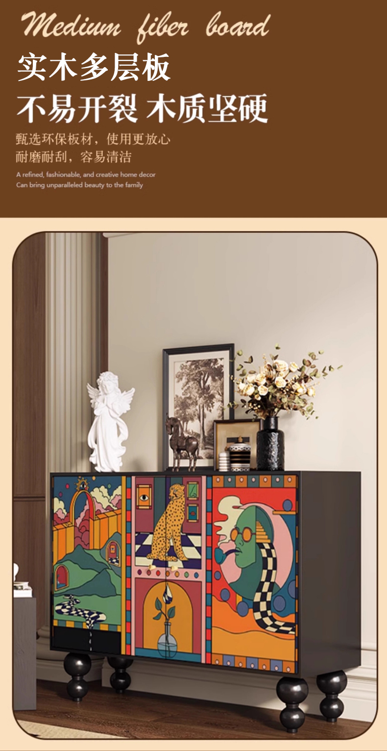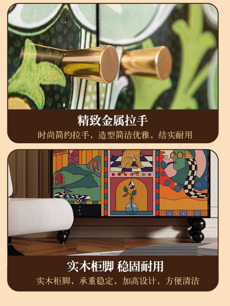 商品名称:【精品】千匠一品 美式中古风格 实木脚+实木多层板+手绘 时尚大气斑点豹装饰柜BT-DE715-L