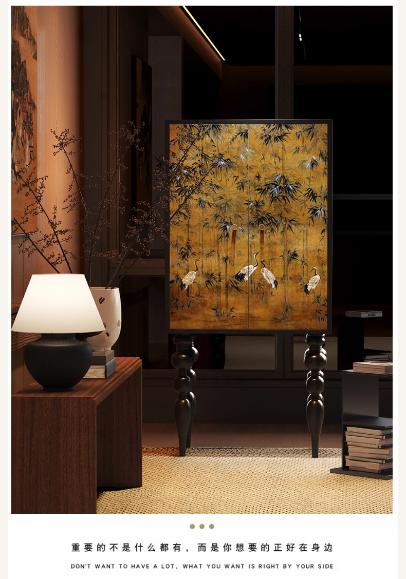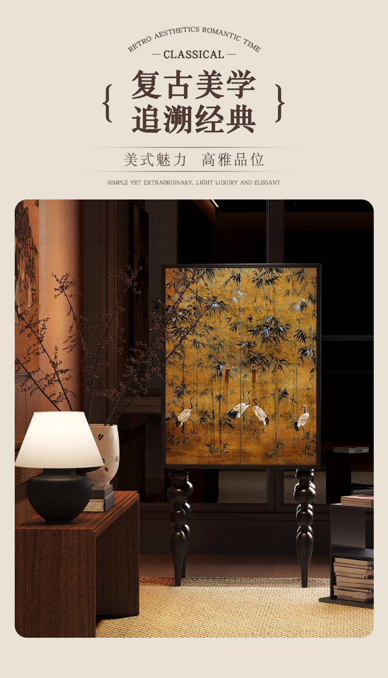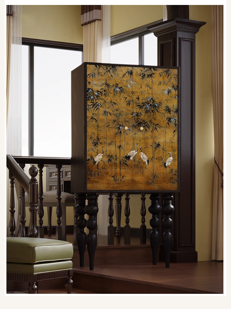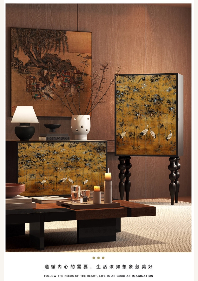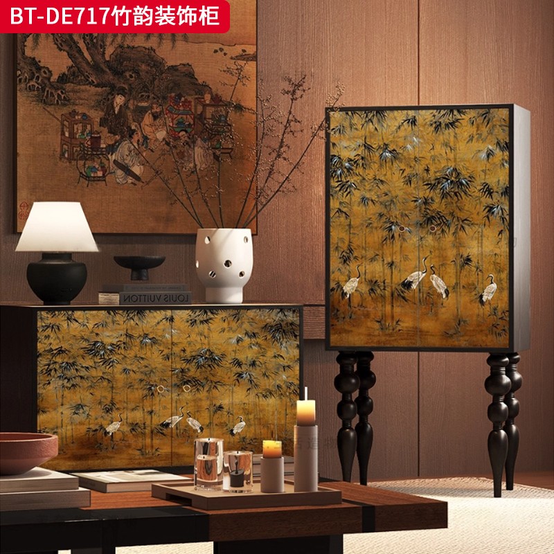 【精品】千匠一品 美式中古风格 实木脚+实木多层板+手绘 时尚大气竹韵装饰柜BT-DE717-L