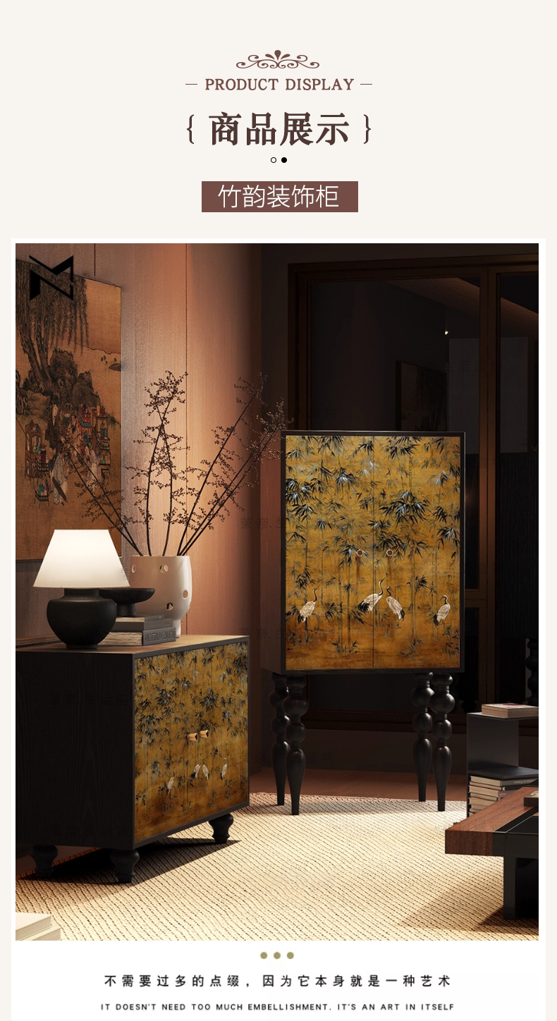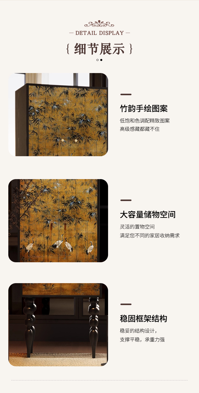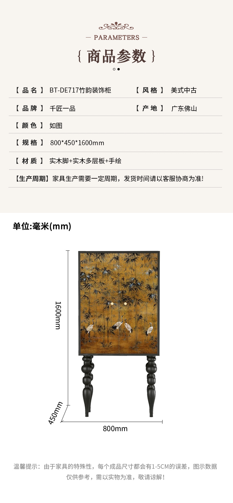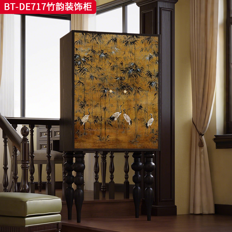 商品名称:【精品】千匠一品 美式中古风格 实木脚+实木多层板+手绘 时尚大气竹韵装饰柜BT-DE717-L