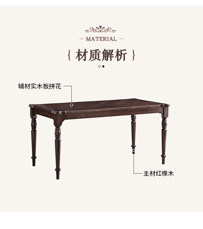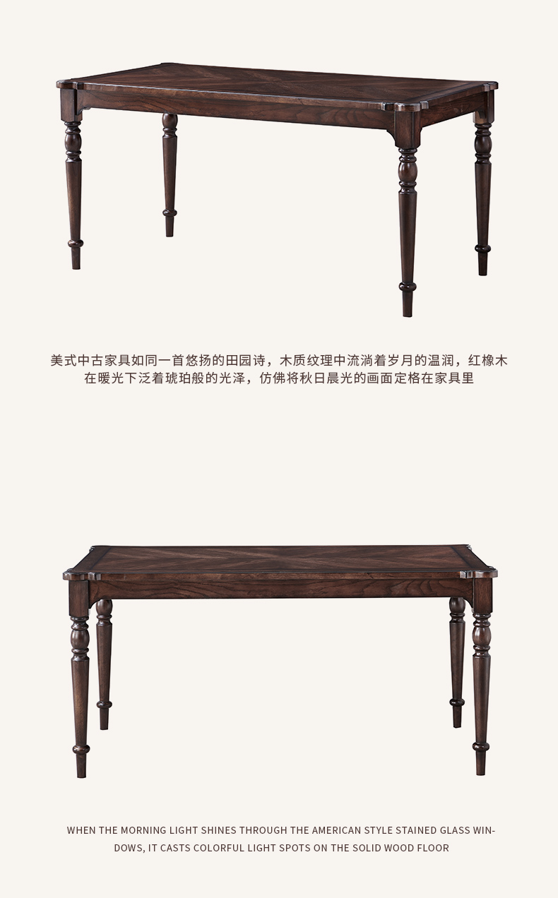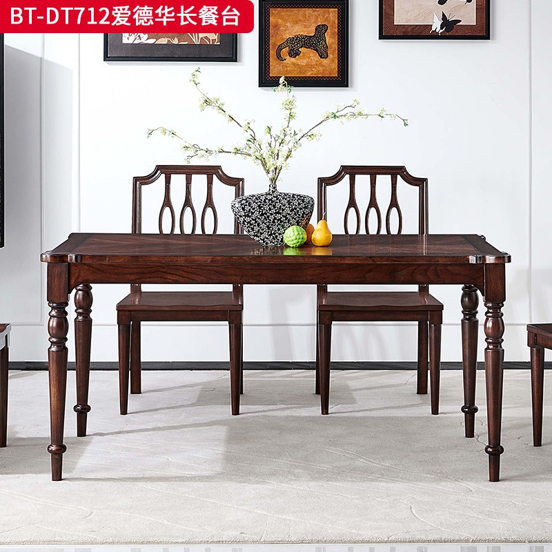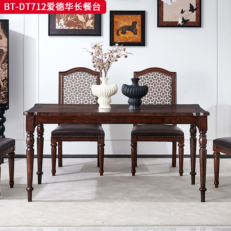 商品名称:【精品】千匠一品 美式中古风格 主材红橡木+辅材实木板拼花 时尚大气爱德华长餐台BT-DT712-L