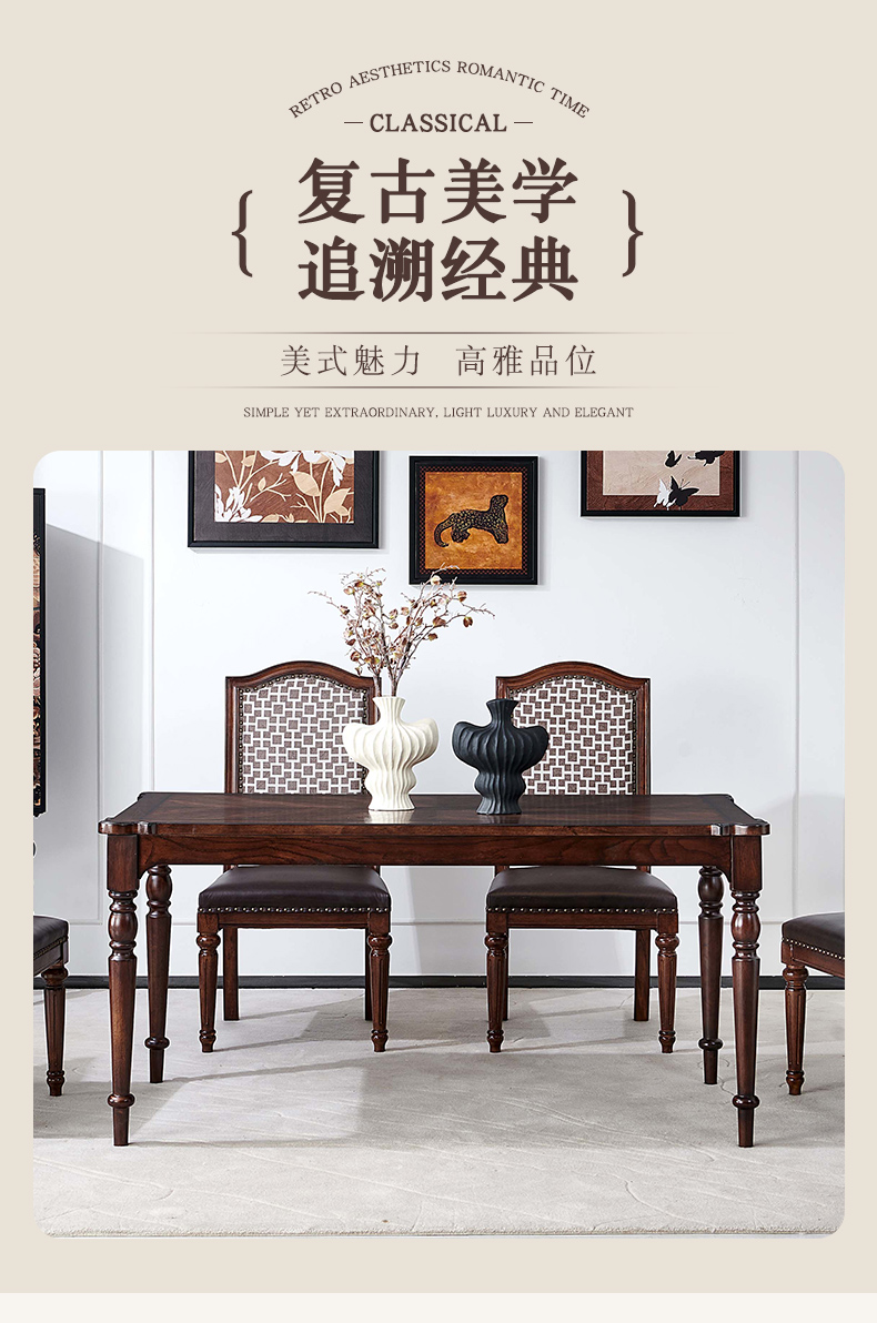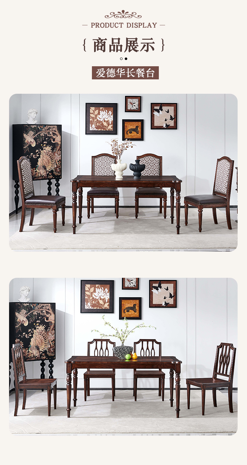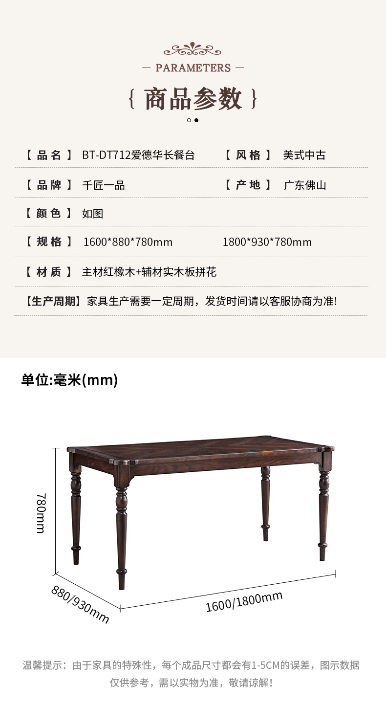 商品名称:【精品】千匠一品 美式中古风格 主材红橡木+辅材实木板拼花 时尚大气爱德华长餐台BT-DT712-L