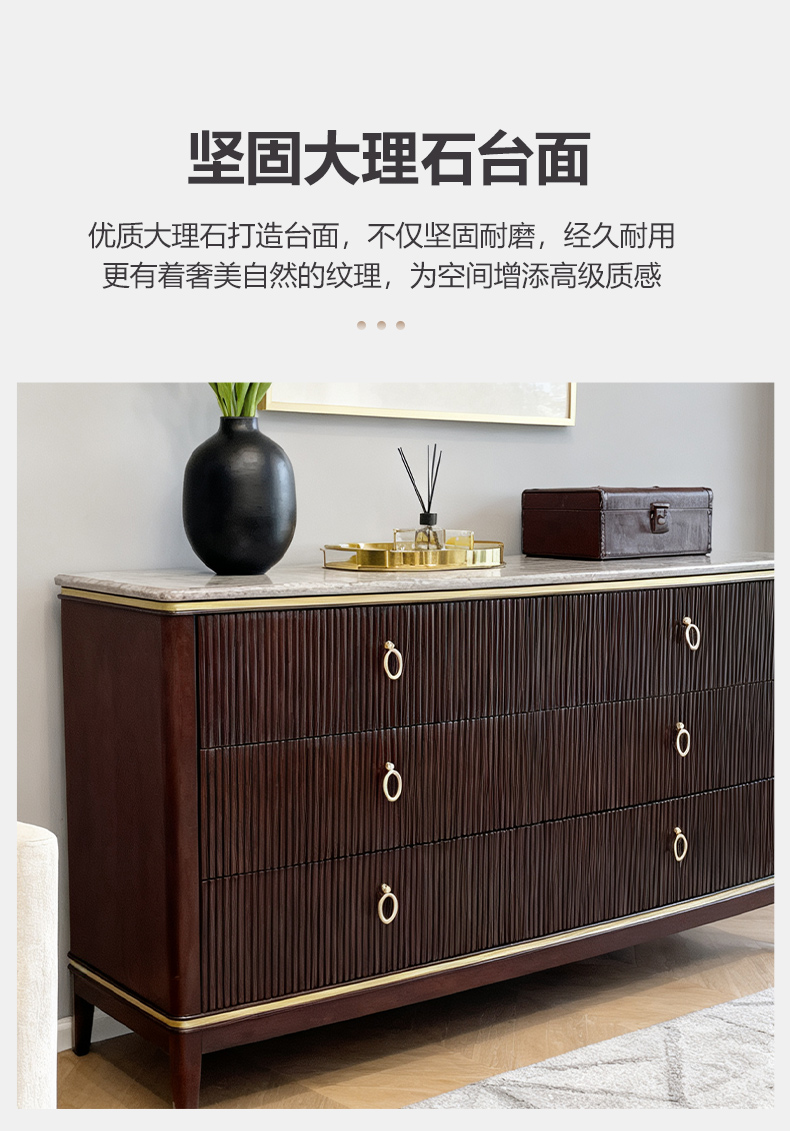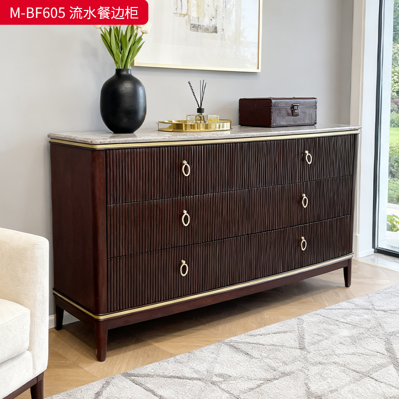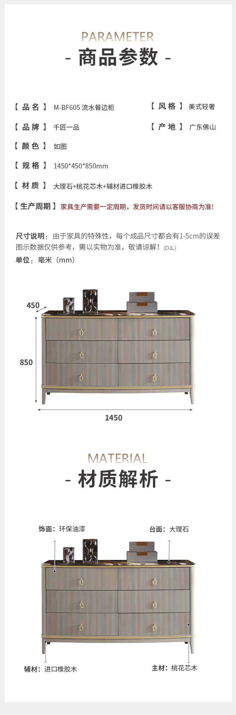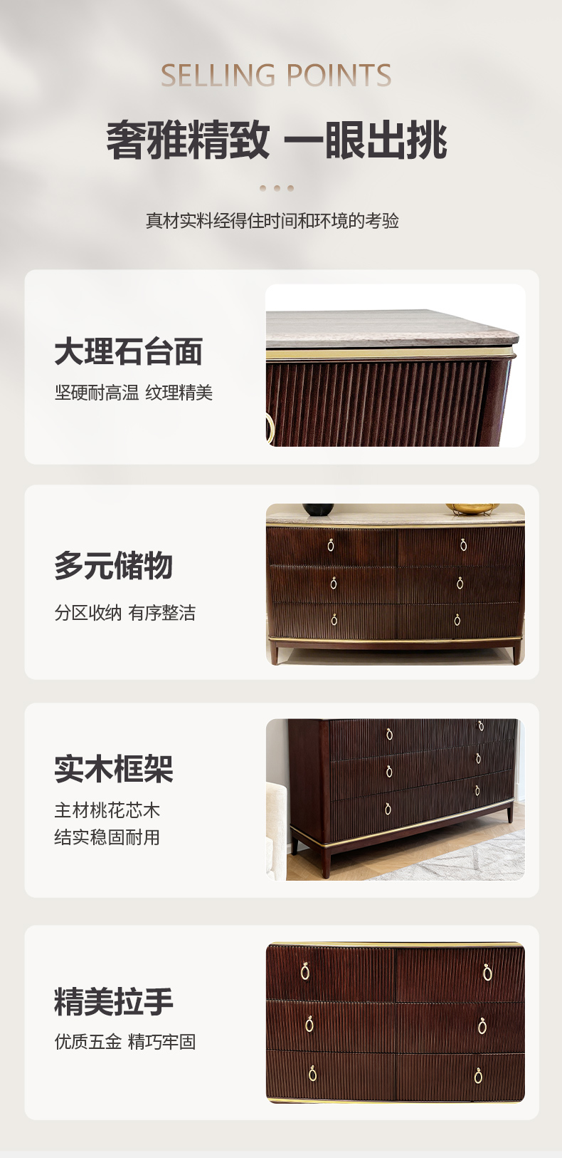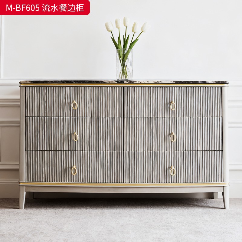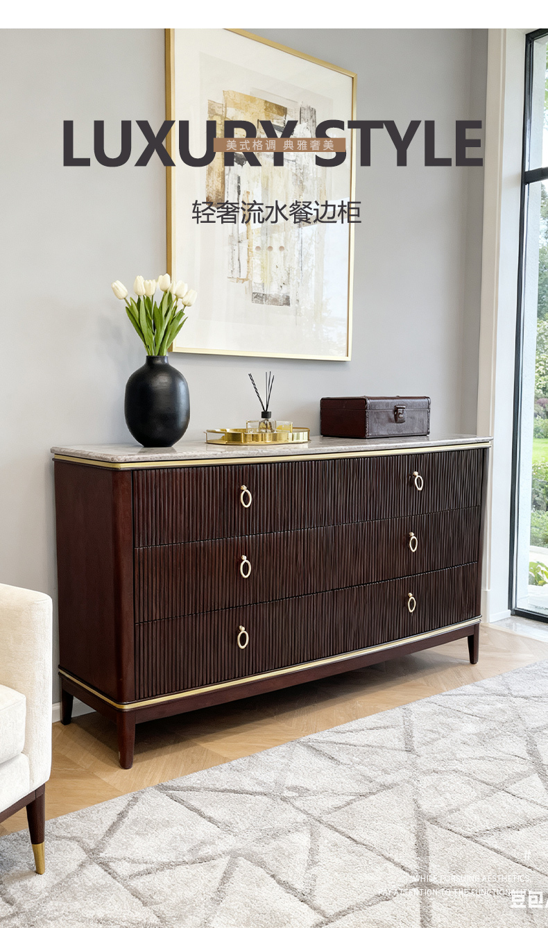 【精品】千匠一品 美式轻奢风格 大理石+桃花芯木+辅材进口橡胶木 时尚大气流水餐边柜M-BF605-L