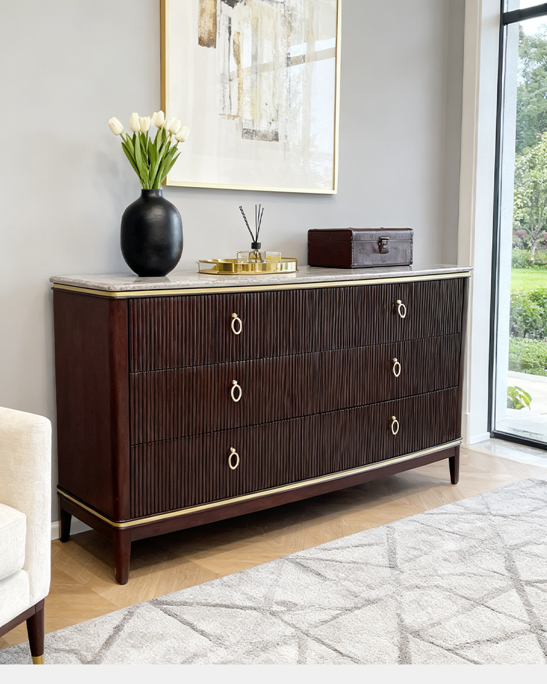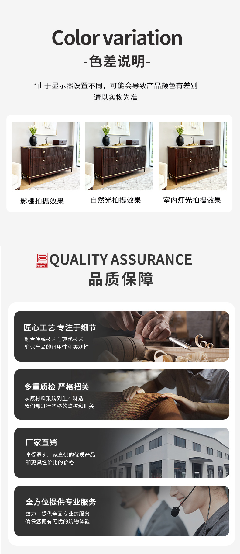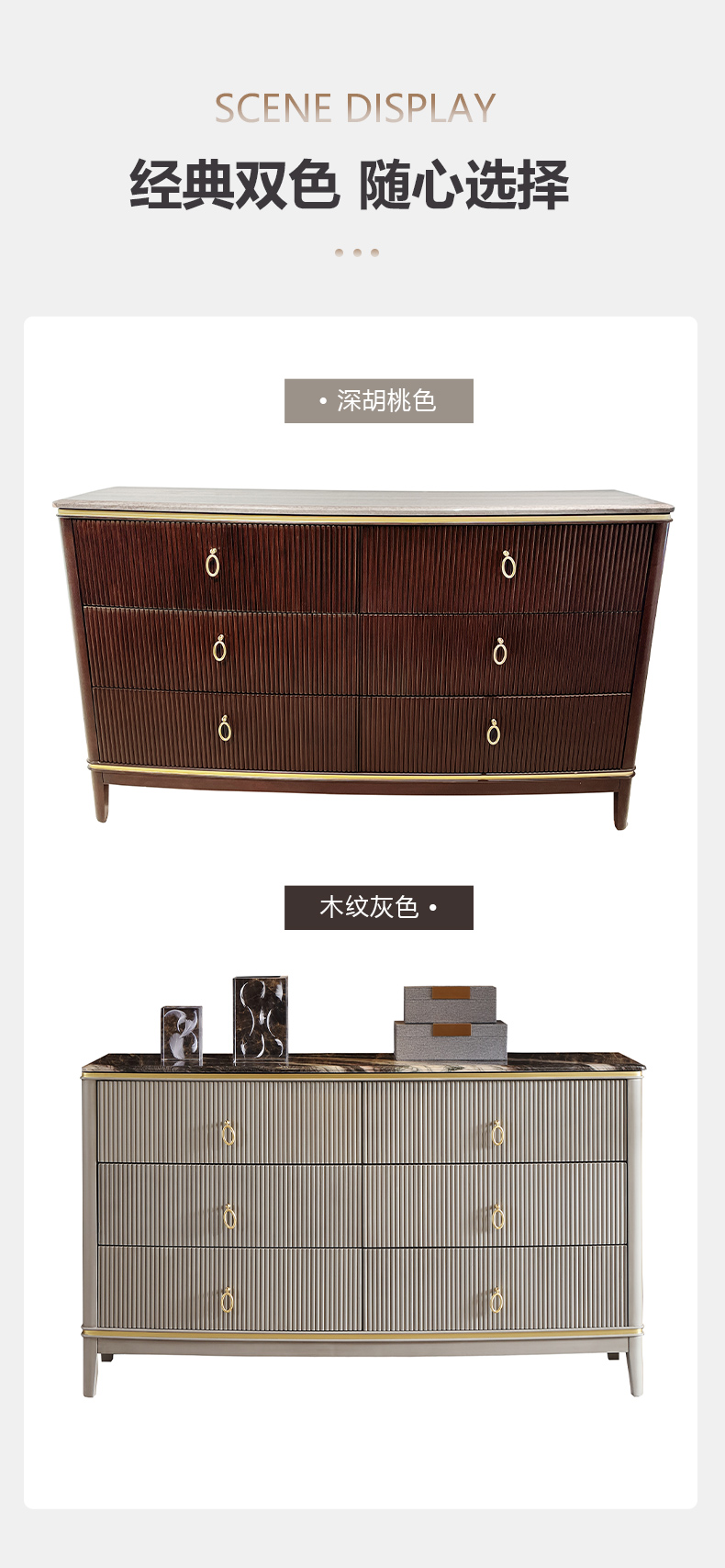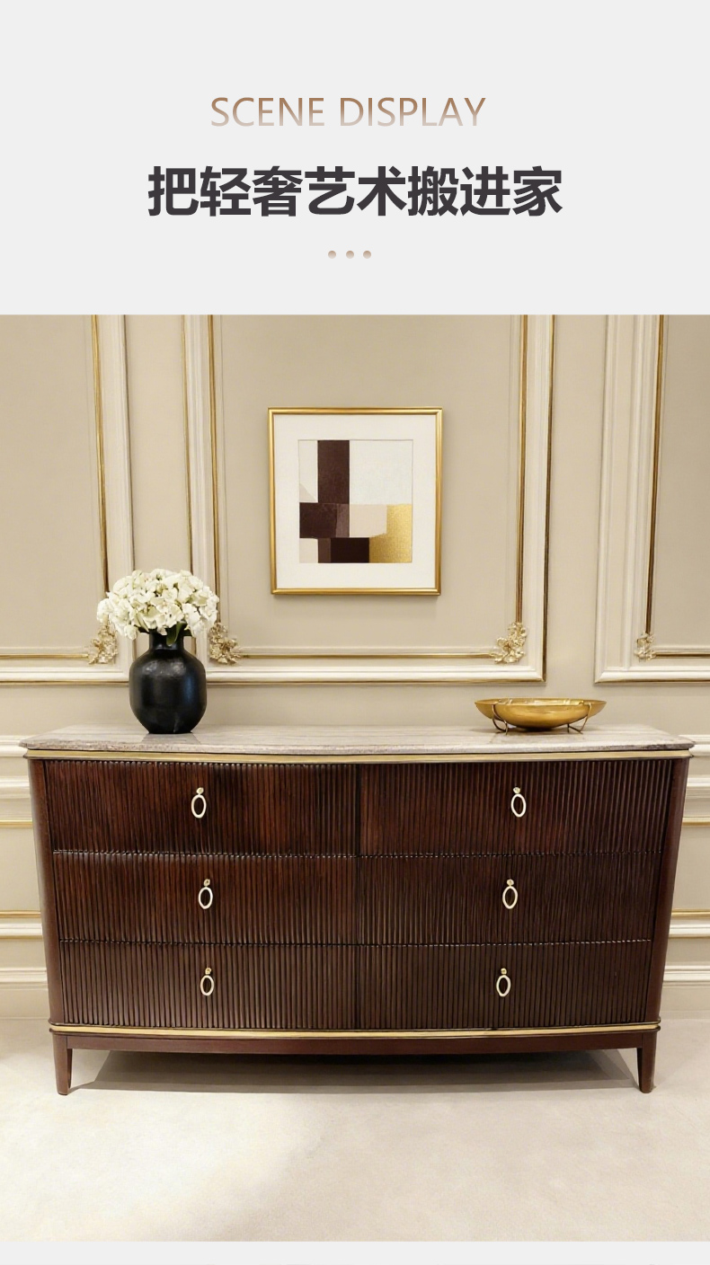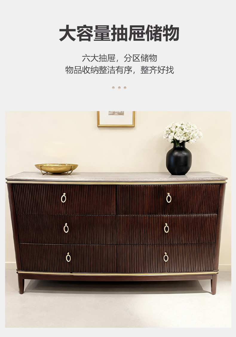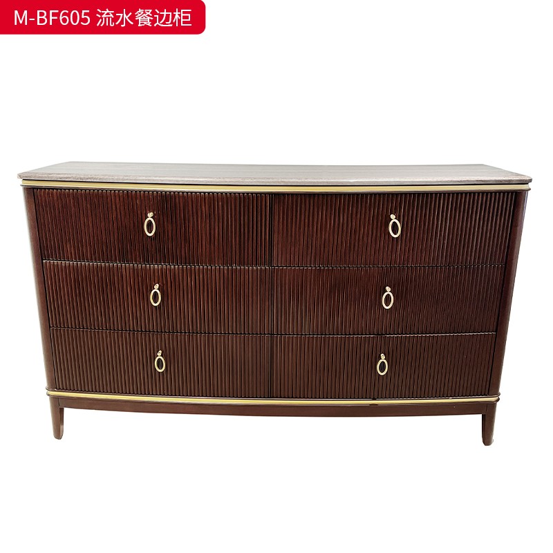 【精品】千匠一品 美式轻奢风格 大理石+桃花芯木+辅材进口橡胶木 时尚大气流水餐边柜M-BF605-L