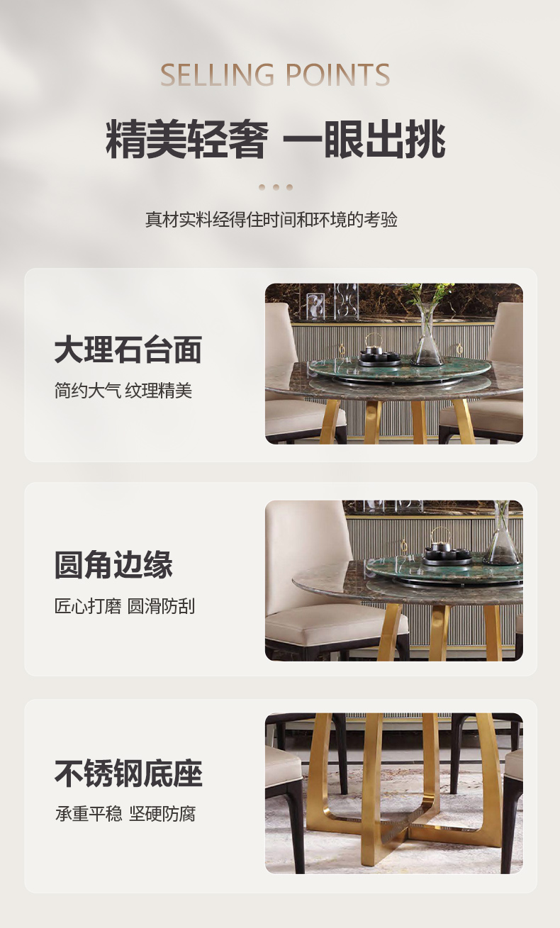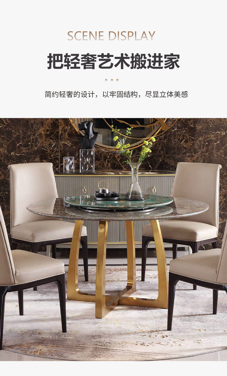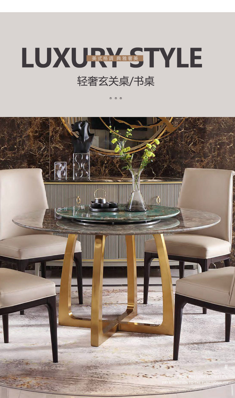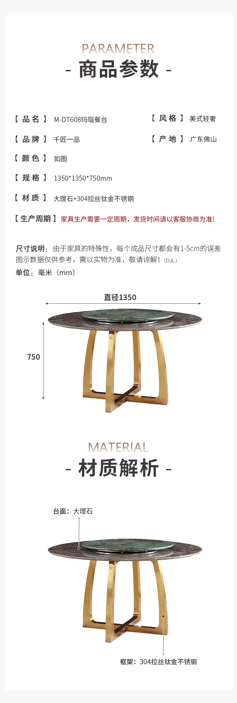 商品名称:【精品】千匠一品 美式轻奢风格 大理石+304拉丝钛金不锈钢 时尚大气玛瑙餐台M-DT608-L