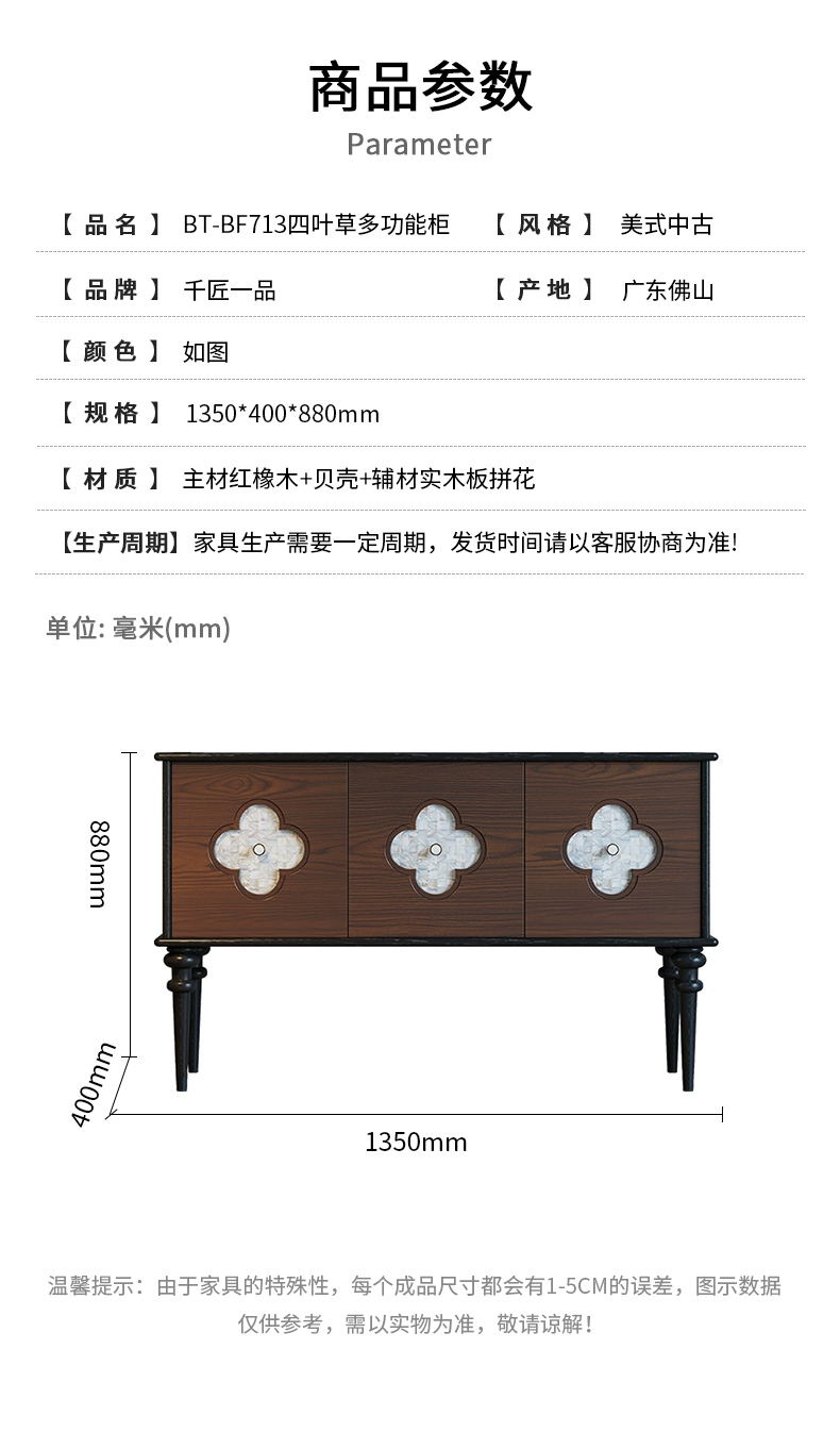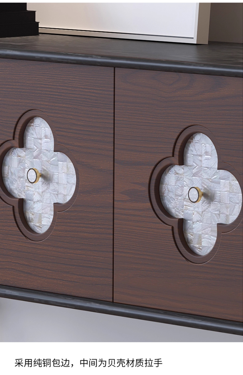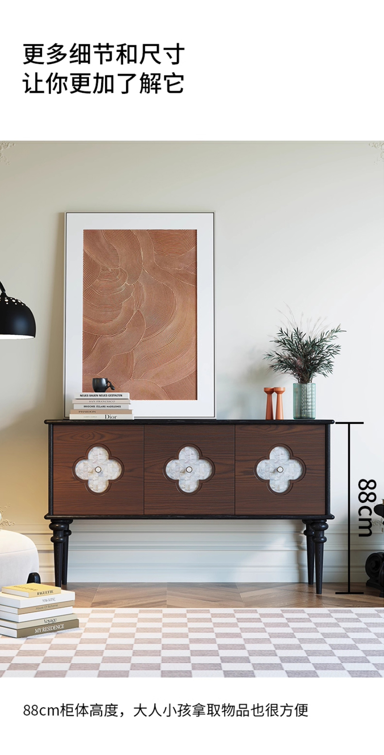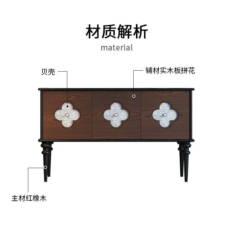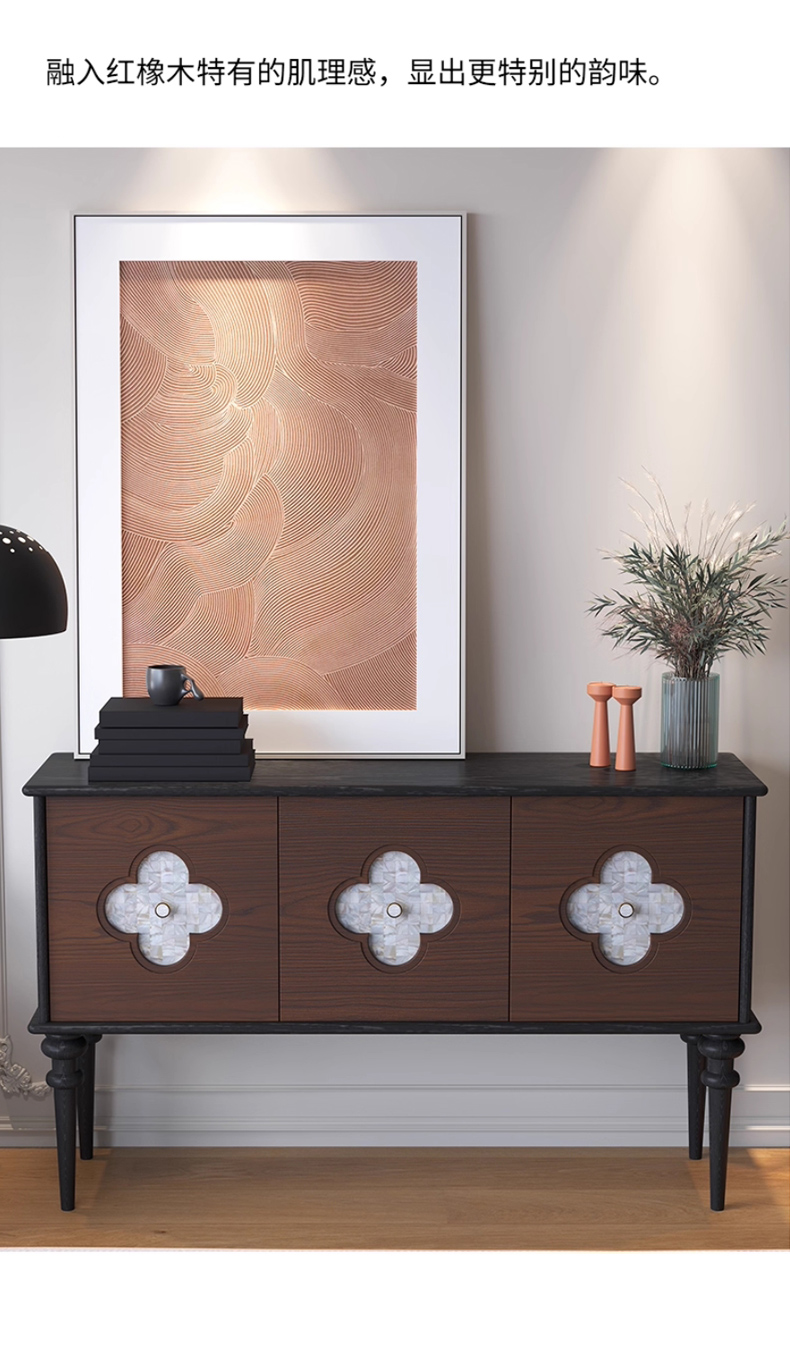 商品名称:【精品】千匠一品 美式中古风格 主材红橡木+贝壳+辅材实木板拼花 时尚大气多功能柜BT-BF713-L