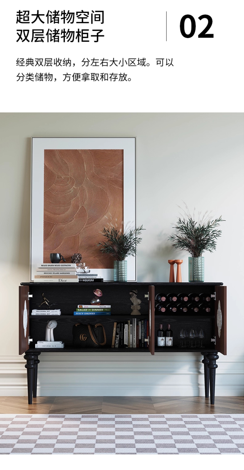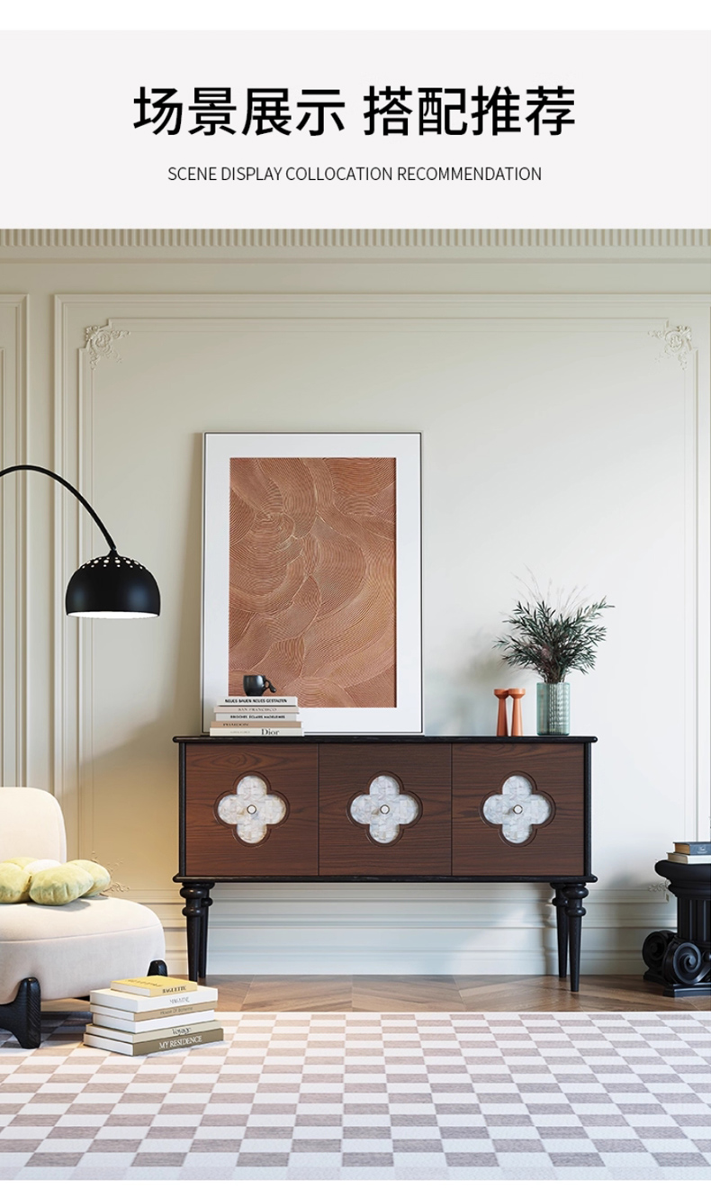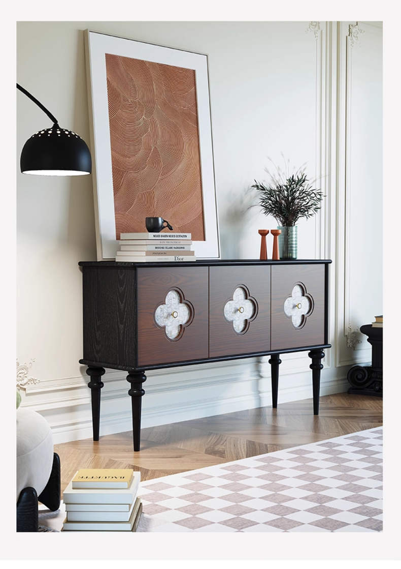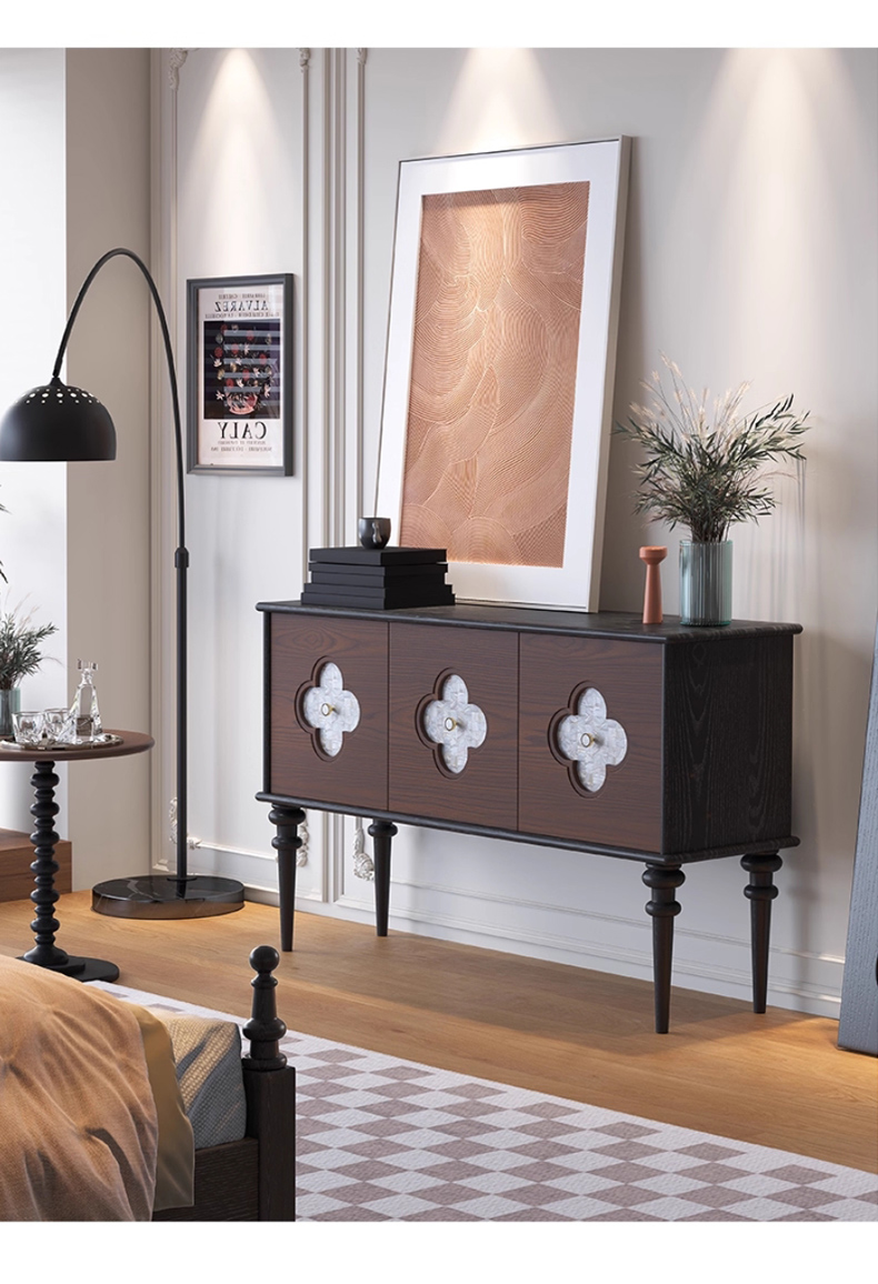 商品名称:【精品】千匠一品 美式中古风格 主材红橡木+贝壳+辅材实木板拼花 时尚大气多功能柜BT-BF713-L