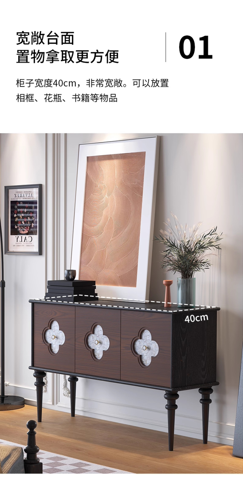 【精品】千匠一品 美式中古风格 主材红橡木+贝壳+辅材实木板拼花 时尚大气多功能柜BT-BF713-L