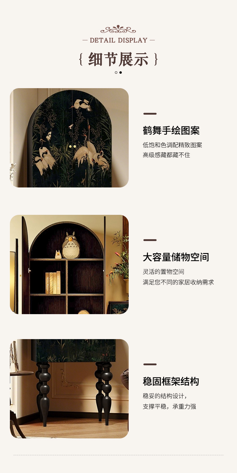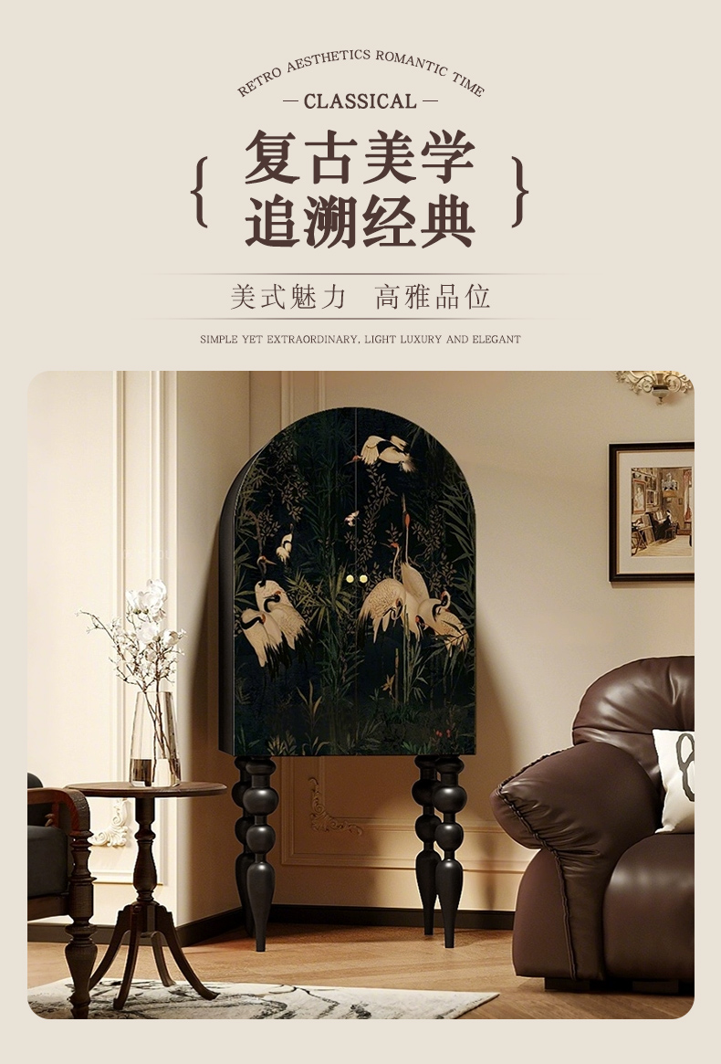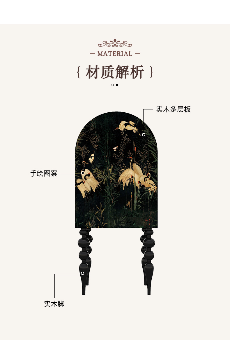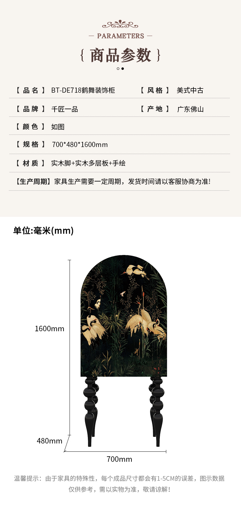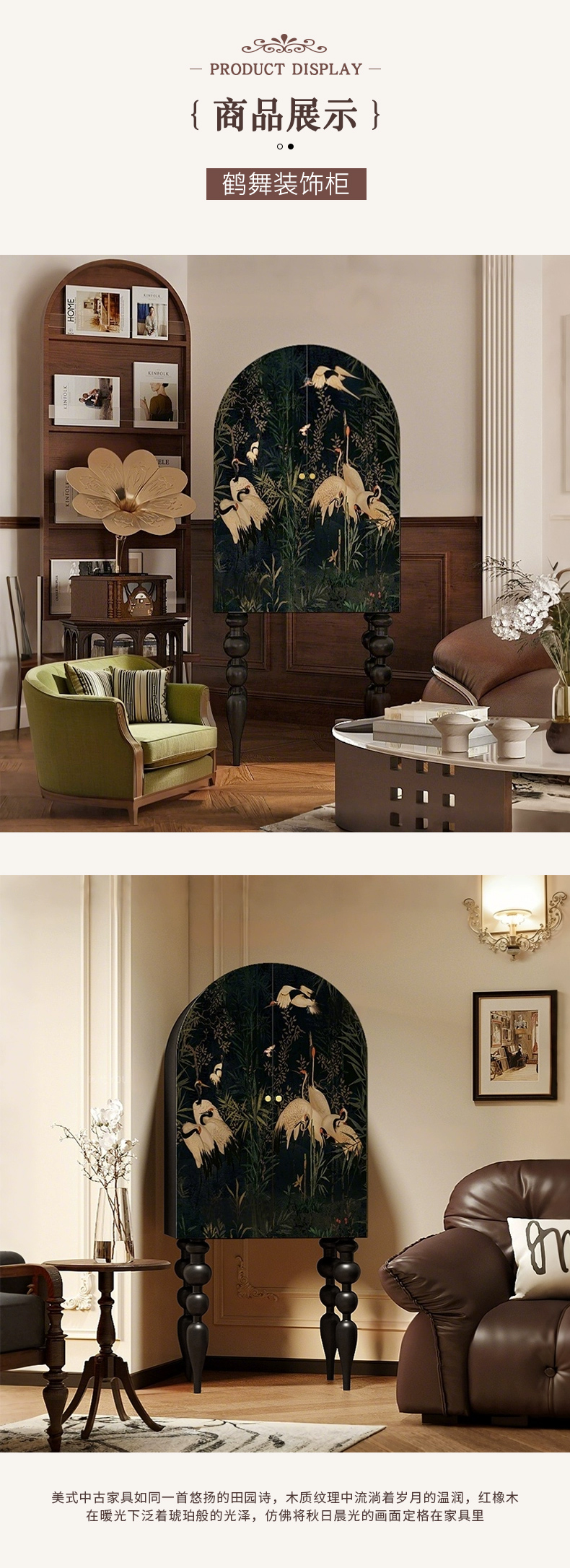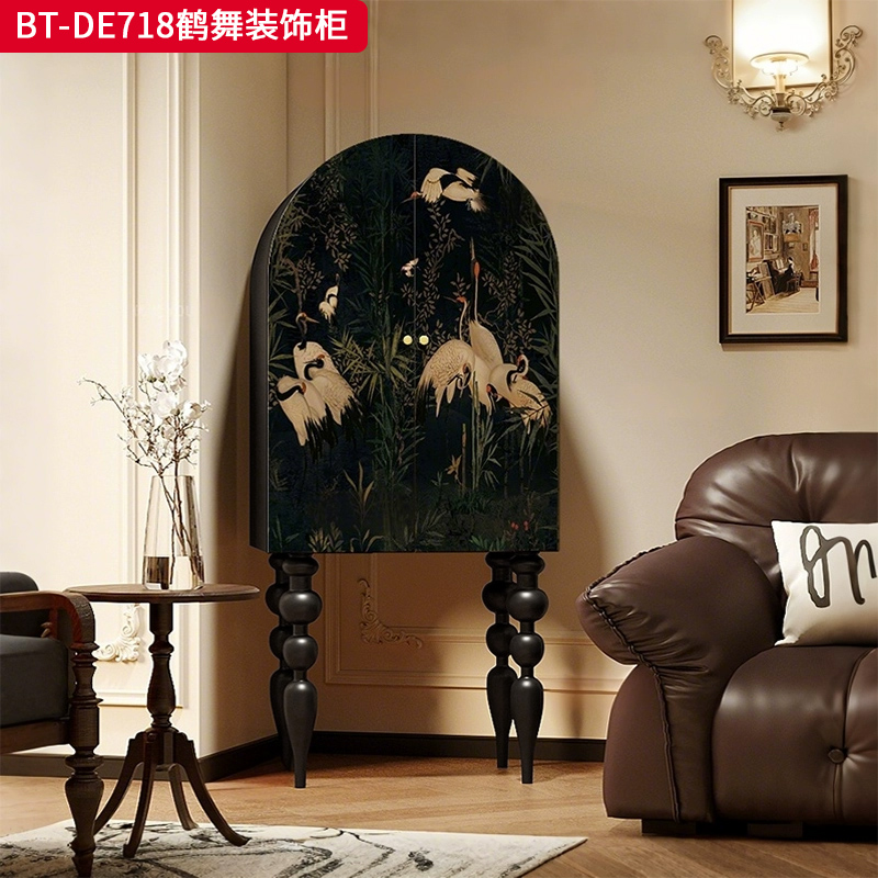 商品名称:【精品】千匠一品 美式中古风格 实木脚+实木多层板+手绘 时尚大气鹤舞装饰柜BT-DE718-L