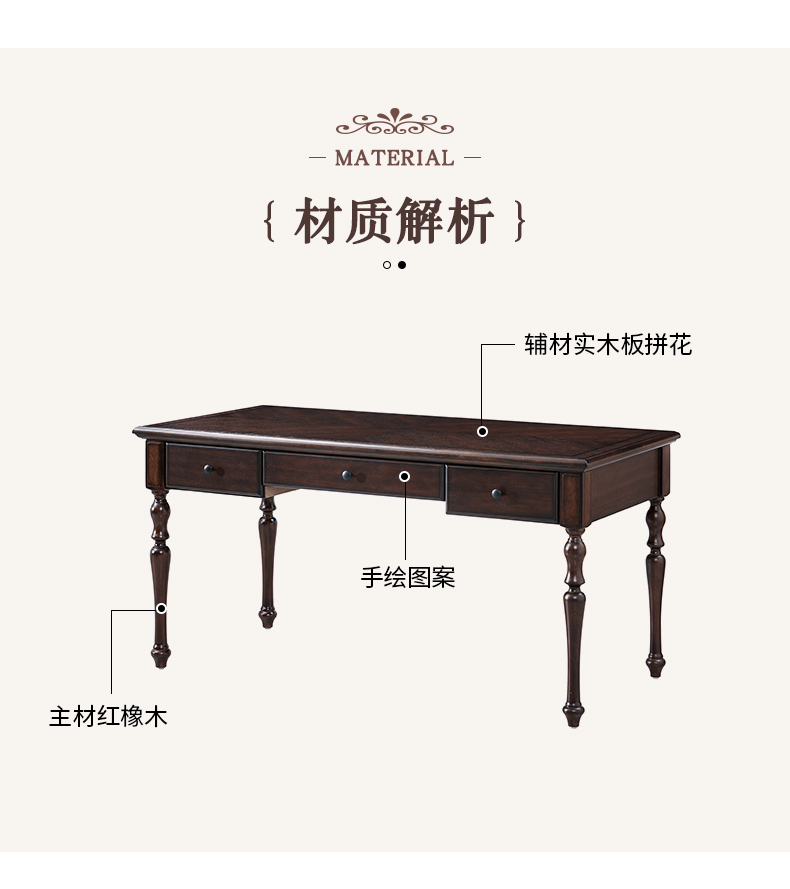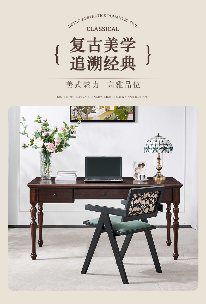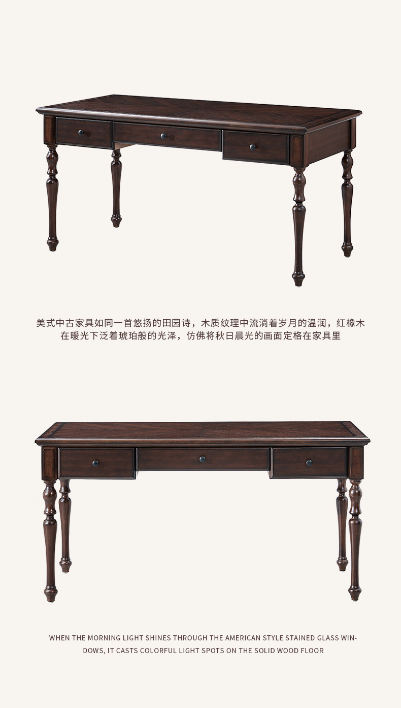 【精品】千匠一品 美式中古风格 主材红橡木+辅材实木板拼花+松木 时尚大气爱尼奥书台BT-DK712-L