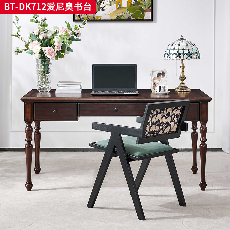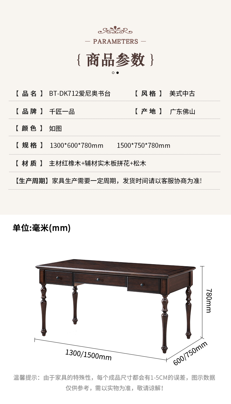 商品名称:【精品】千匠一品 美式中古风格 主材红橡木+辅材实木板拼花+松木 时尚大气爱尼奥书台BT-DK712-L