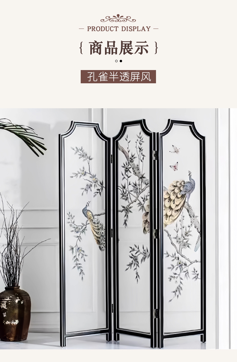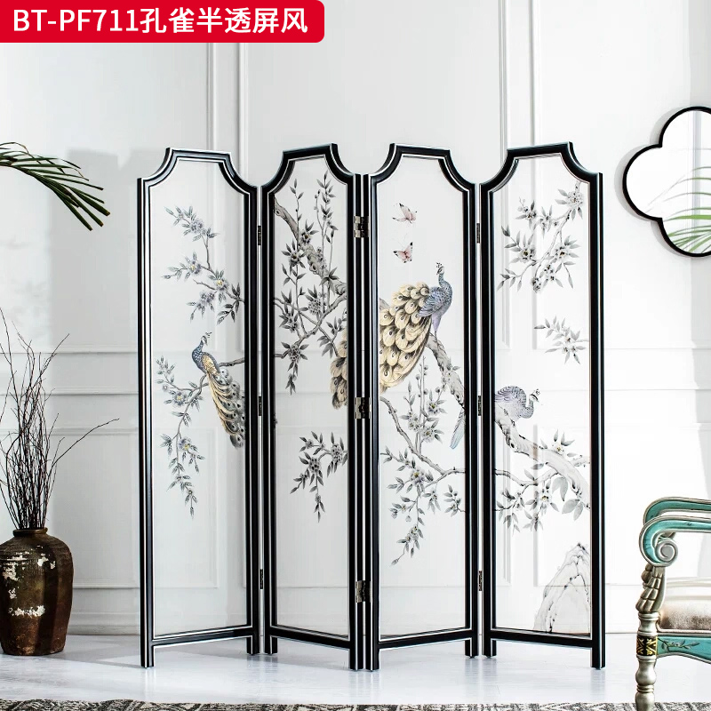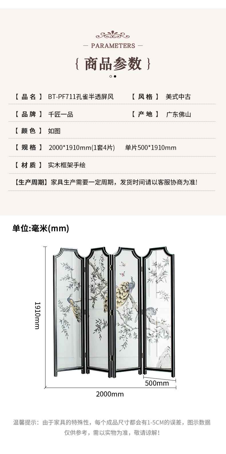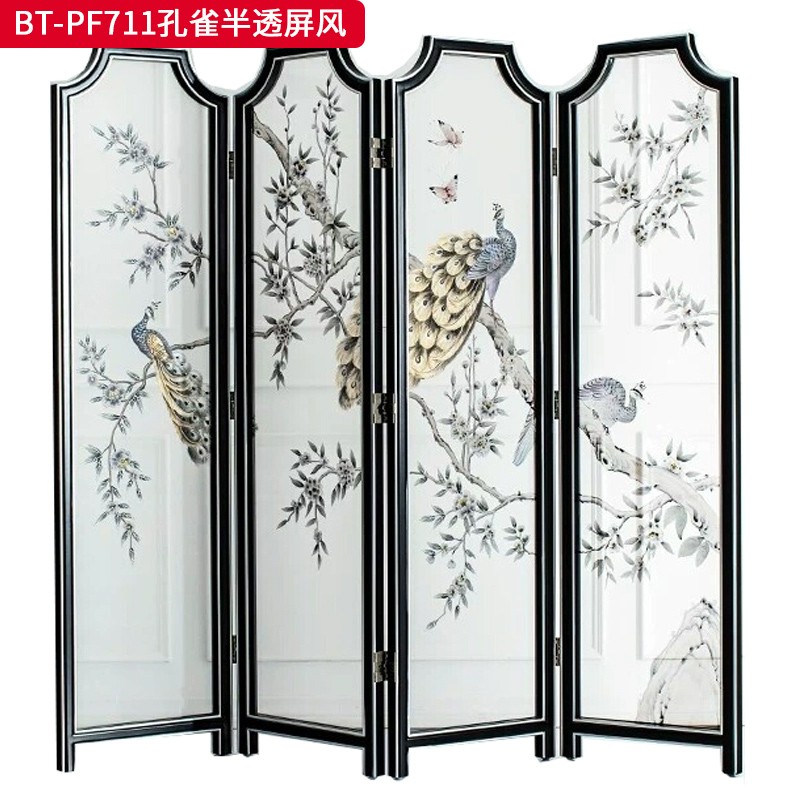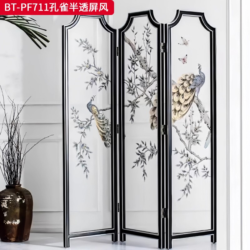商品名称:【精品】千匠一品 美式中古风格 实木框架手绘 时尚大气孔雀半透屏风BT-PF711-L