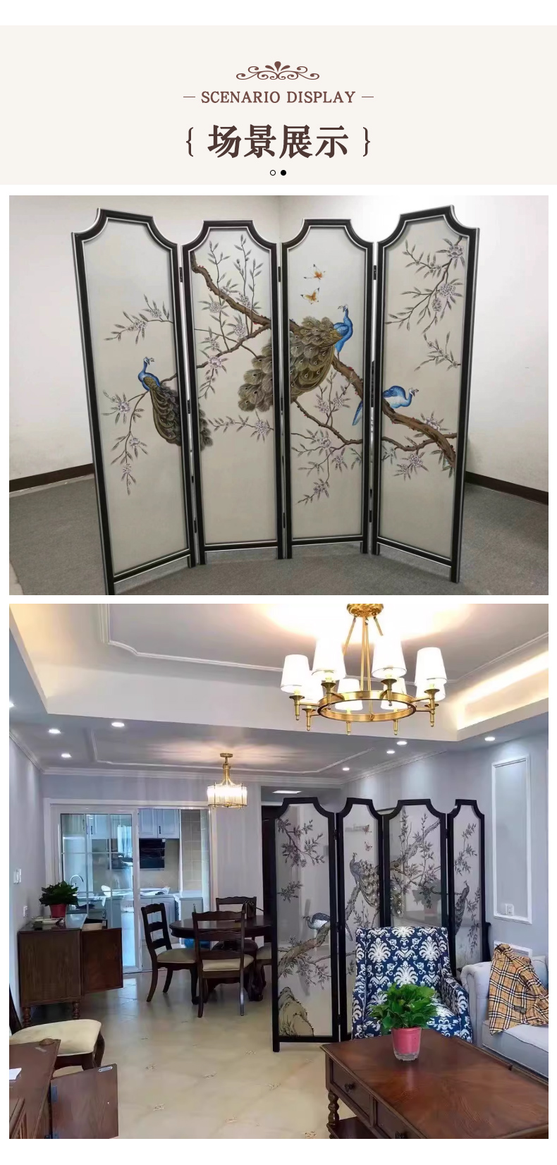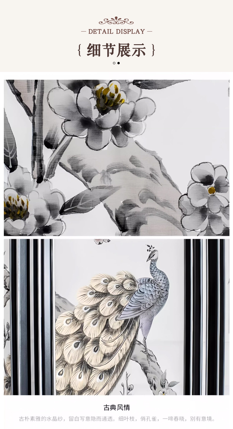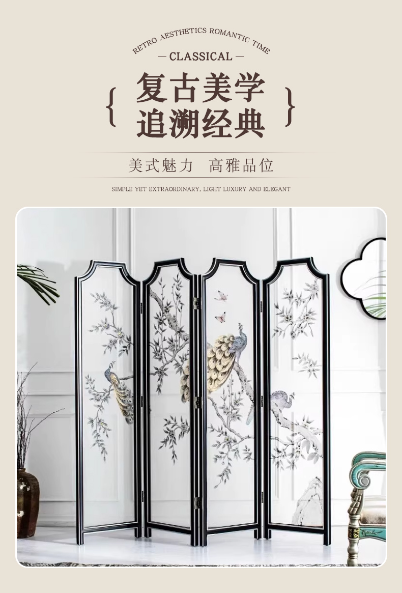 商品名称:【精品】千匠一品 美式中古风格 实木框架手绘 时尚大气孔雀半透屏风BT-PF711-L