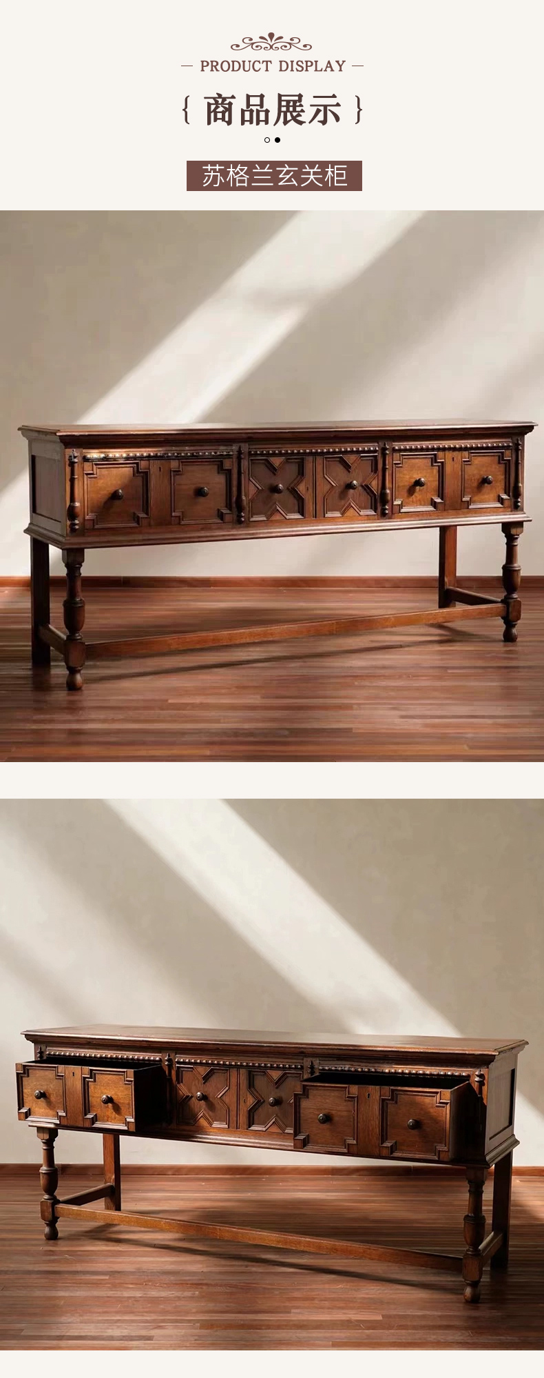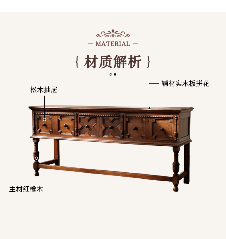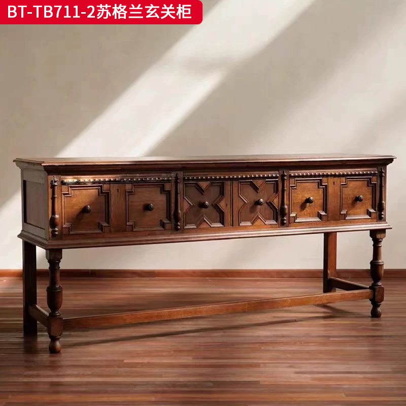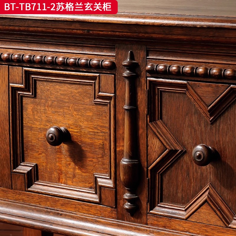 【精品】千匠一品 美式中古风格 主材红橡木+辅材实木板拼花+松木 时尚大气舒格兰玄关柜BT-TB711-2-L