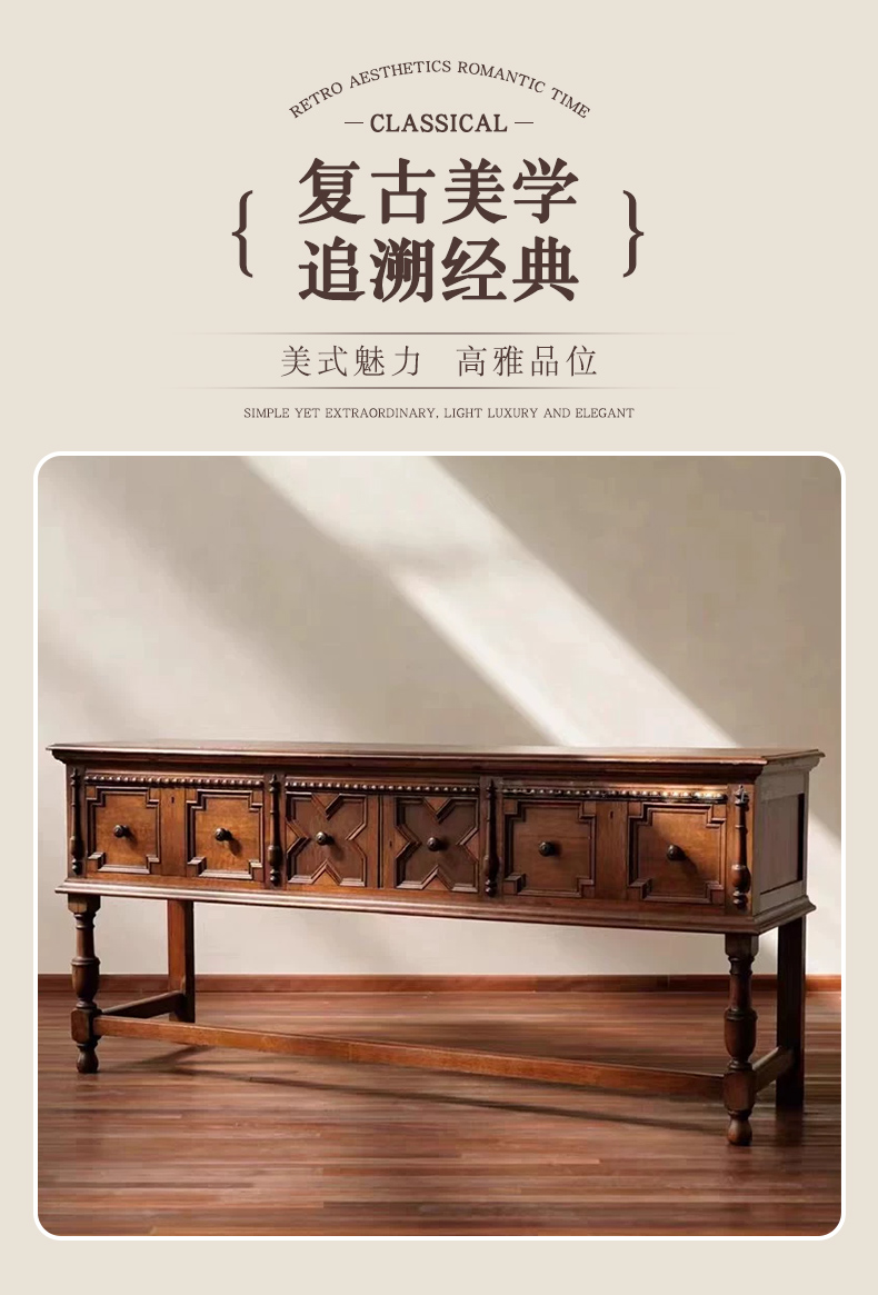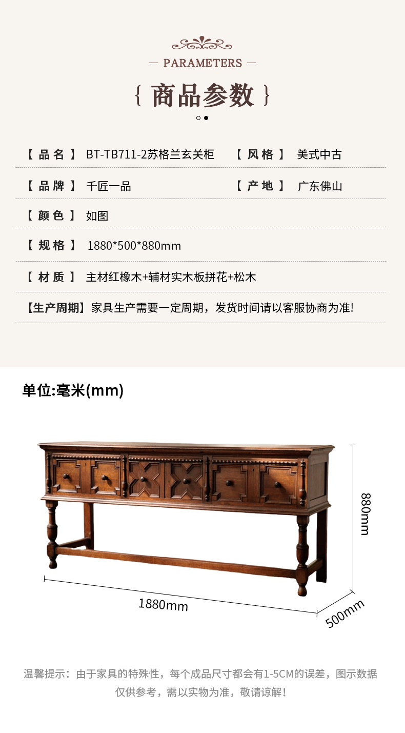 商品名称:【精品】千匠一品 美式中古风格 主材红橡木+辅材实木板拼花+松木 时尚大气舒格兰玄关柜BT-TB711-2-L