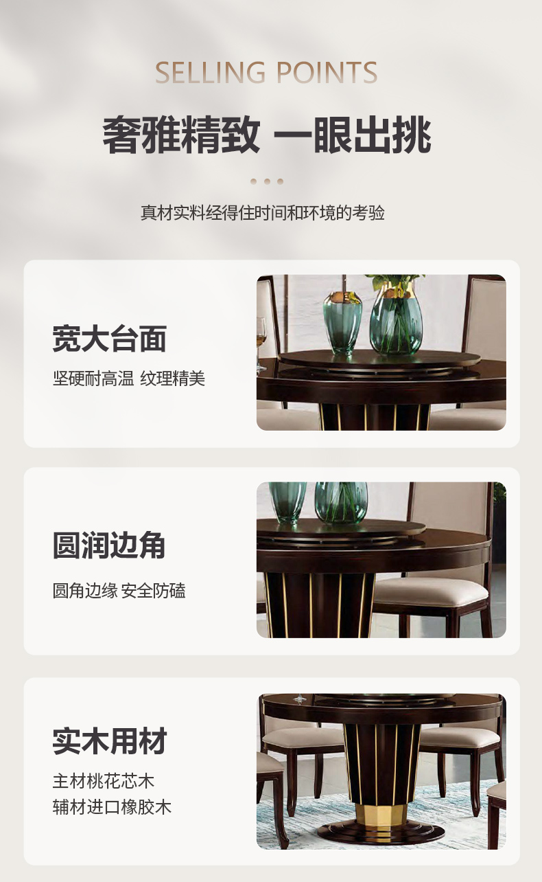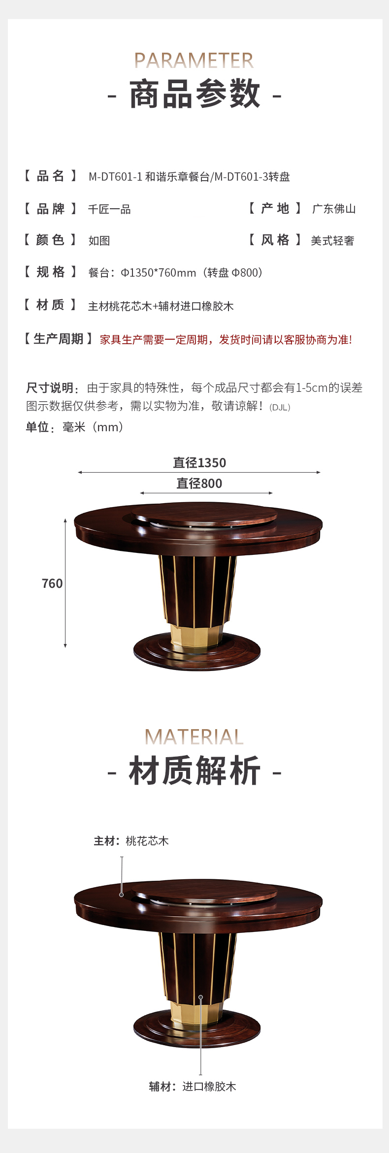 商品名称:【精品】千匠一品 美式轻奢风格 主材桃花芯木+辅材进口橡胶木 时尚大气和谐乐章餐台M-DT601-J