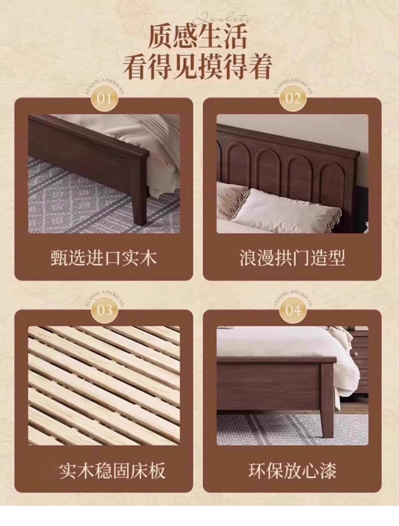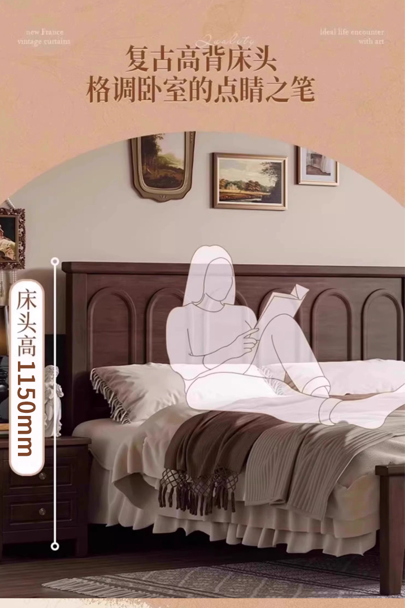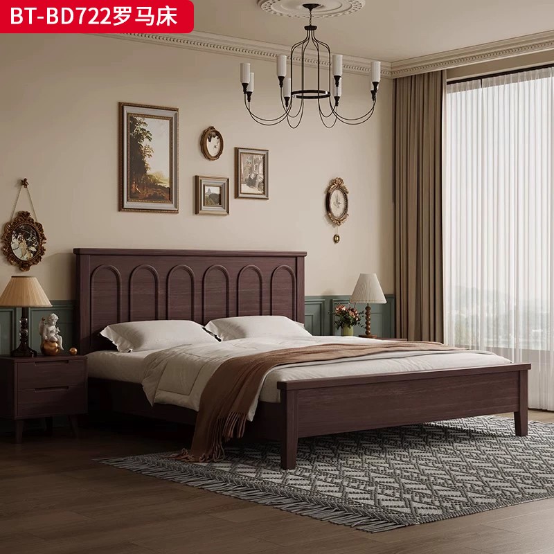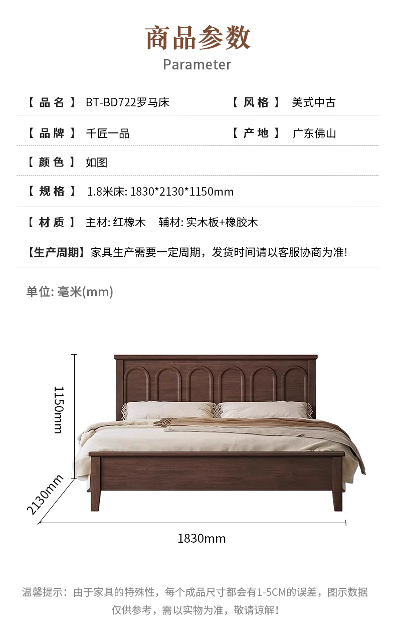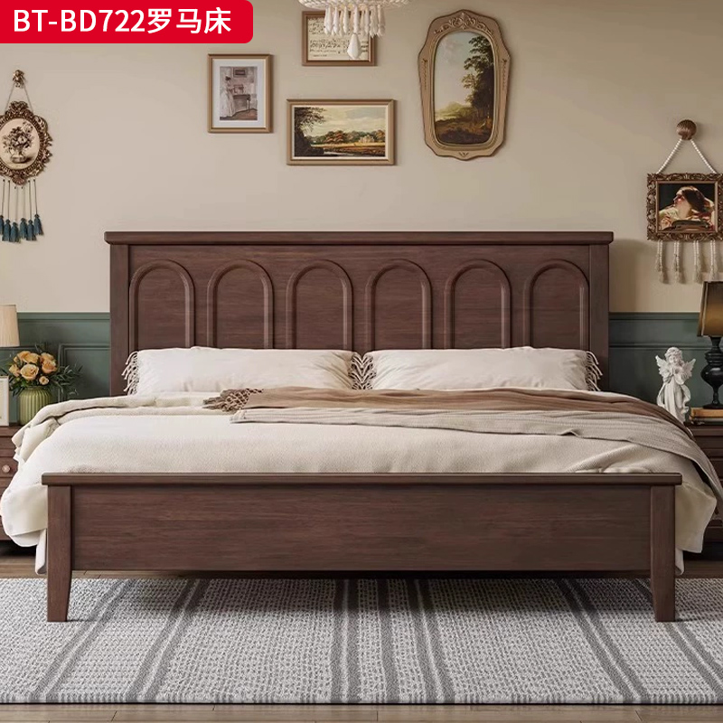 商品名称:【精品】千匠一品 美式中古风格 主材:红橡木+辅材:实木板+橡胶木 时尚大气罗马床BT-BD722-L
