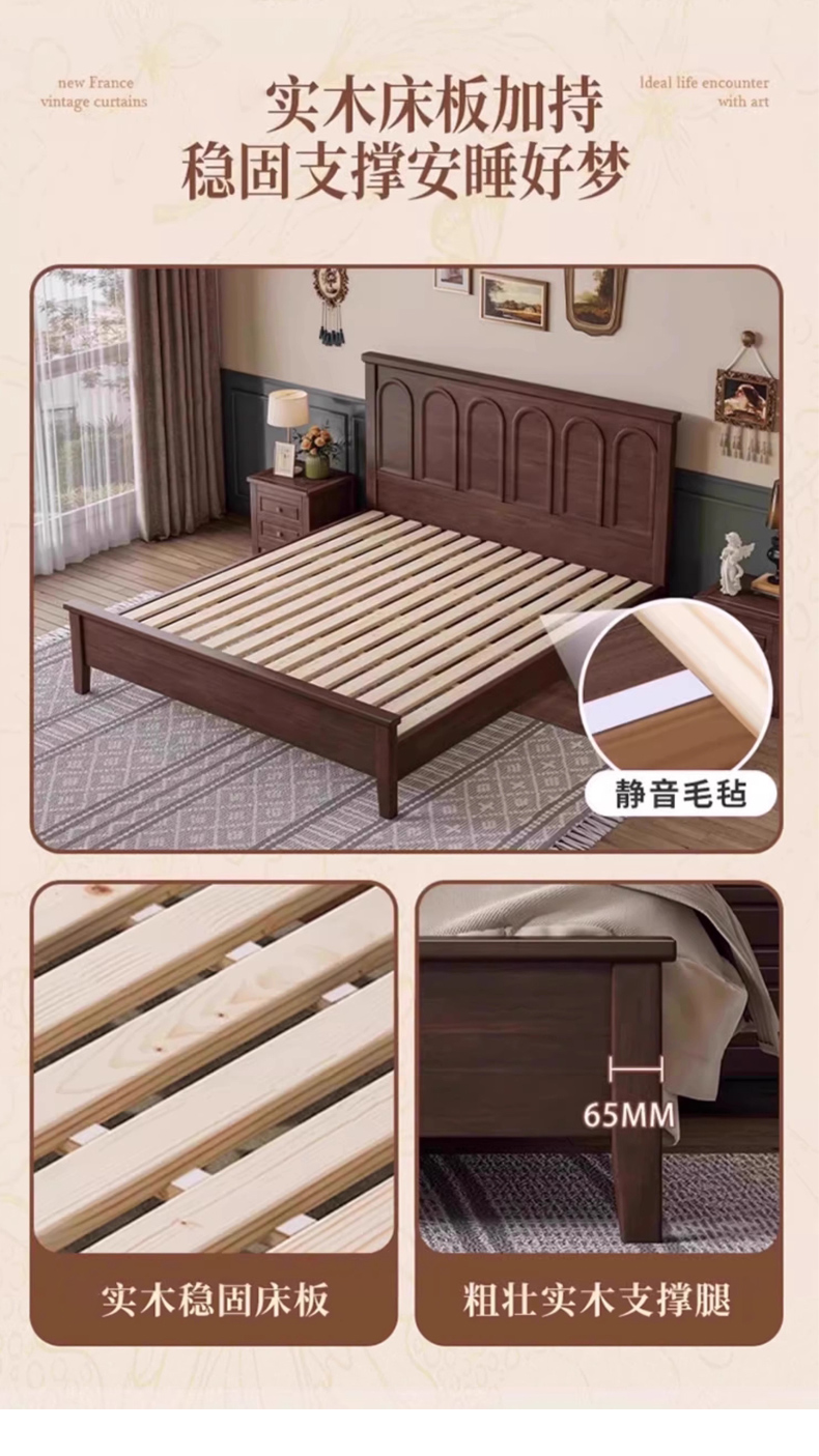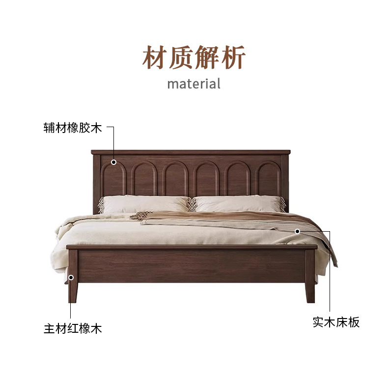 【精品】千匠一品 美式中古风格 主材:红橡木+辅材:实木板+橡胶木 时尚大气罗马床BT-BD722-L