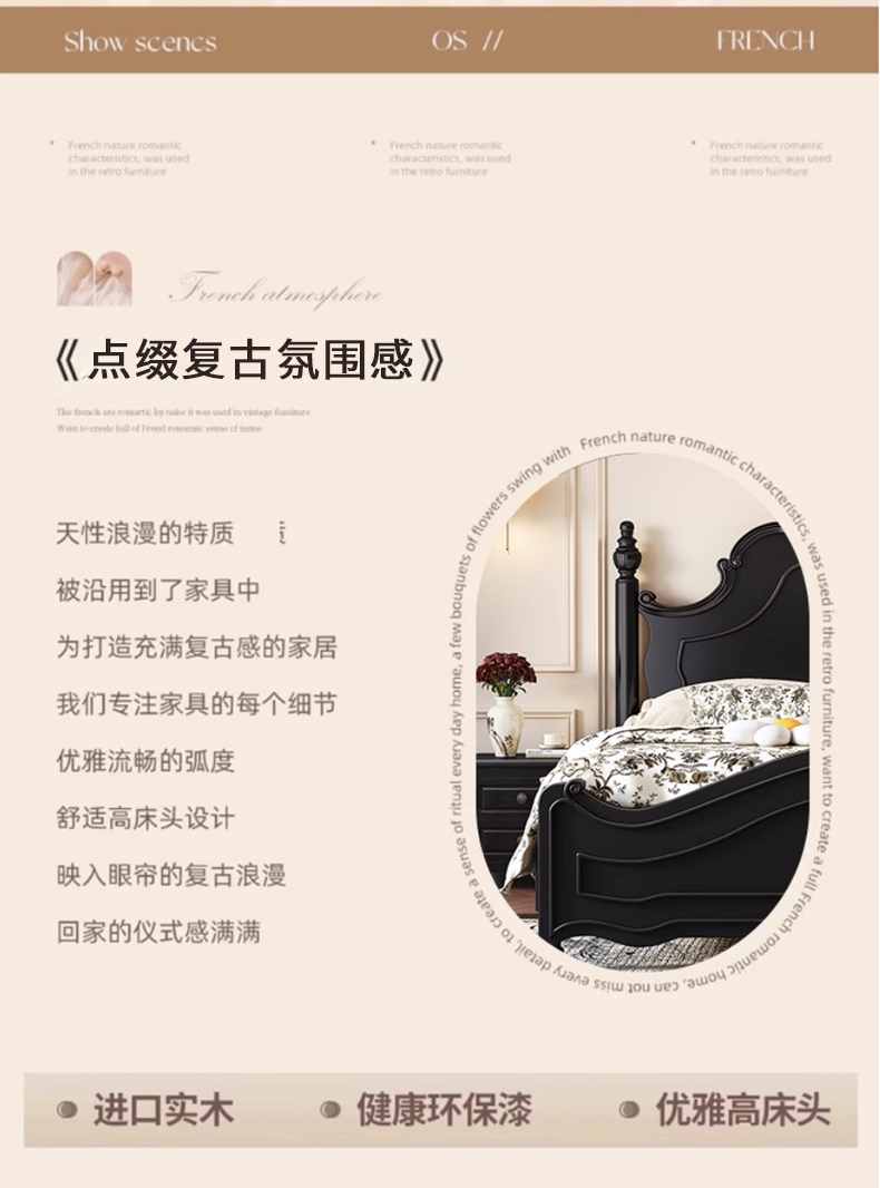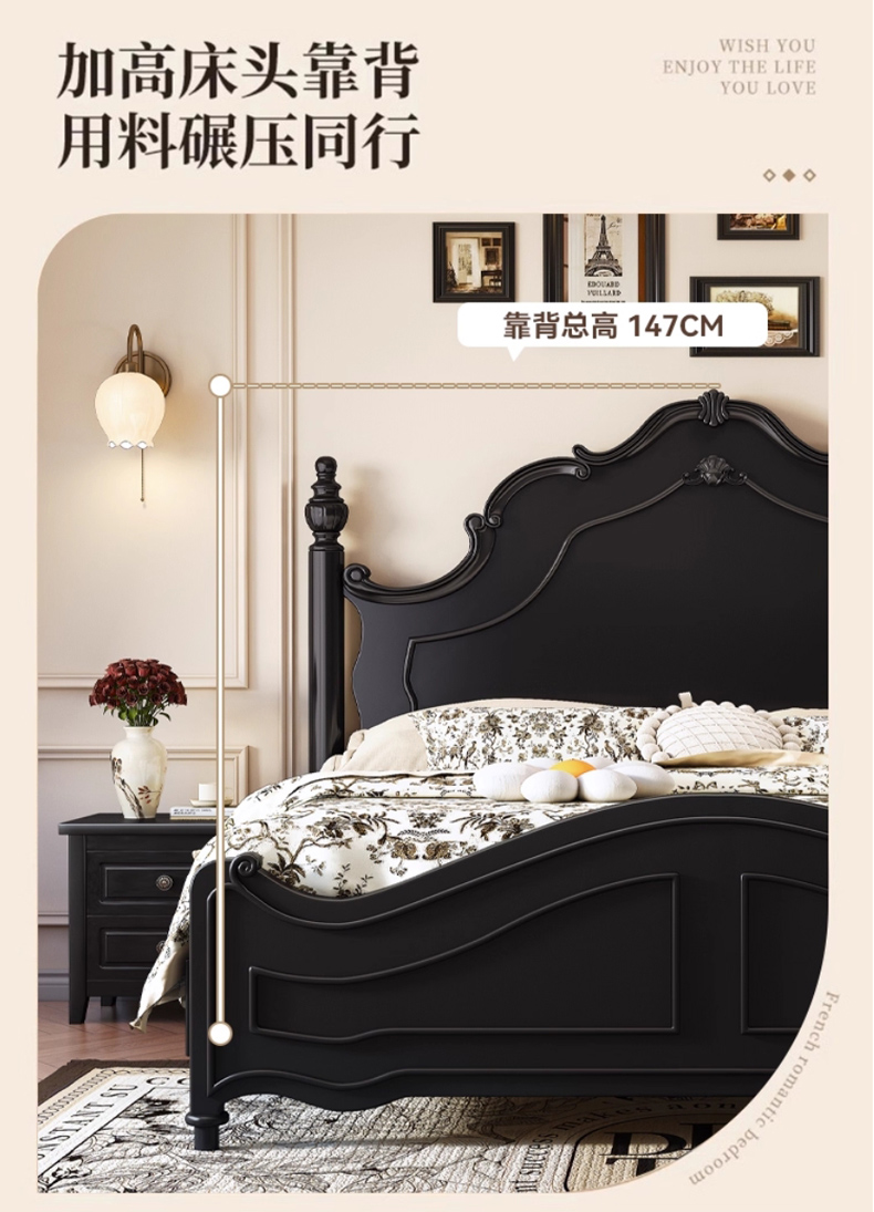△千匠一品 美式风格金丝檀木框架+油蜡仿真皮+海绵1.8M床9812-C