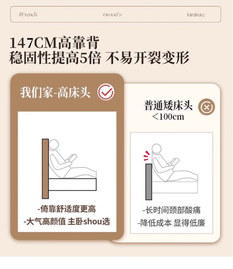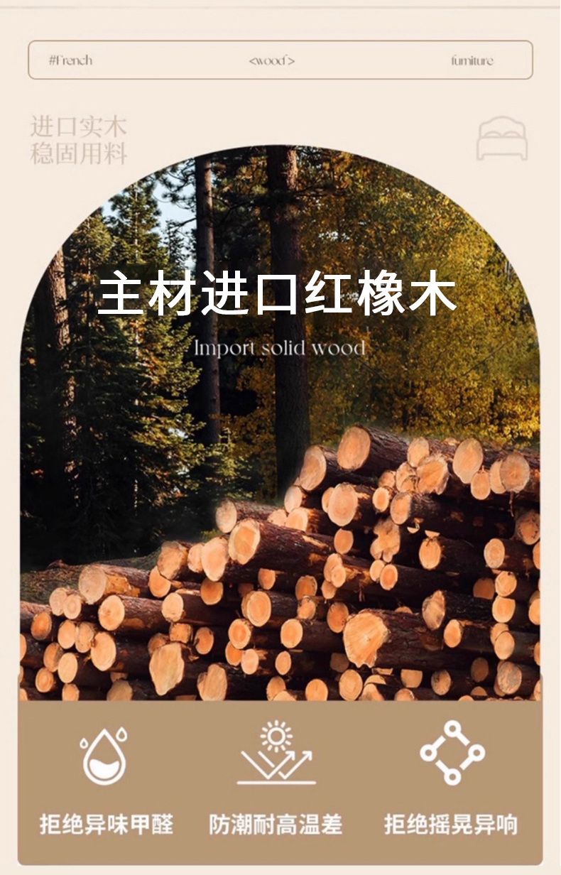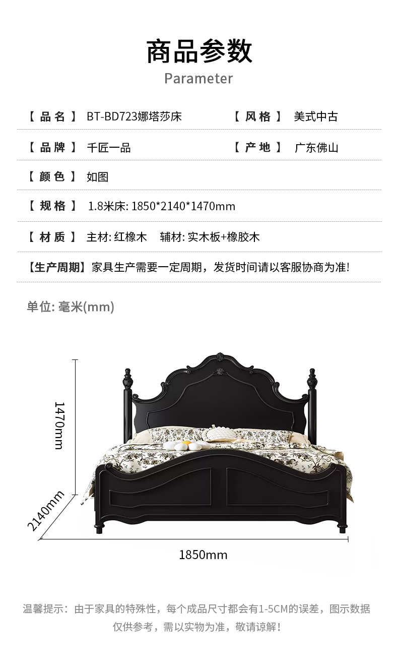 商品名称:【精品】千匠一品 美式中古风格 主材:红橡木+辅材:实木板+橡胶木 时尚大气娜塔莎床BT-BD723-L