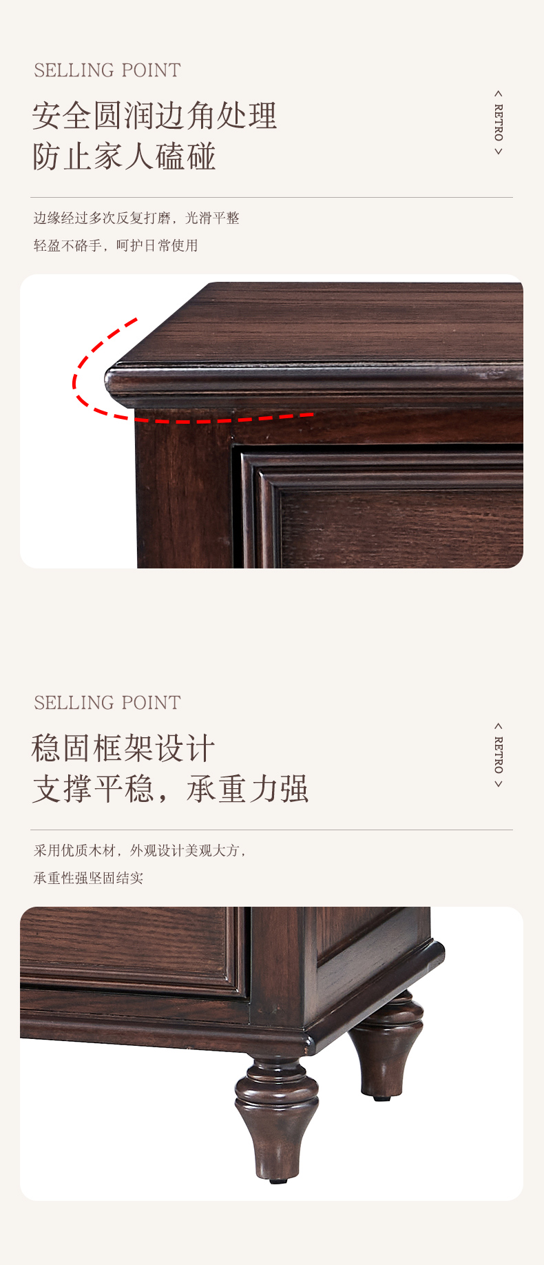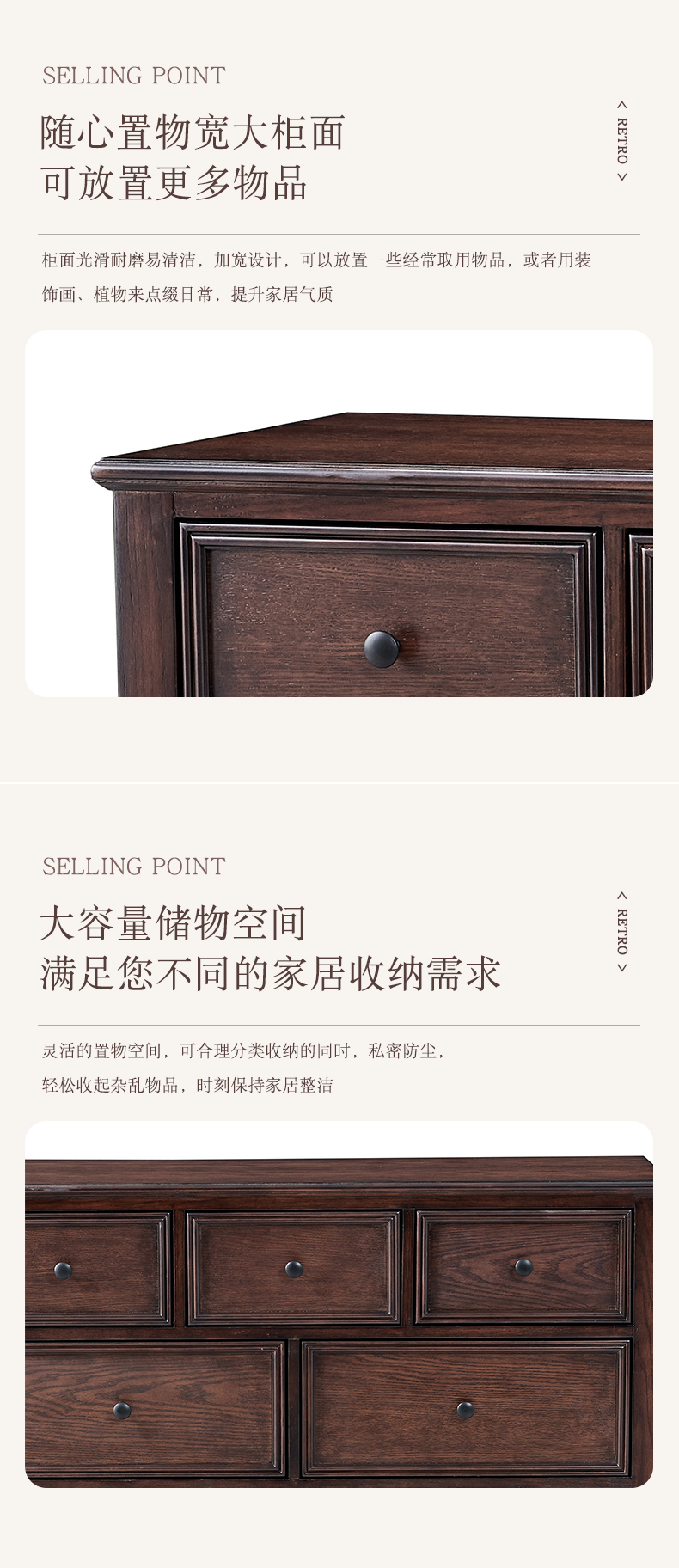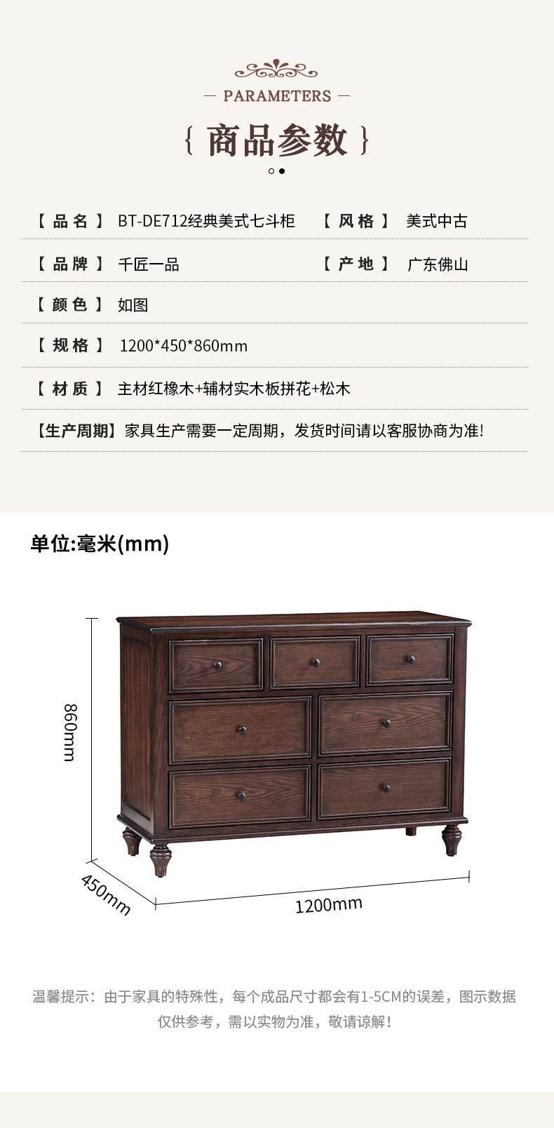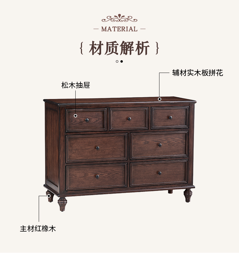 商品名称:【精品】千匠一品 美式中古风格 主材红橡木+辅材实木板拼花+松木 时尚大气七斗柜BT-DE712-L