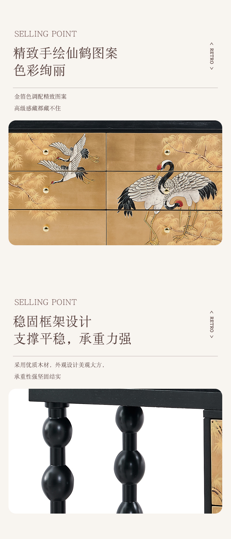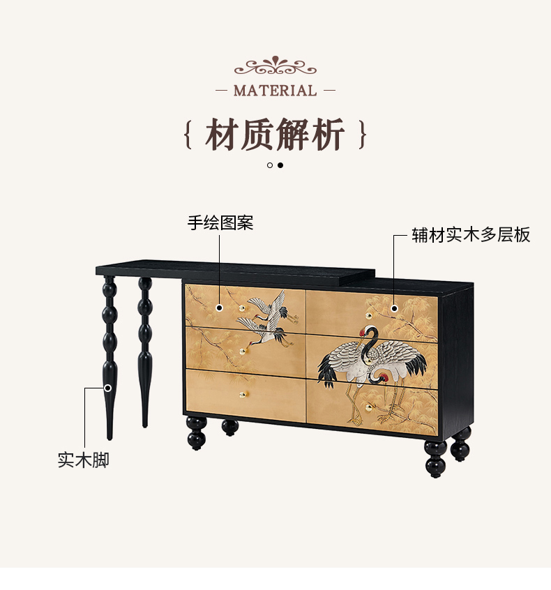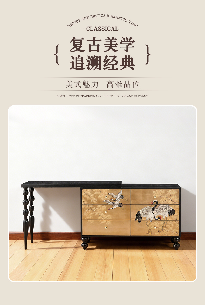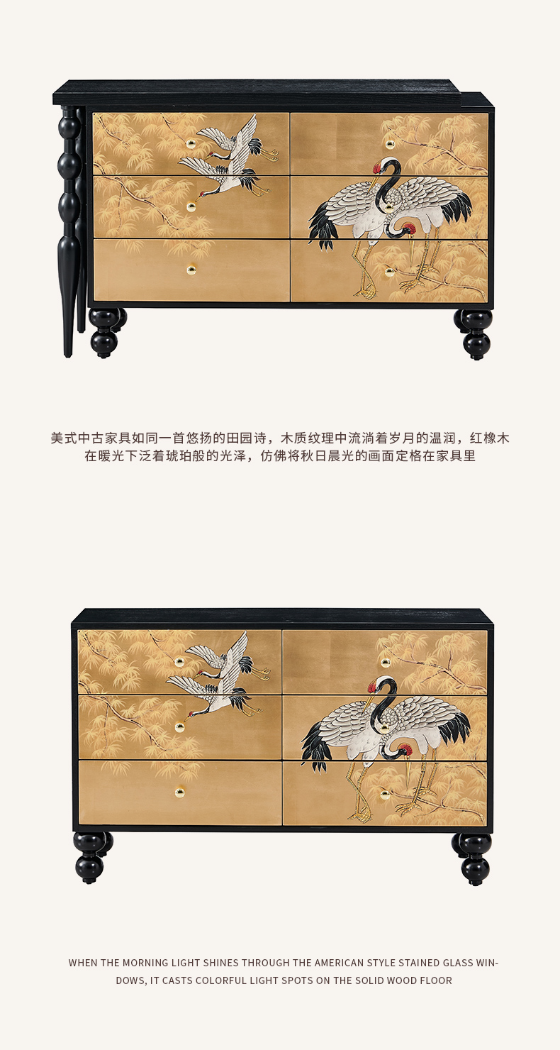 【精品】千匠一品 美式中古风格 实木脚+实木多层板+手绘 时尚大气竹韵装饰柜BT-DE717-L