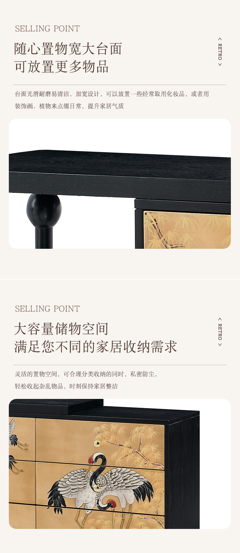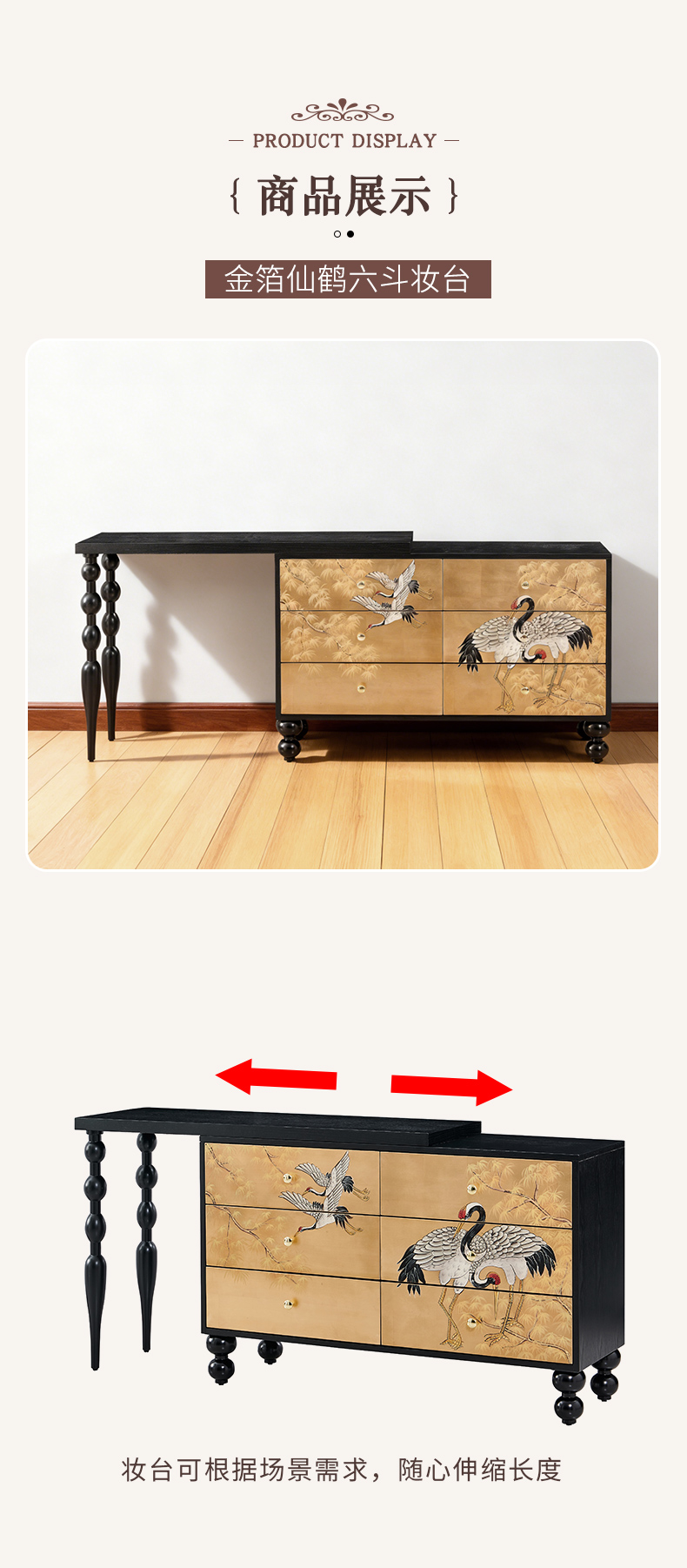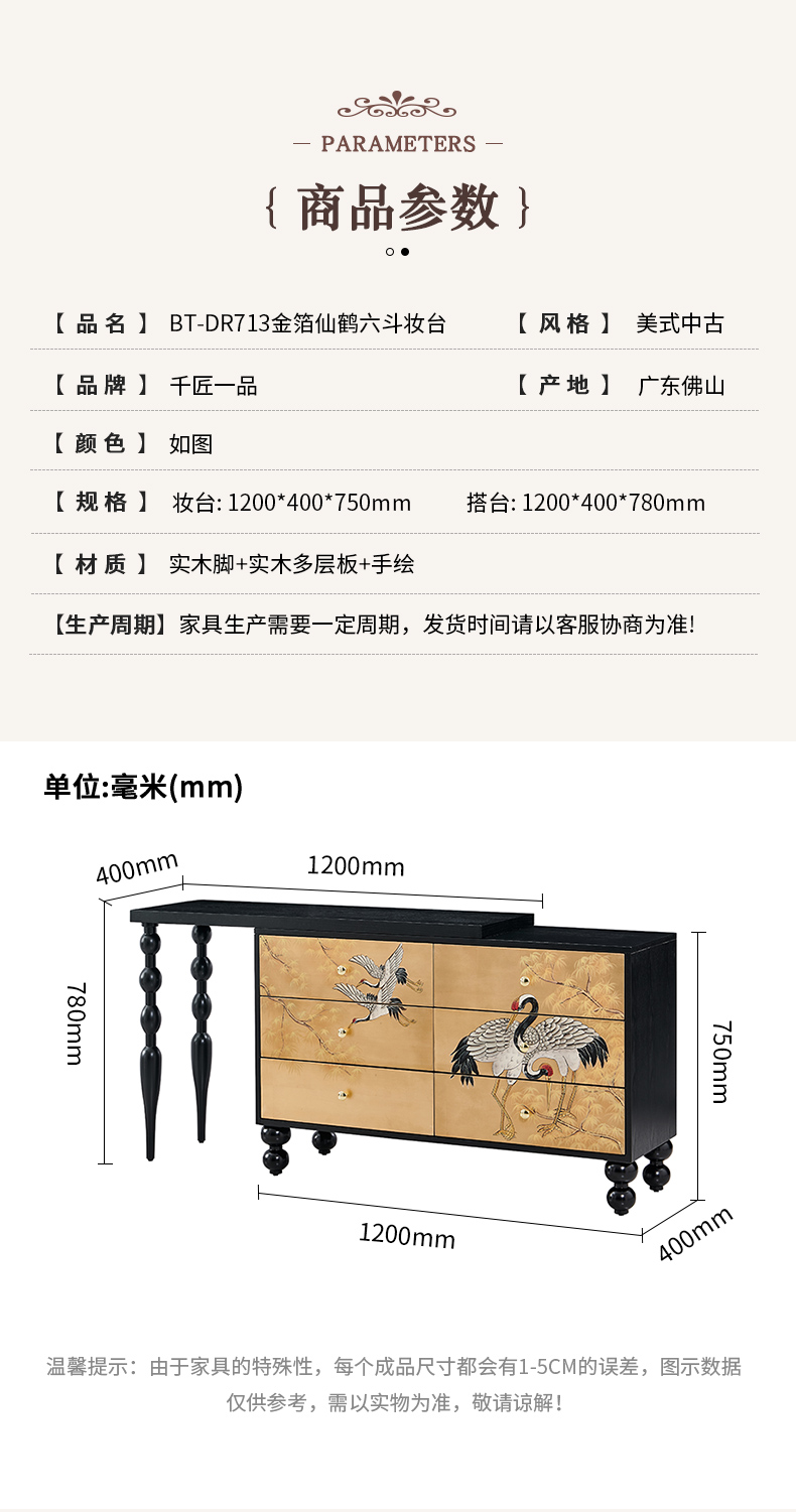 商品名称:【精品】千匠一品 美式中古风格 实木脚+实木多层板+手绘 时尚大气六斗妆台BT-DR713-L