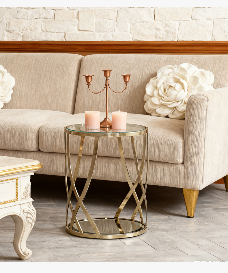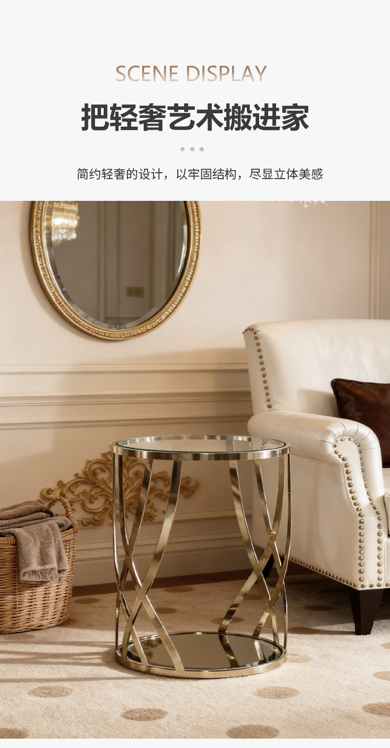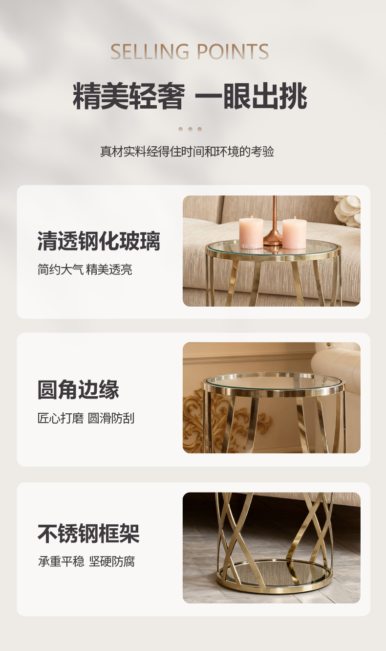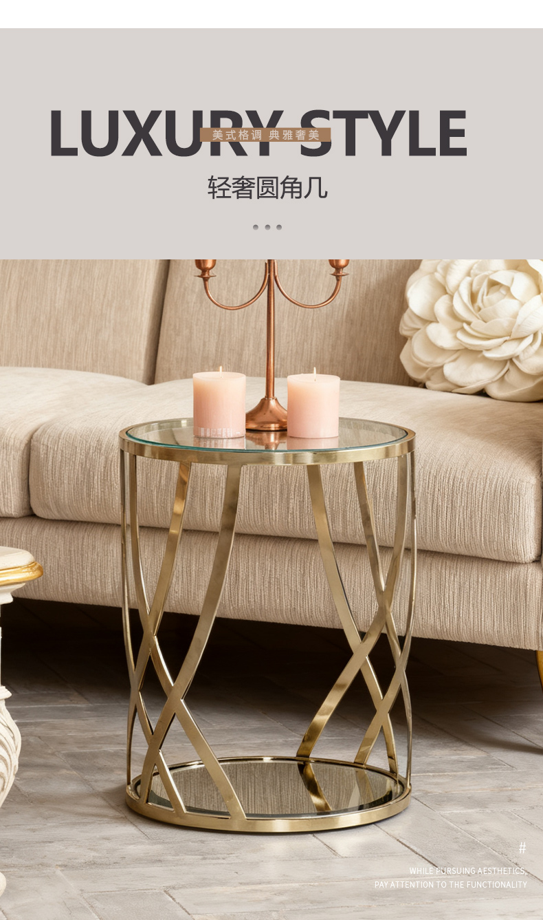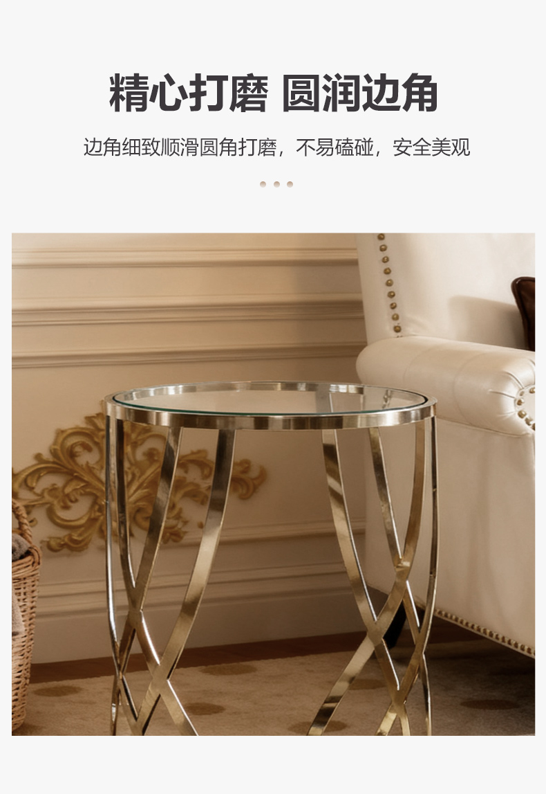 【精品】千匠一品 美式轻奢风格 不锈钢+钢化清玻 时尚大气角几A-ET619-J
