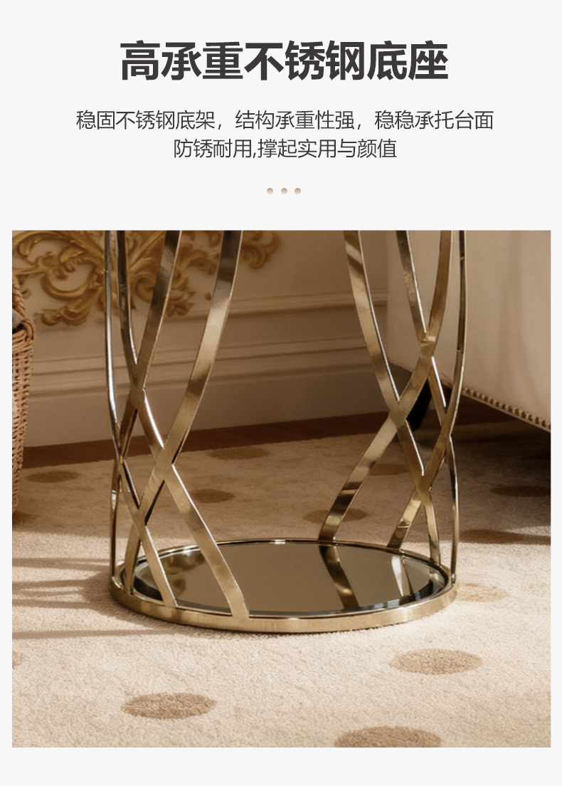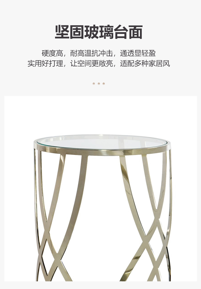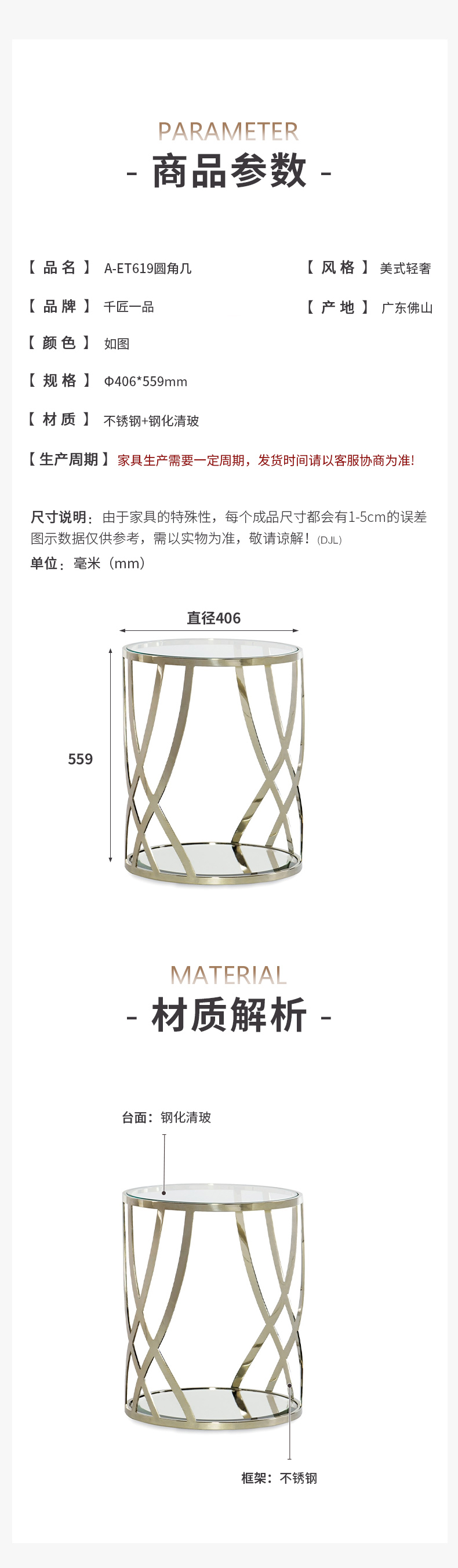 商品名称:【精品】千匠一品 美式轻奢风格 不锈钢+钢化清玻 时尚大气角几A-ET619-J