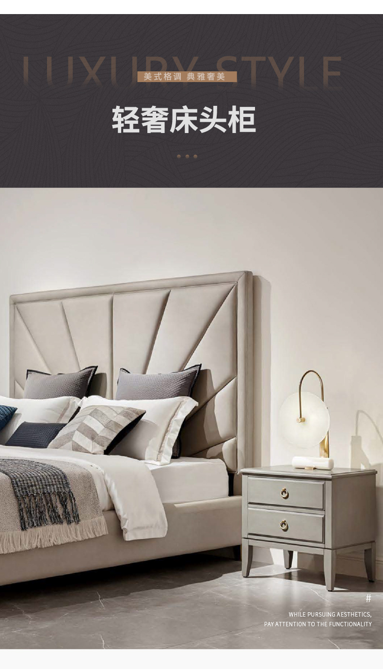 千匠一品现代极简优质头层真皮+实木框架+高回弹海绵双人床-NS19床头柜NS02-G