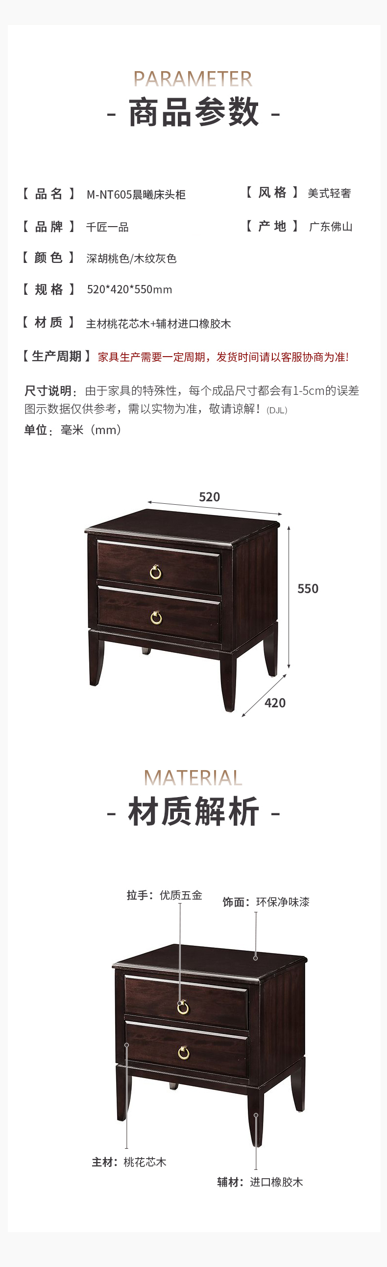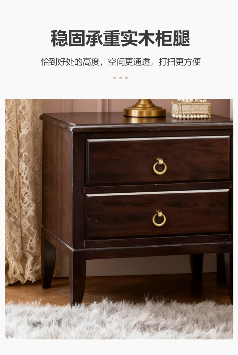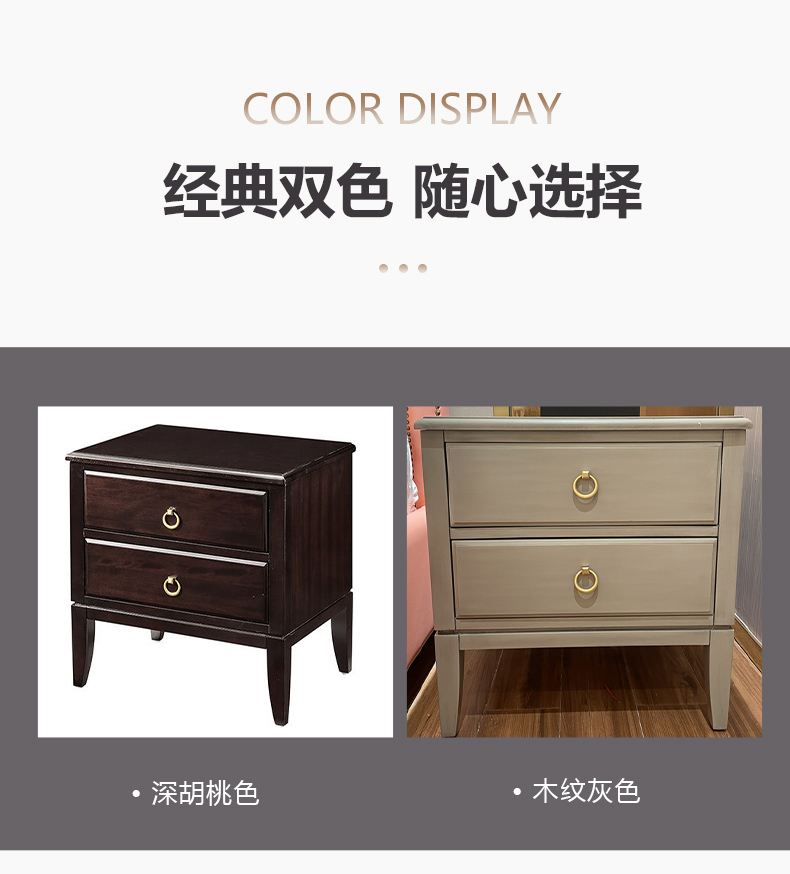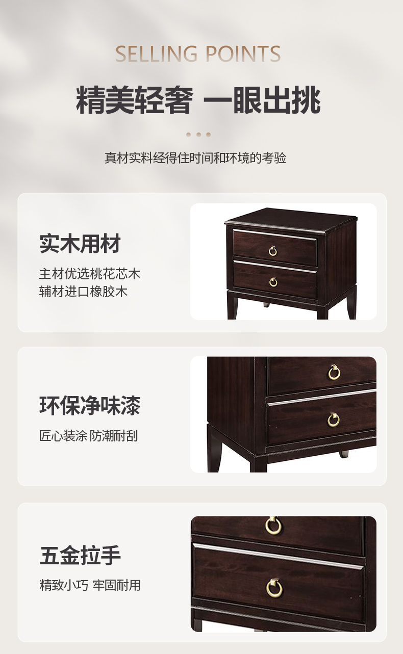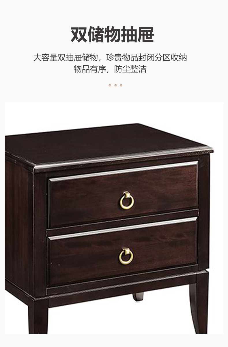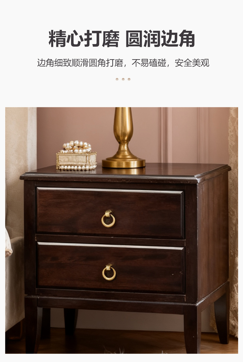 商品名称:【精品】千匠一品 美式轻奢风格 主材桃花芯木+辅材进口橡胶木 时尚大气晨曦床头柜M-NT605-J