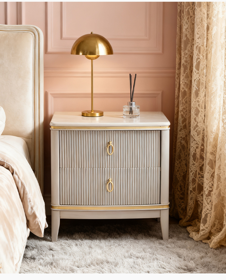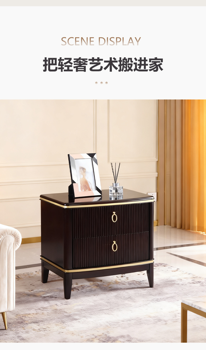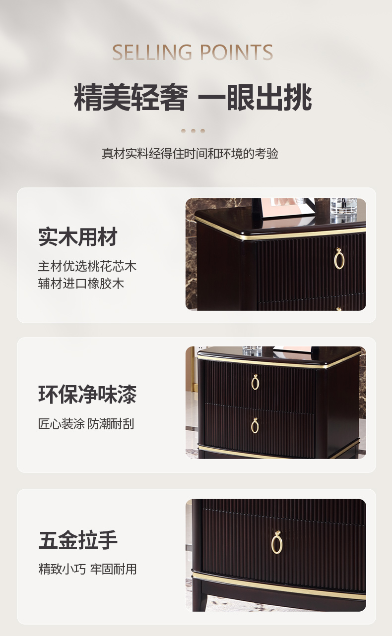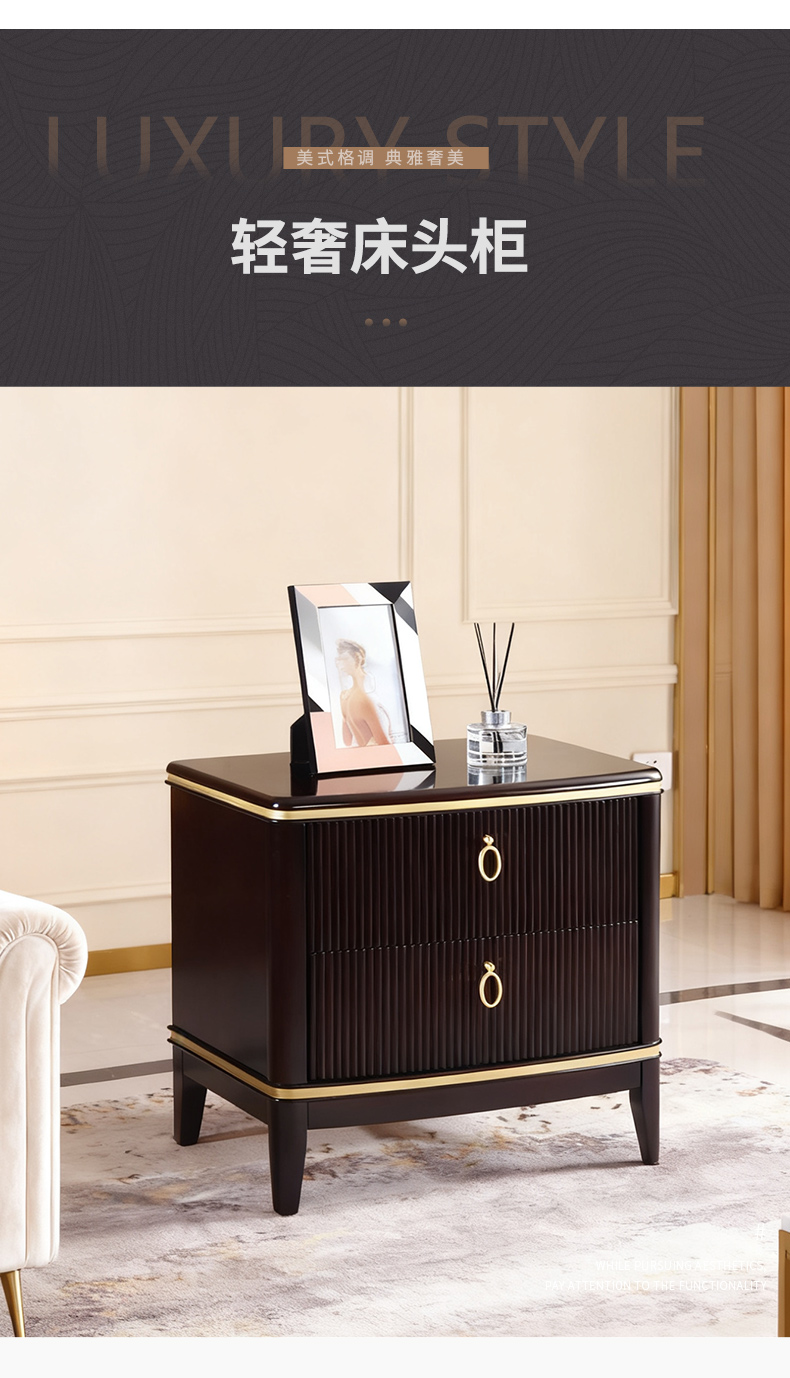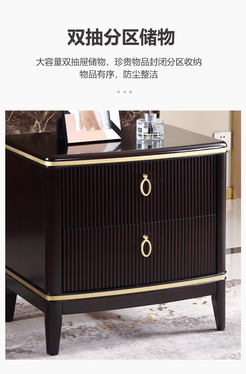 【精品】千匠一品 美式轻奢风格 主材桃花芯木+辅材进口橡胶木 时尚大气流水床头柜M-NT607-1-J
