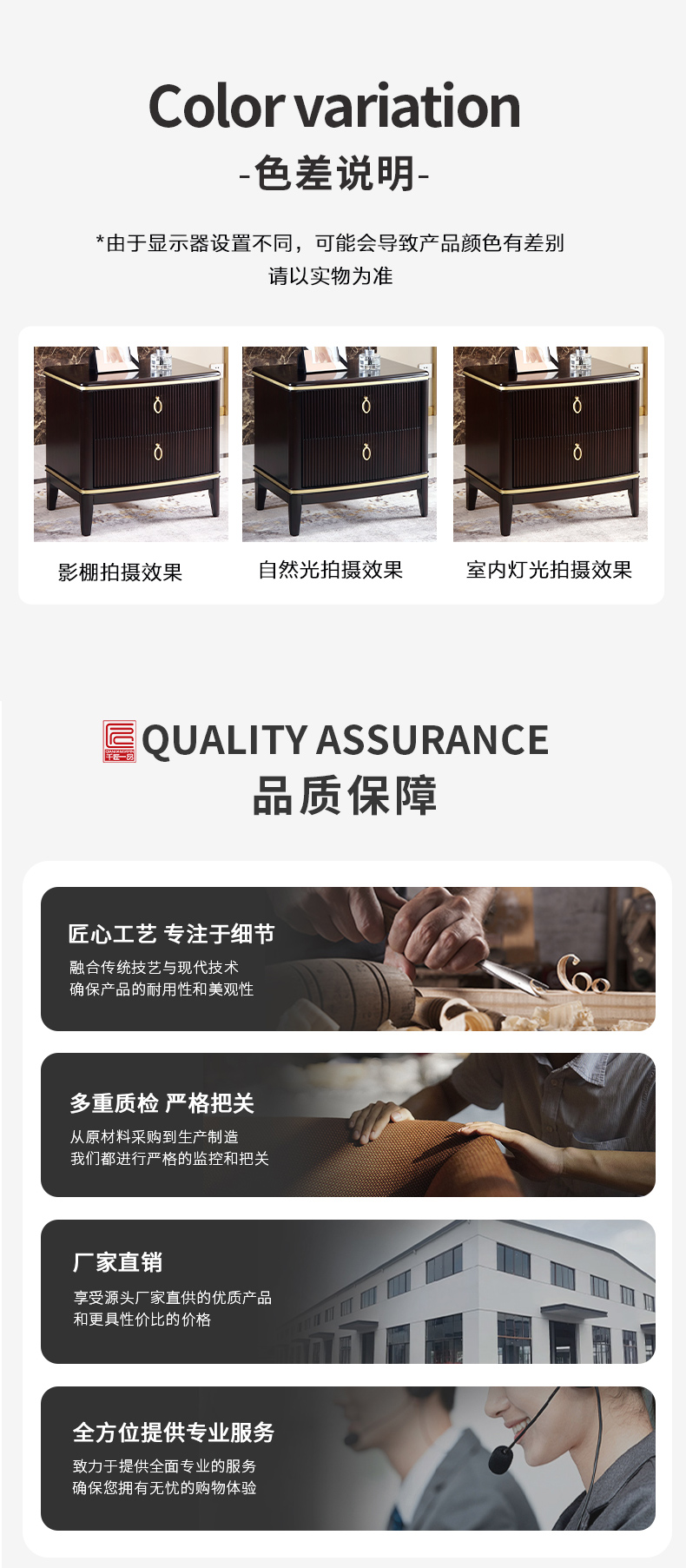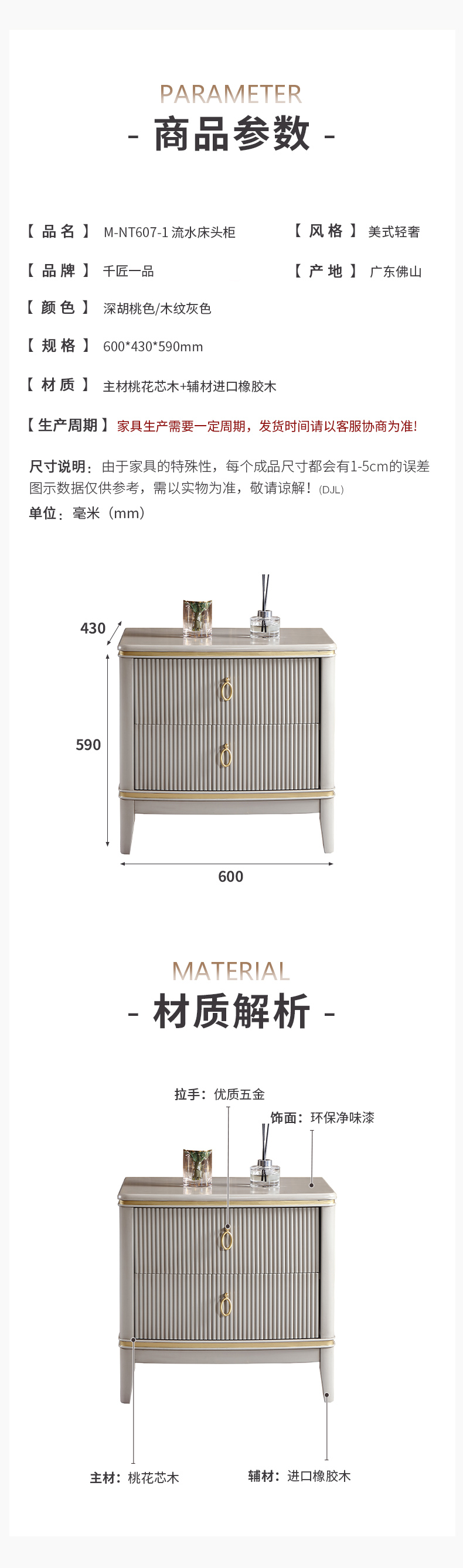 商品名称:【精品】千匠一品 美式轻奢风格 主材桃花芯木+辅材进口橡胶木 时尚大气流水床头柜M-NT607-1-J