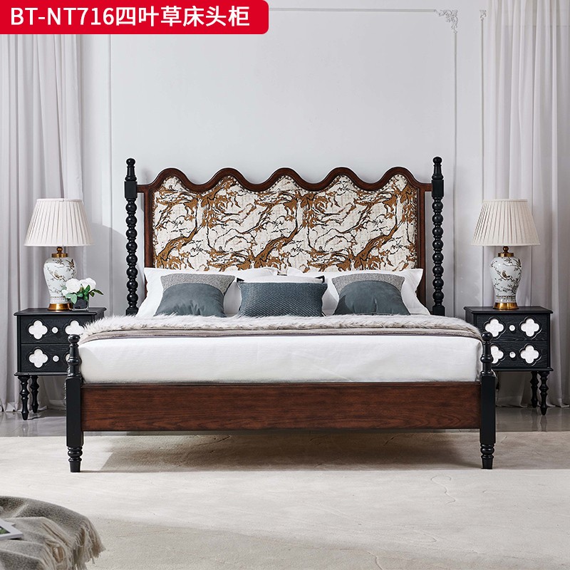 【精品】千匠一品 美式中古风格 主材红橡木+辅材实木板拼花+松木+贝壳 时尚大气四叶草床头柜BT-NT716-J
