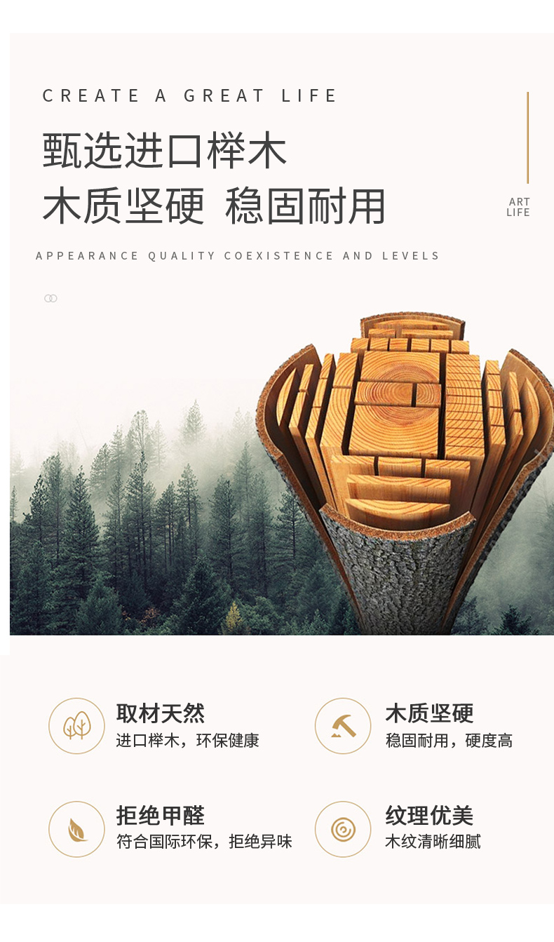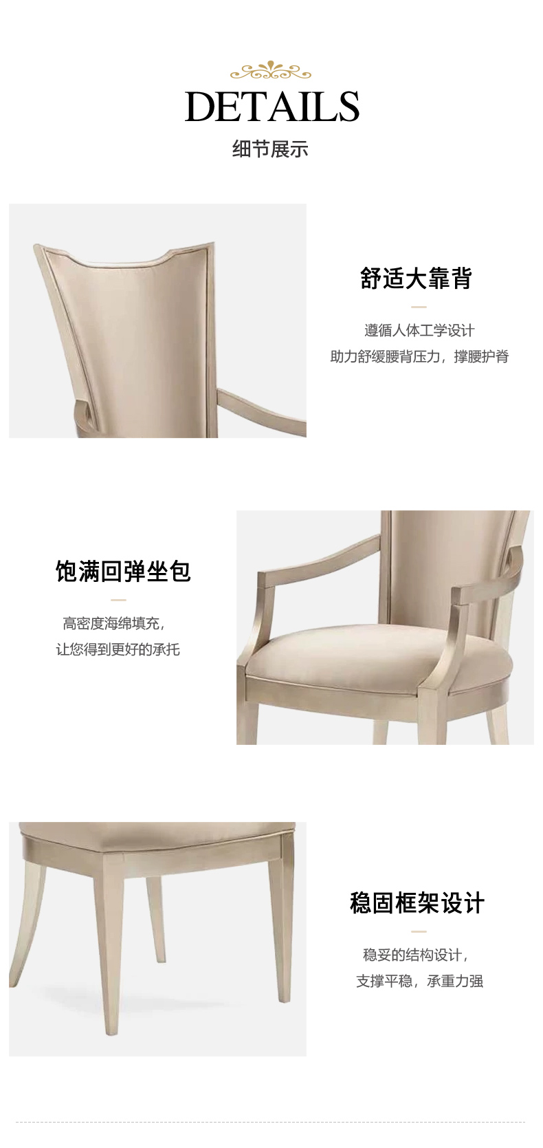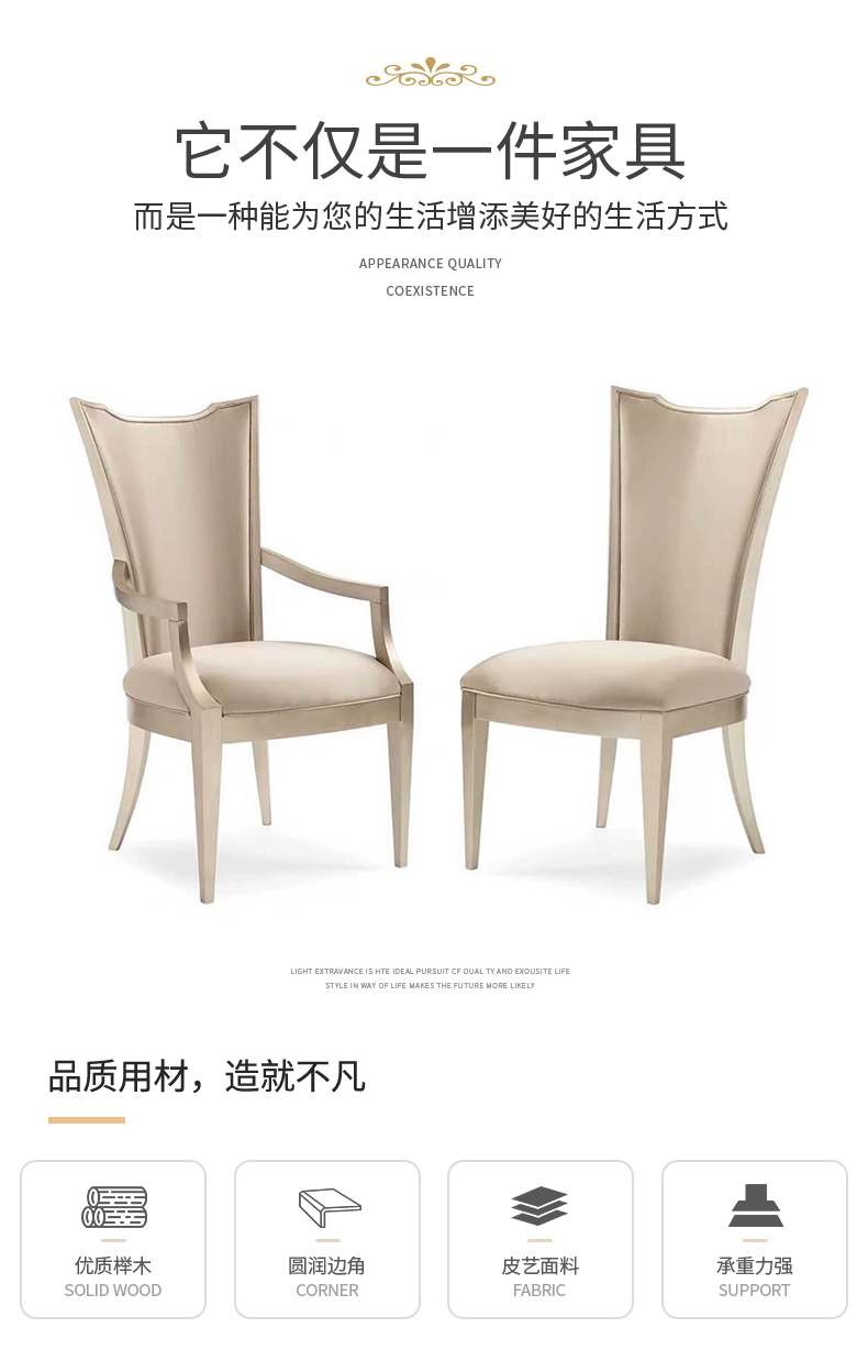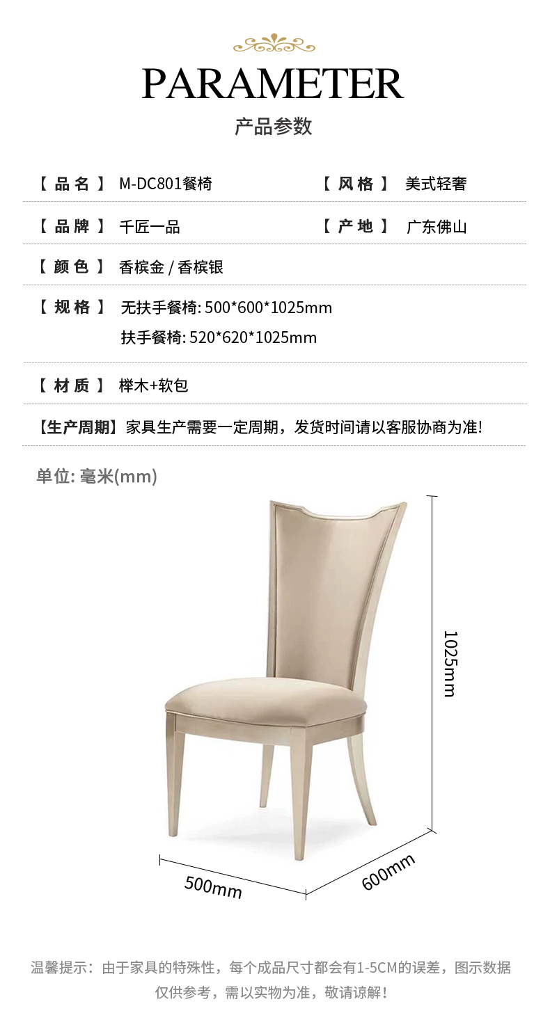 商品名称:【精品】千匠一品 美式轻奢风格 榉木+软包 时尚大气餐椅M-DC801-L