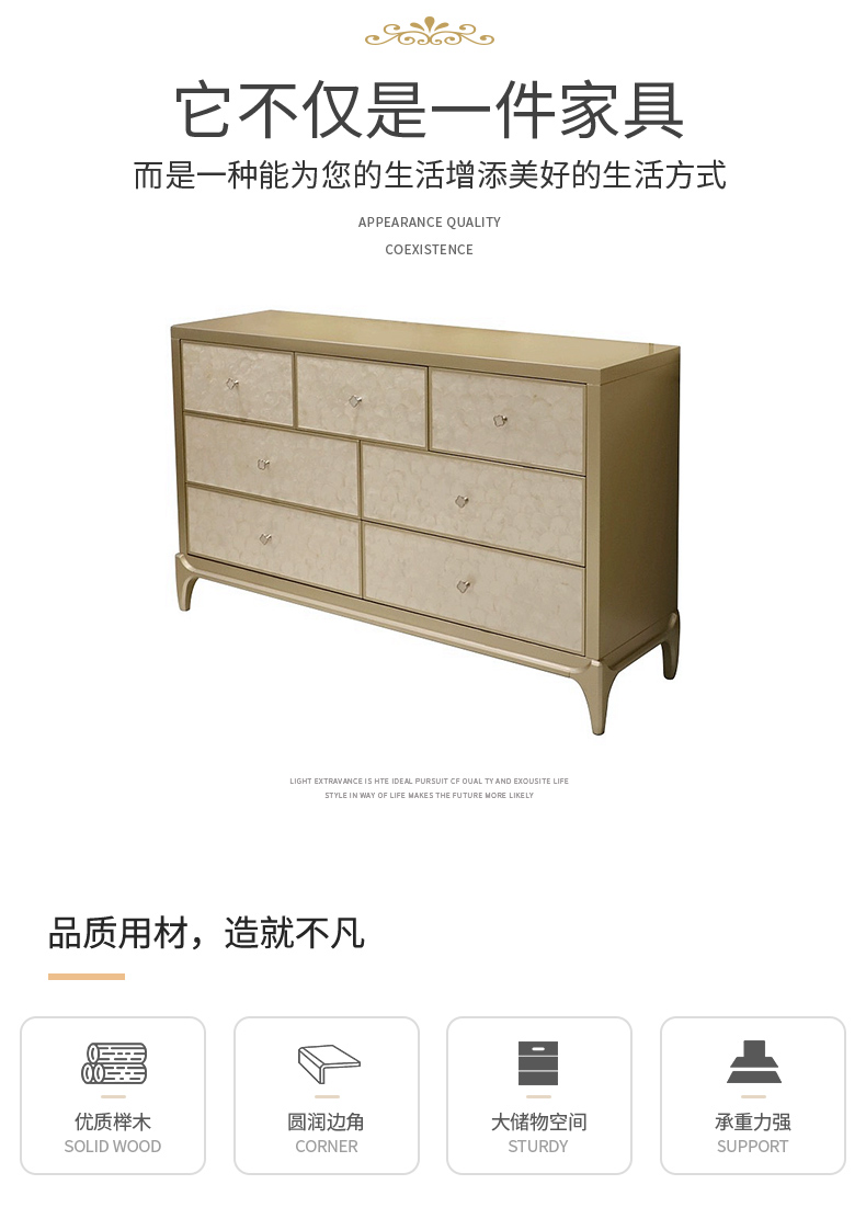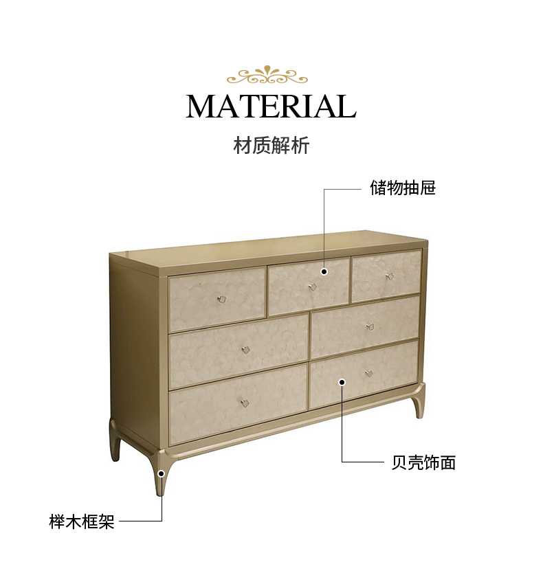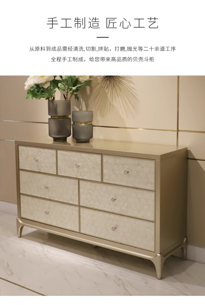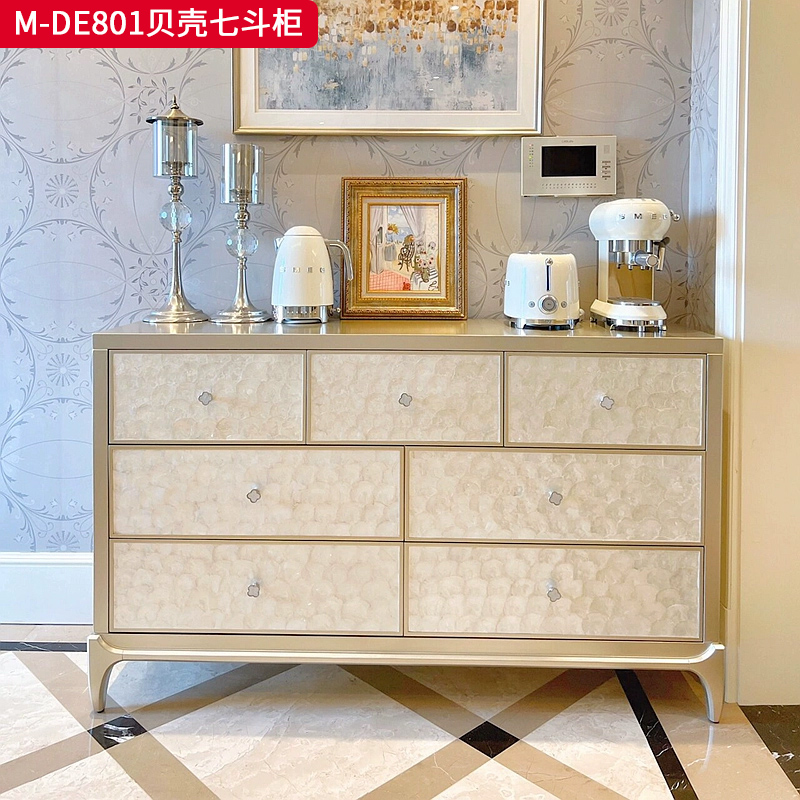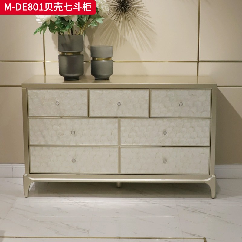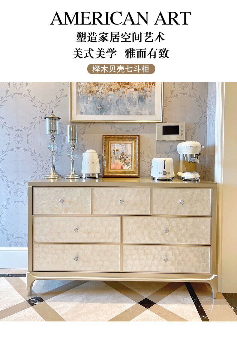 商品名称:【精品】千匠一品 美式轻奢风格 榉木+贝壳 时尚大气贝壳七斗柜M-DE801-L