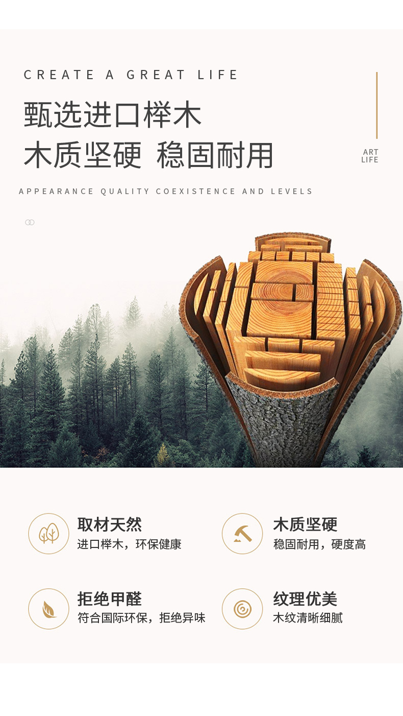 【精品】千匠一品 美式轻奢风格 榉木+大理石 时尚大气餐桌M-DT812-L