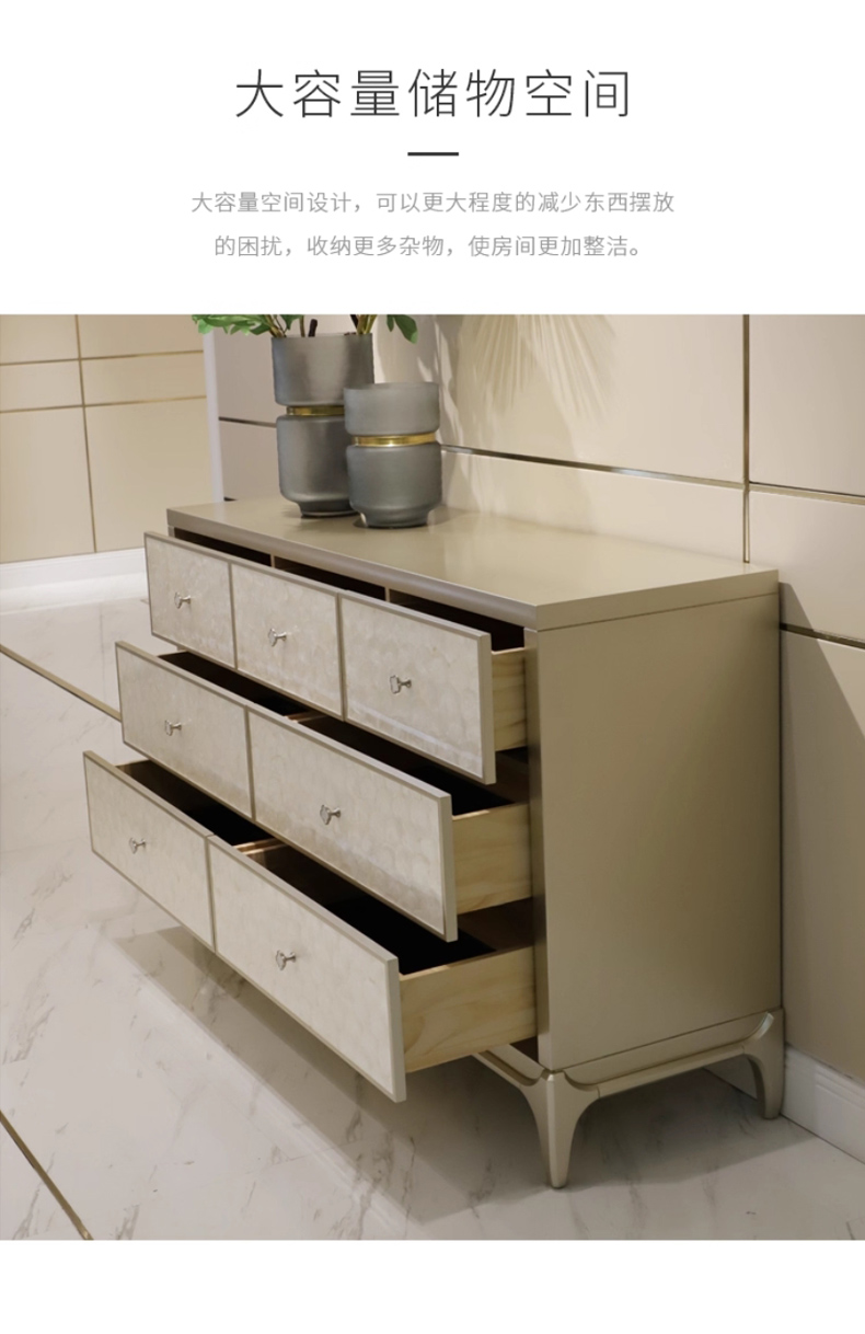 【精品】千匠一品 美式轻奢风格 榉木+贝壳+岩板 时尚大气六斗柜M-DE804-L