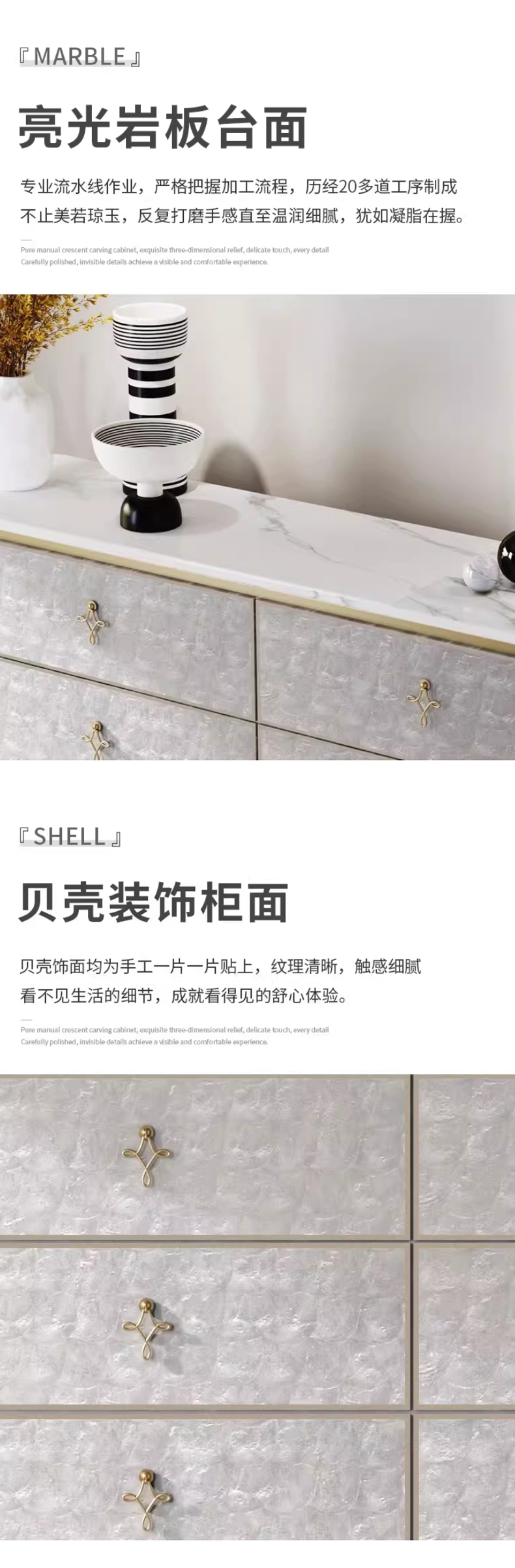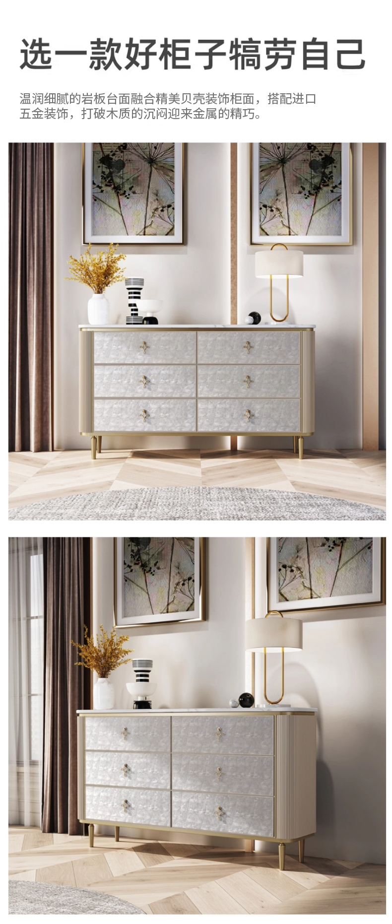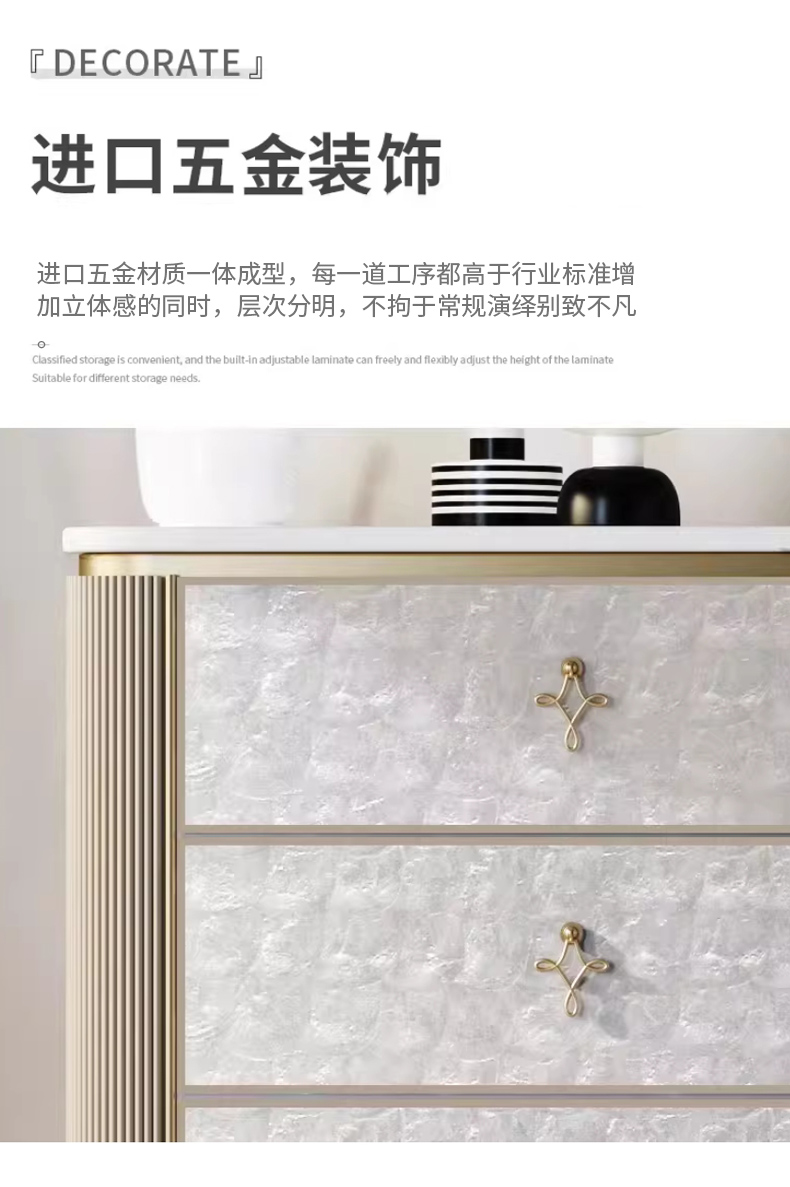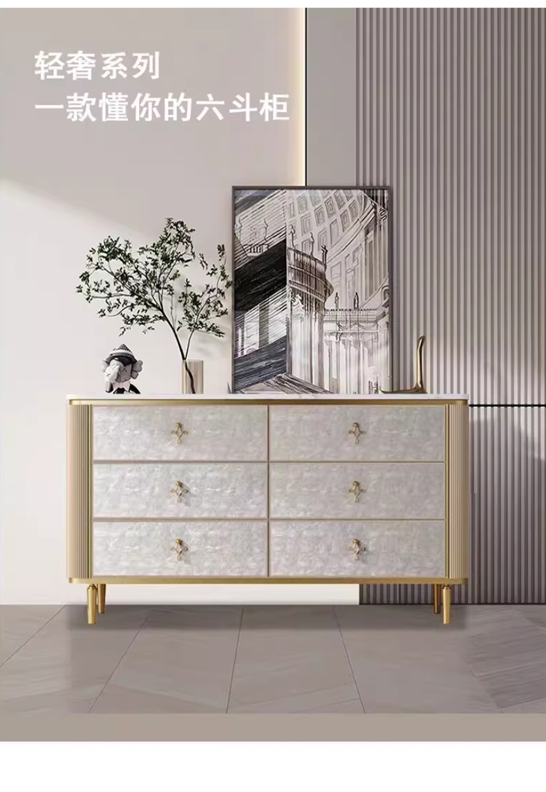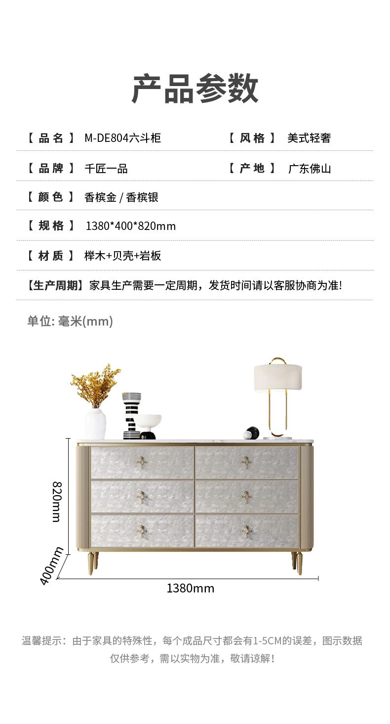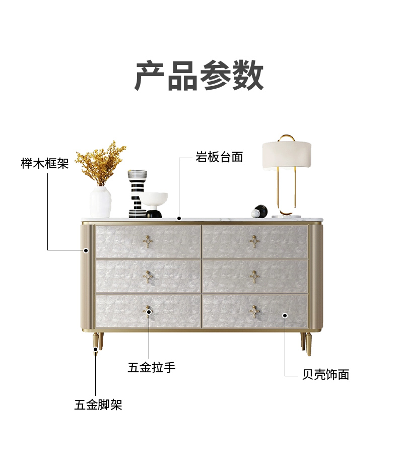 商品名称:【精品】千匠一品 美式轻奢风格 榉木+贝壳+岩板 时尚大气六斗柜M-DE804-L