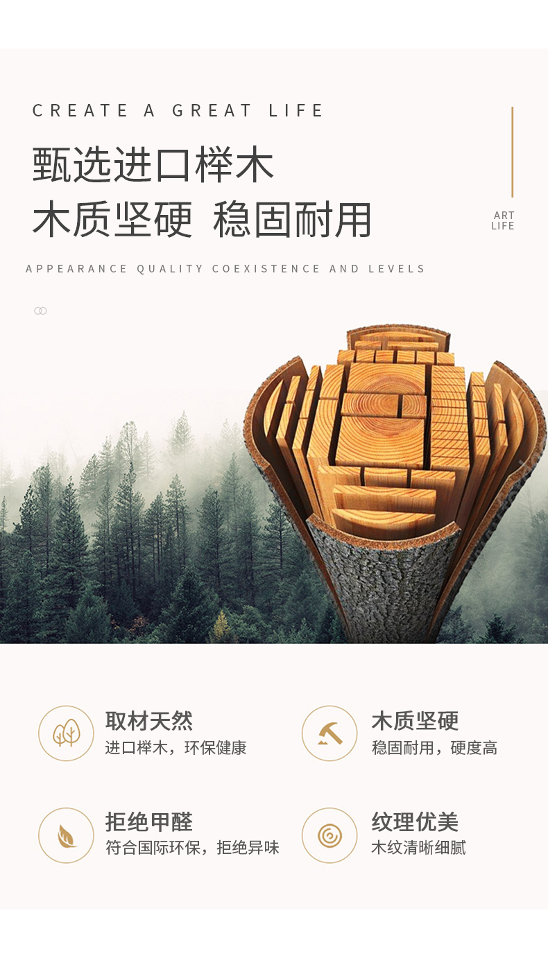 【精品】千匠一品 美式轻奢风格 榉木 时尚大气圆角几M-ET814-J