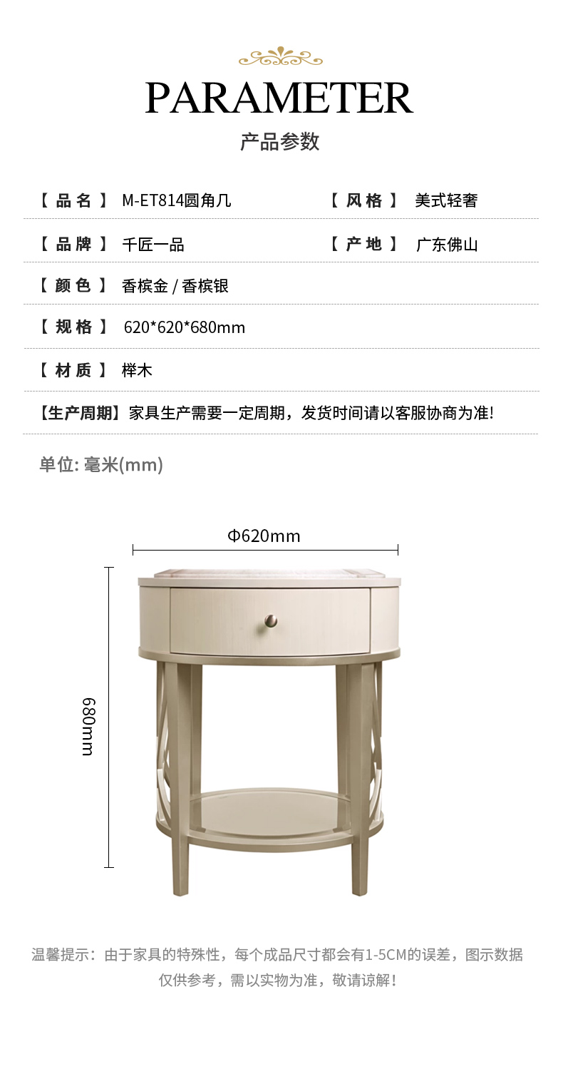 商品名称:【精品】千匠一品 美式轻奢风格 榉木 时尚大气圆角几M-ET814-J