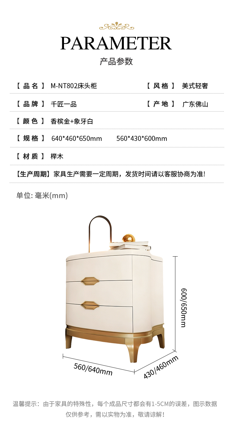 商品名称:【精品】千匠一品 美式轻奢风格 榉木 时尚大气床头柜M-NT802-J
